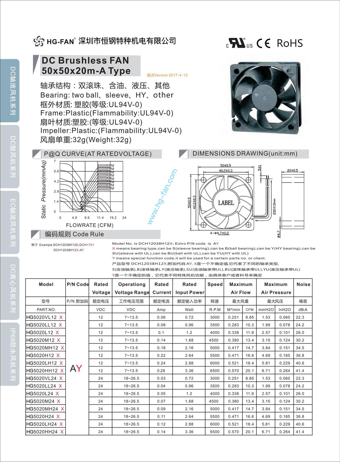 Ventilador de CC 5020 impermeable con pegamento, 50 x 50 x 20 mm, suministro directo de fábrica