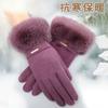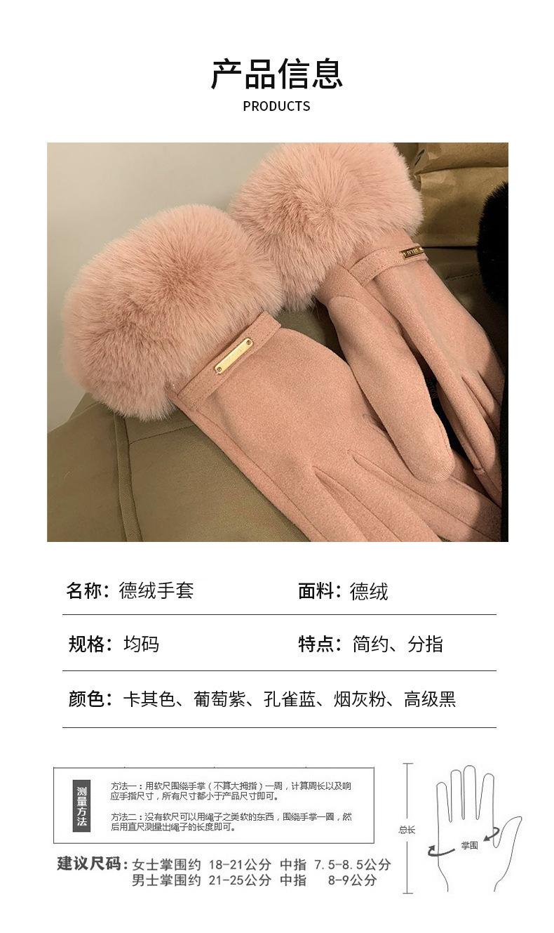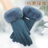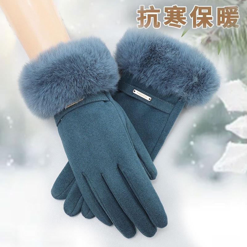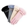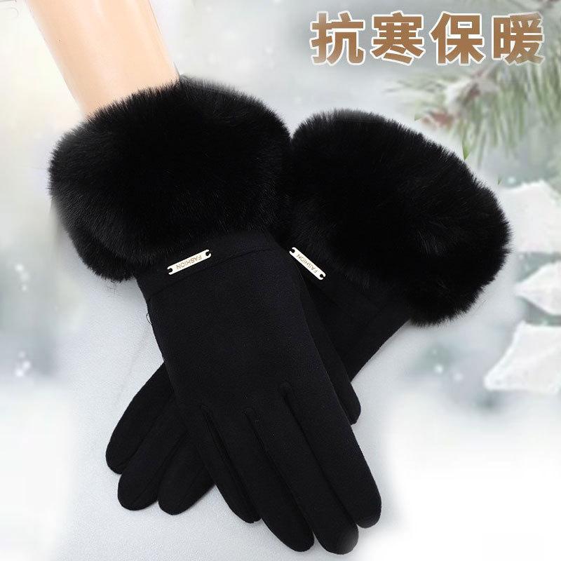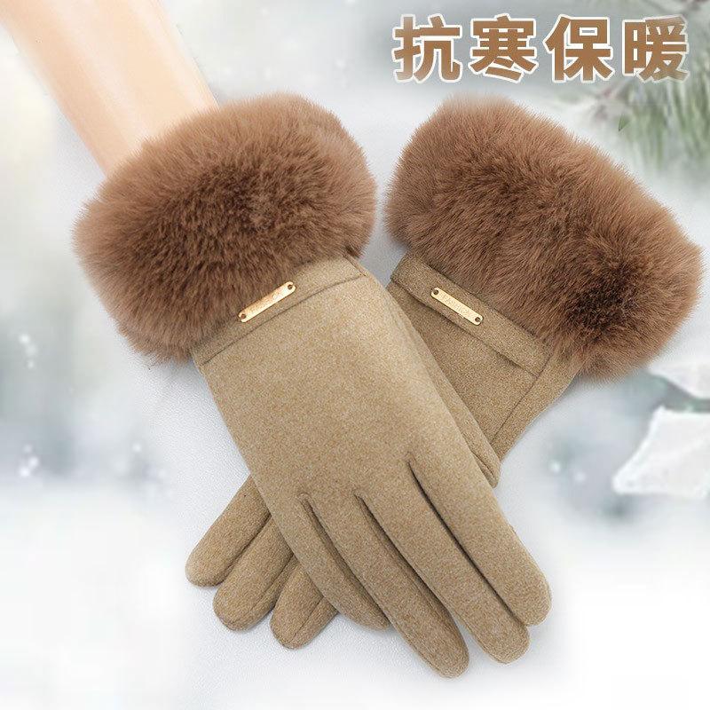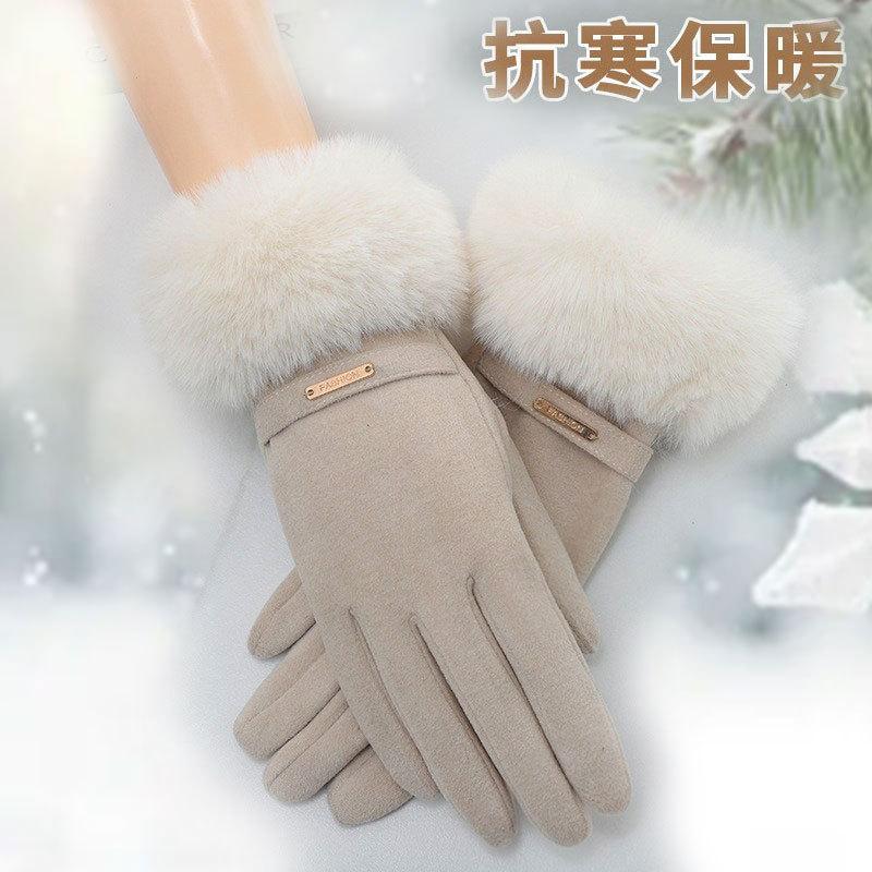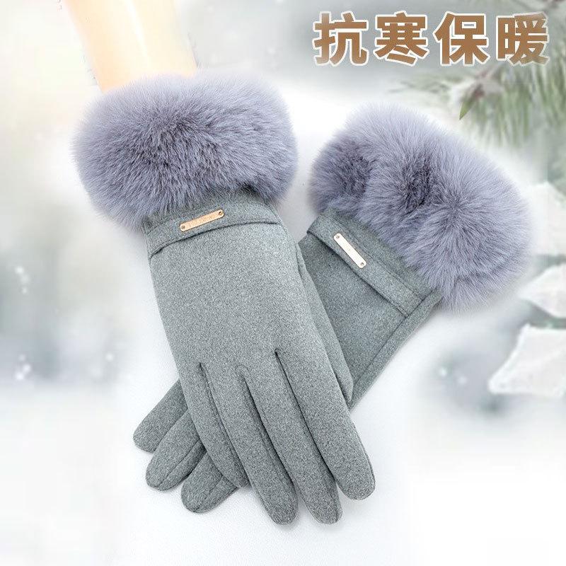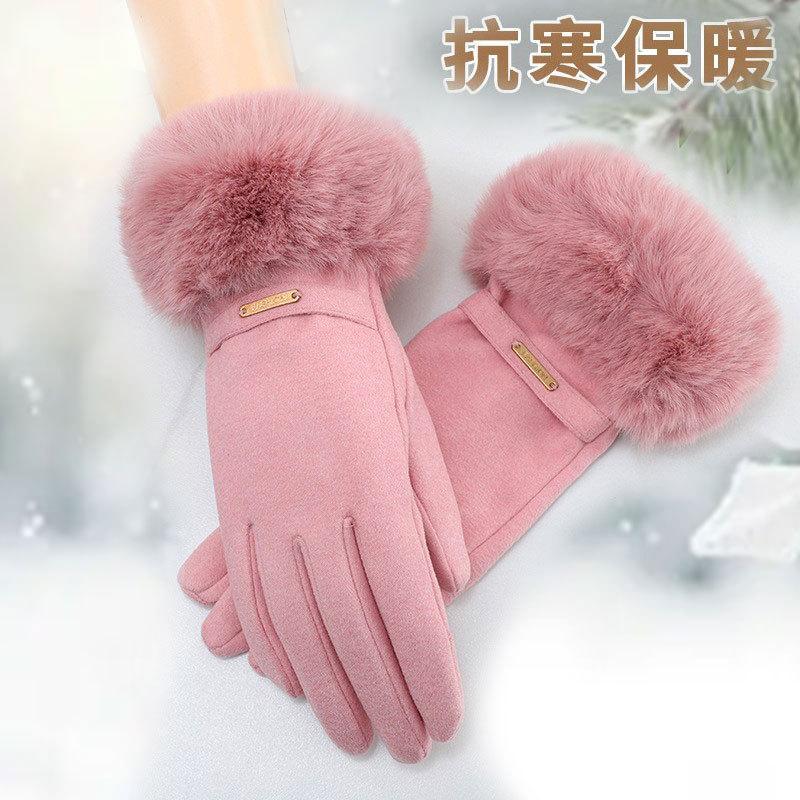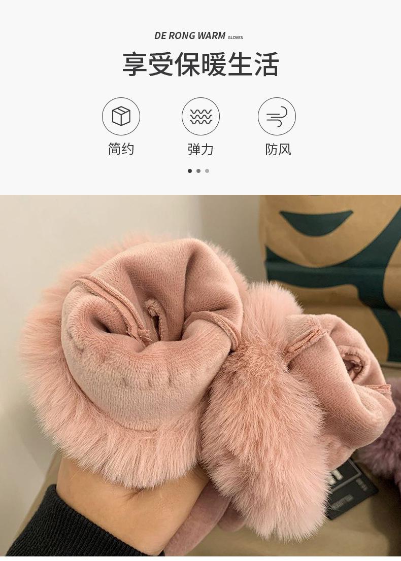 Guantes Cálidos de Otoño e Invierno con Terciopelo para Mujer Pantalla Táctil Versión Coreana para Exteriores Terciopelo Alemán Engrosado Imitación Piel de Conejo al por Mayor