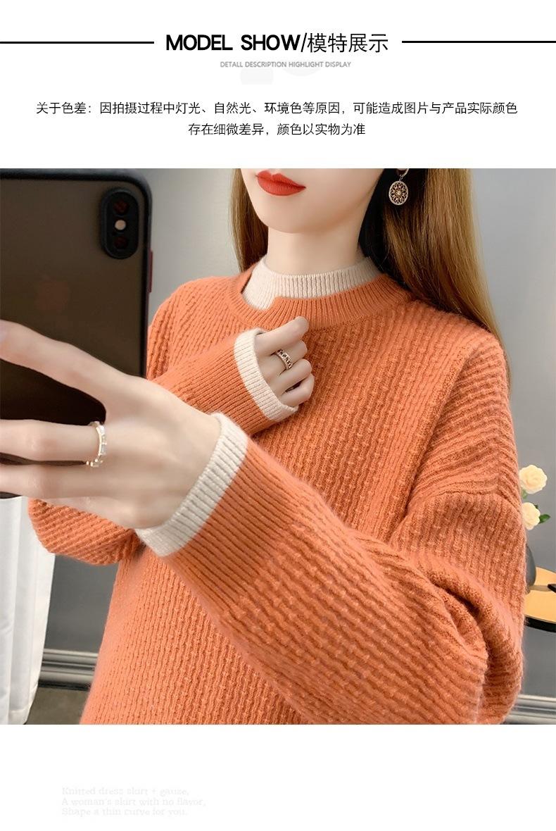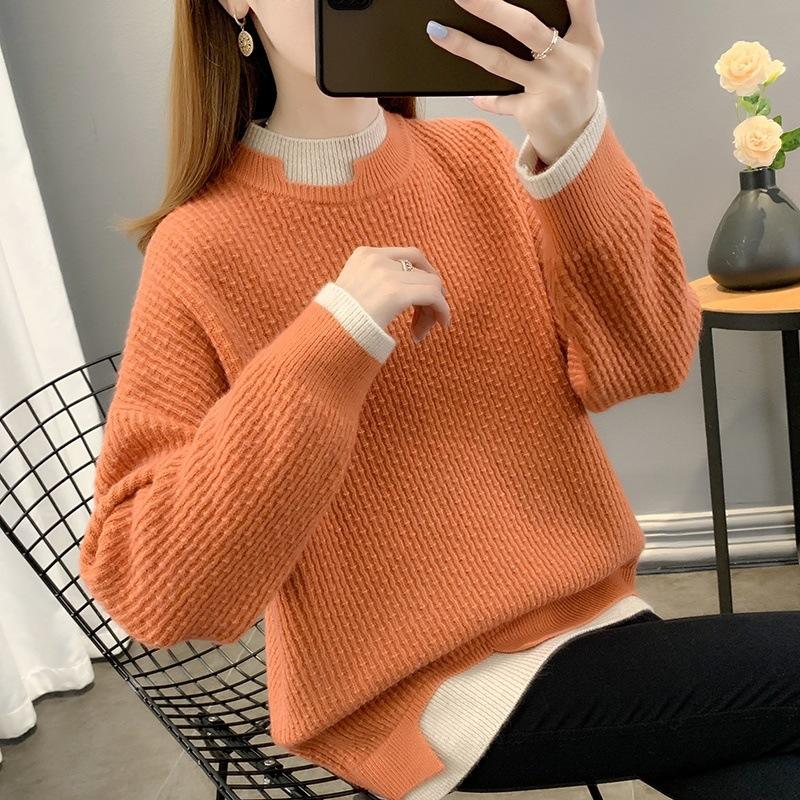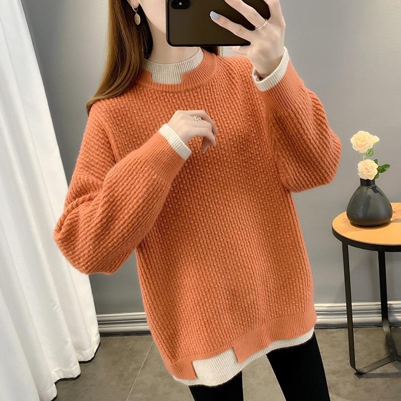 Suéter de dos piezas falso de cuello alto medio para mujer, otoño e invierno, ropa exterior suelta, camisa de punto de longitud media gruesa, 2023