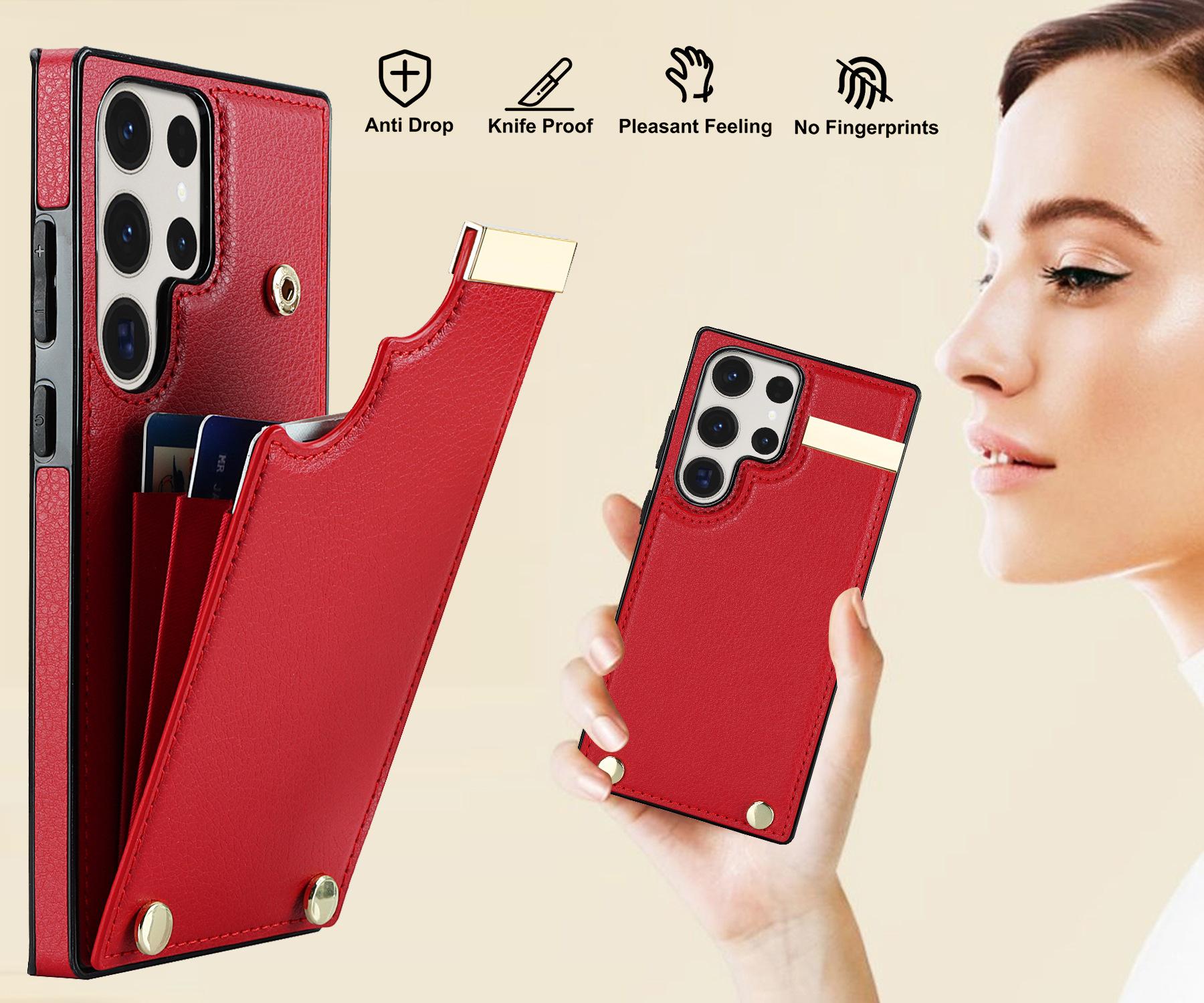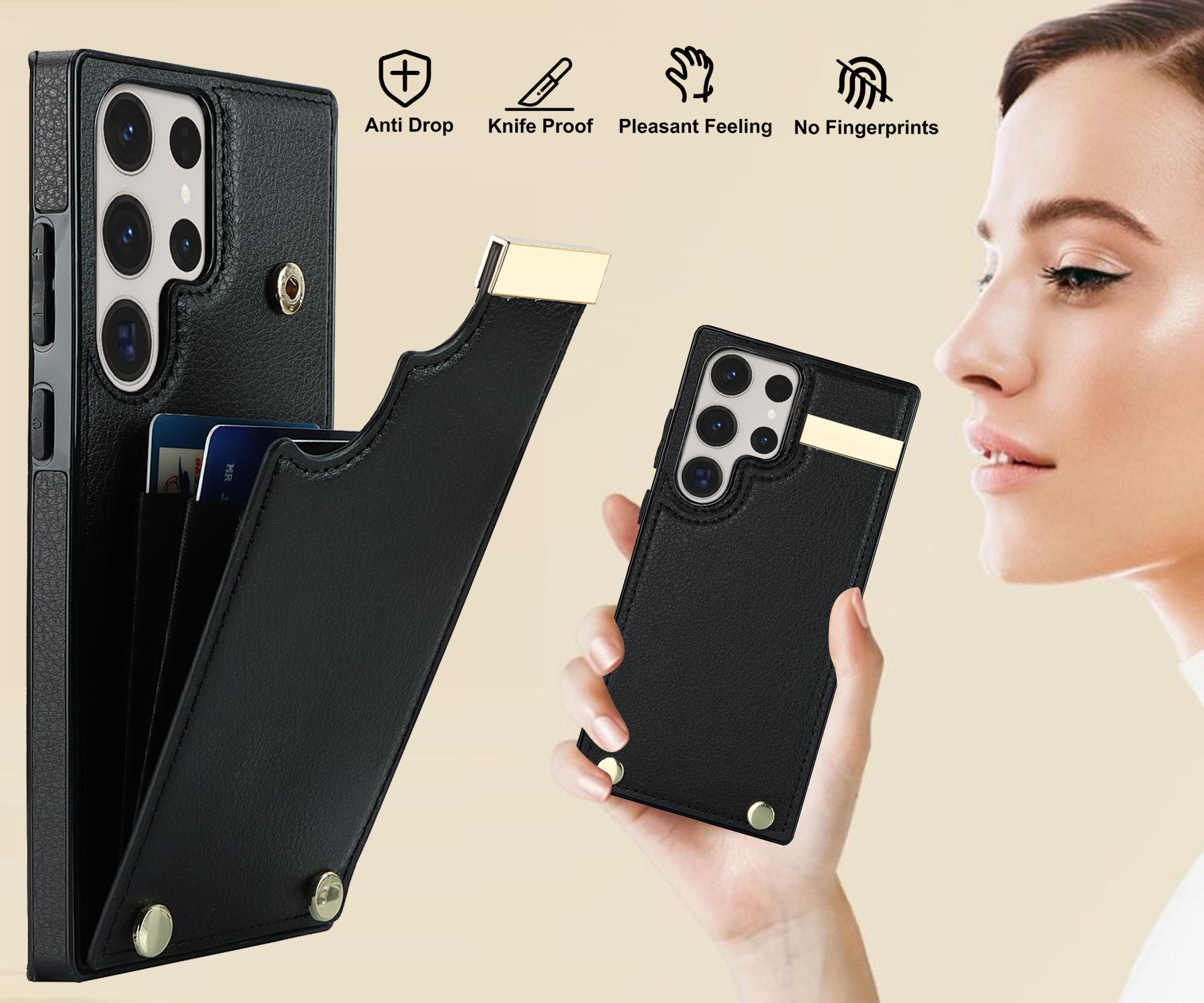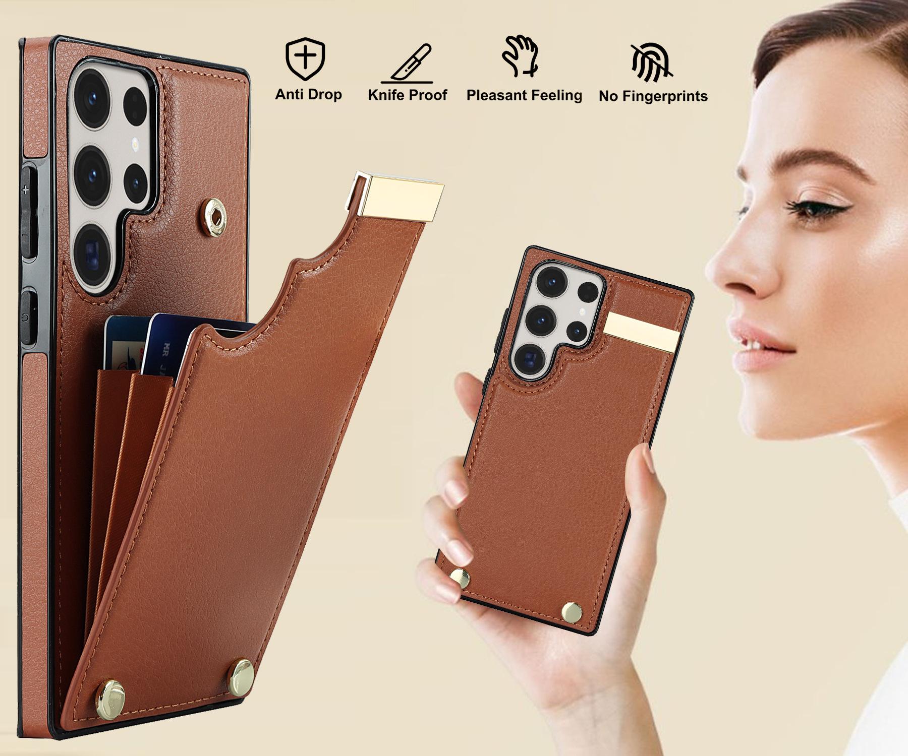 Nuevo estuche de cuero creativo para teléfono móvil S23Ultra adecuado para tarjeta acordeón Samsung A14