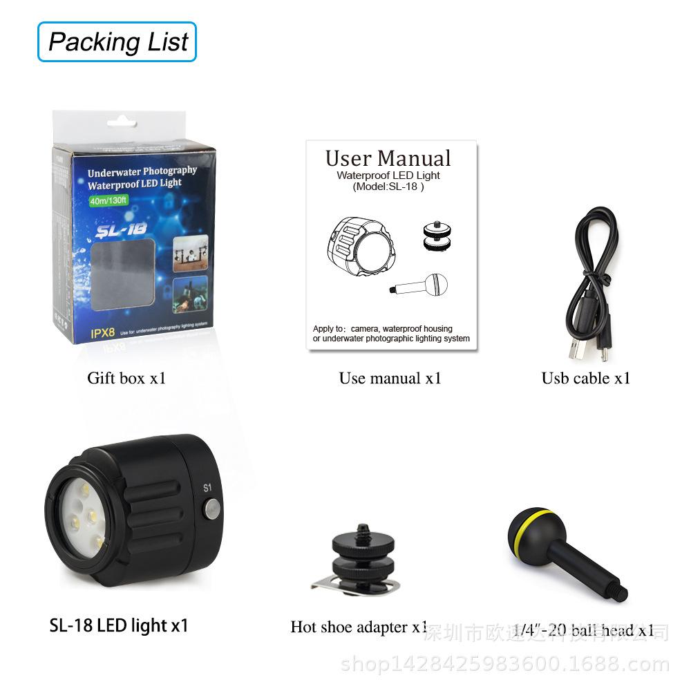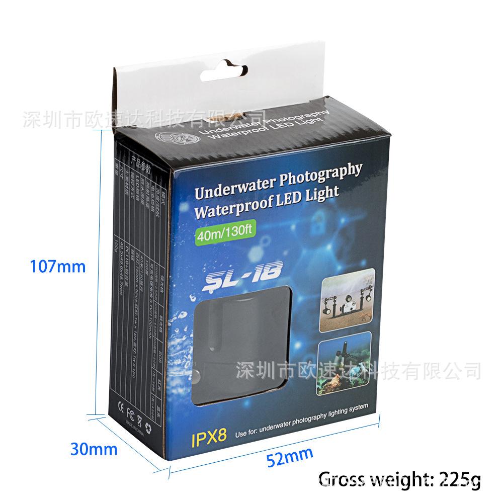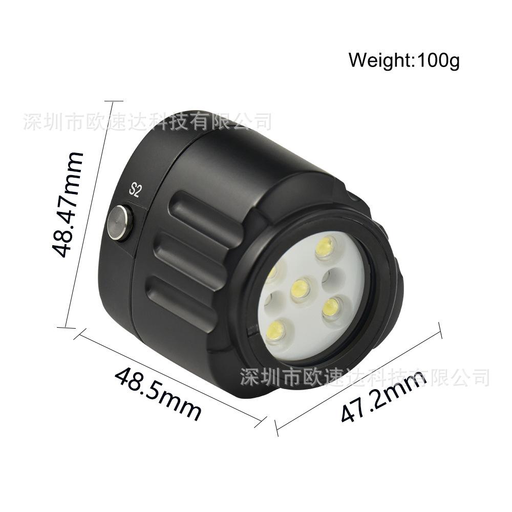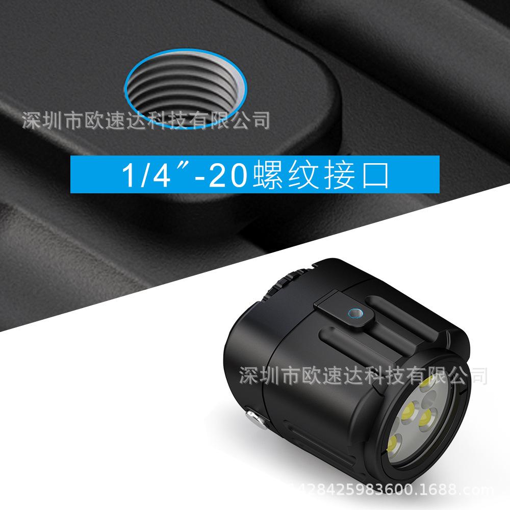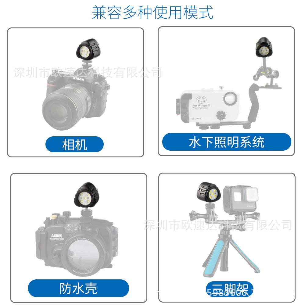 El diseño de la luz externa es simple, generoso y compacto, lo cual es más conveniente de instalar y no bloquea el uso de otros accesorios. Es resistente al agua hasta 60 metros y es adecuado para usar en diferentes entornos. Puede proporcionar iluminación y luz de relleno para su vida diaria en fotografía, video, bajo el agua y entretenimiento.