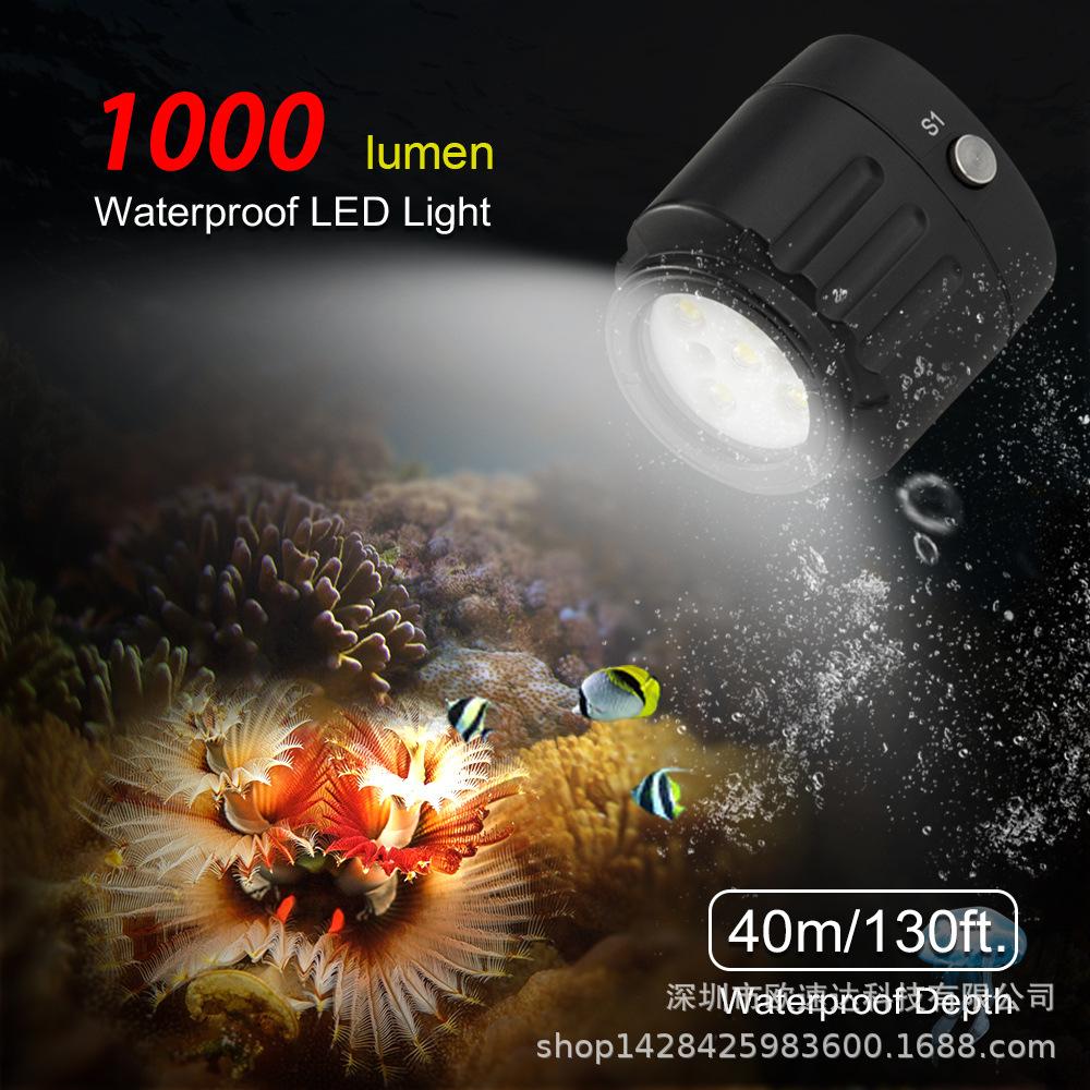 Luz de buceo de 40 m 1000LM luz de relleno LED impermeable iluminación para fotografía
