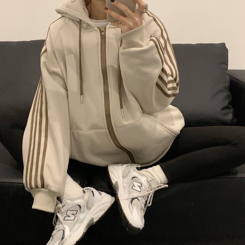 Chaqueta suelta nueva sudadera de béisbol informal con capucha insg Departamento de estudiantes coreanos forrado con vellón grueso Otoño/Invierno 2023 Mujeres