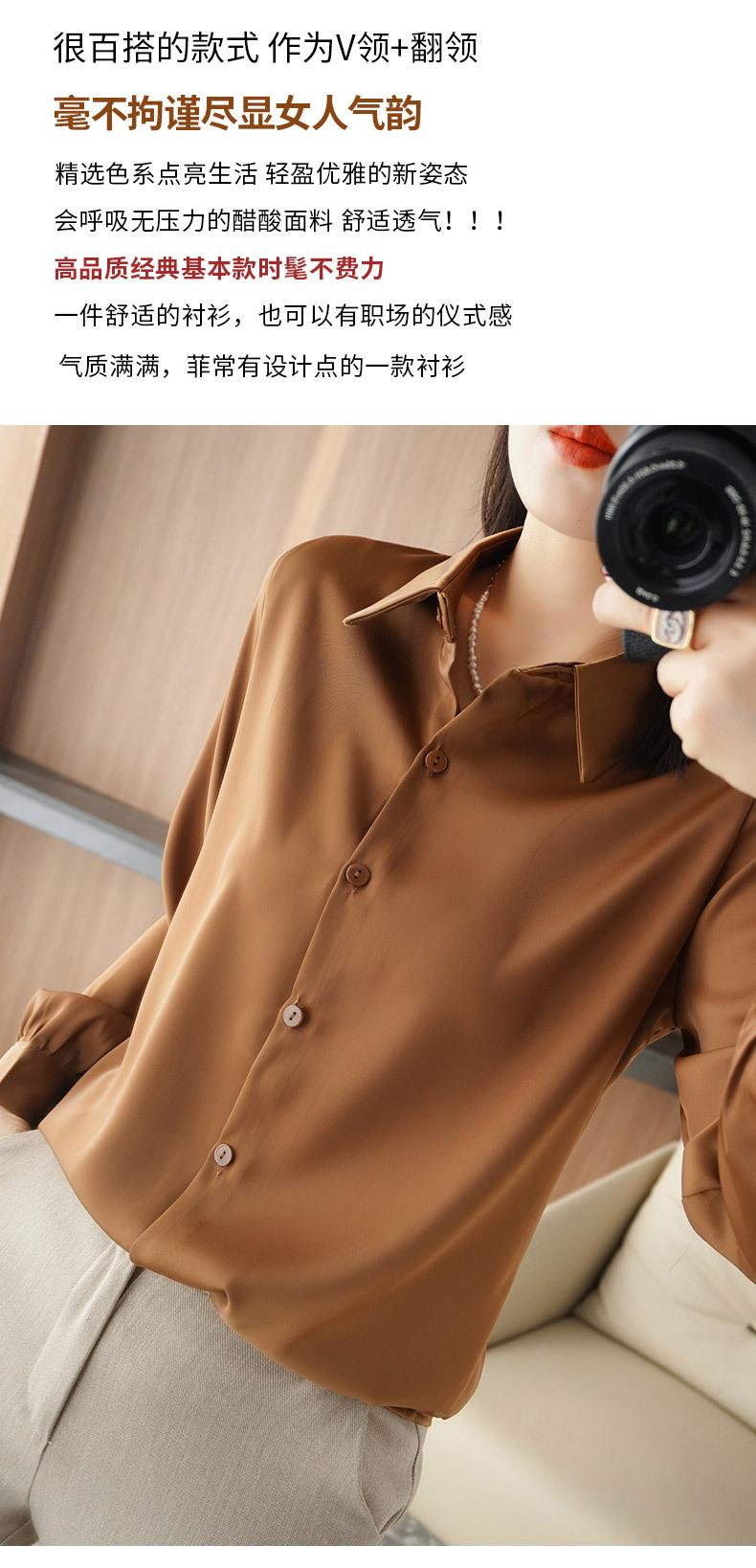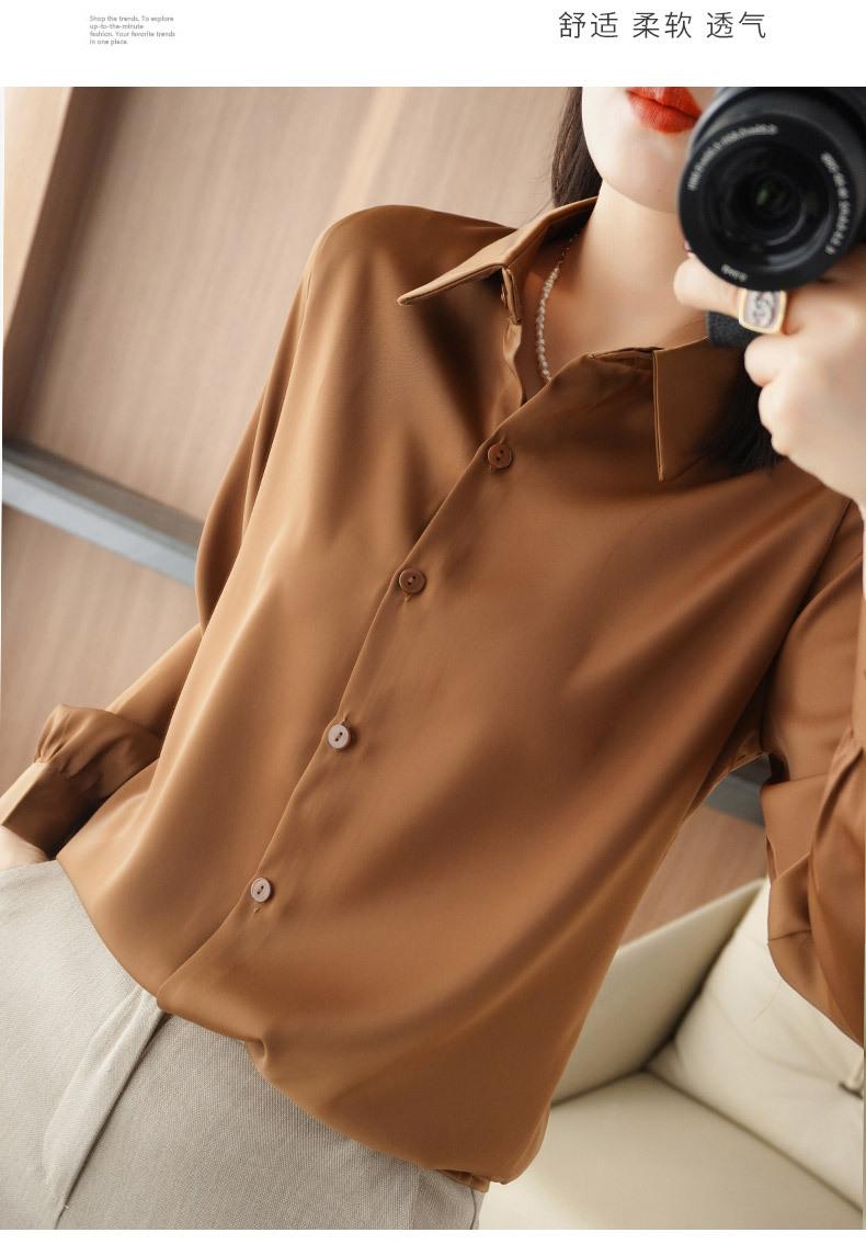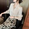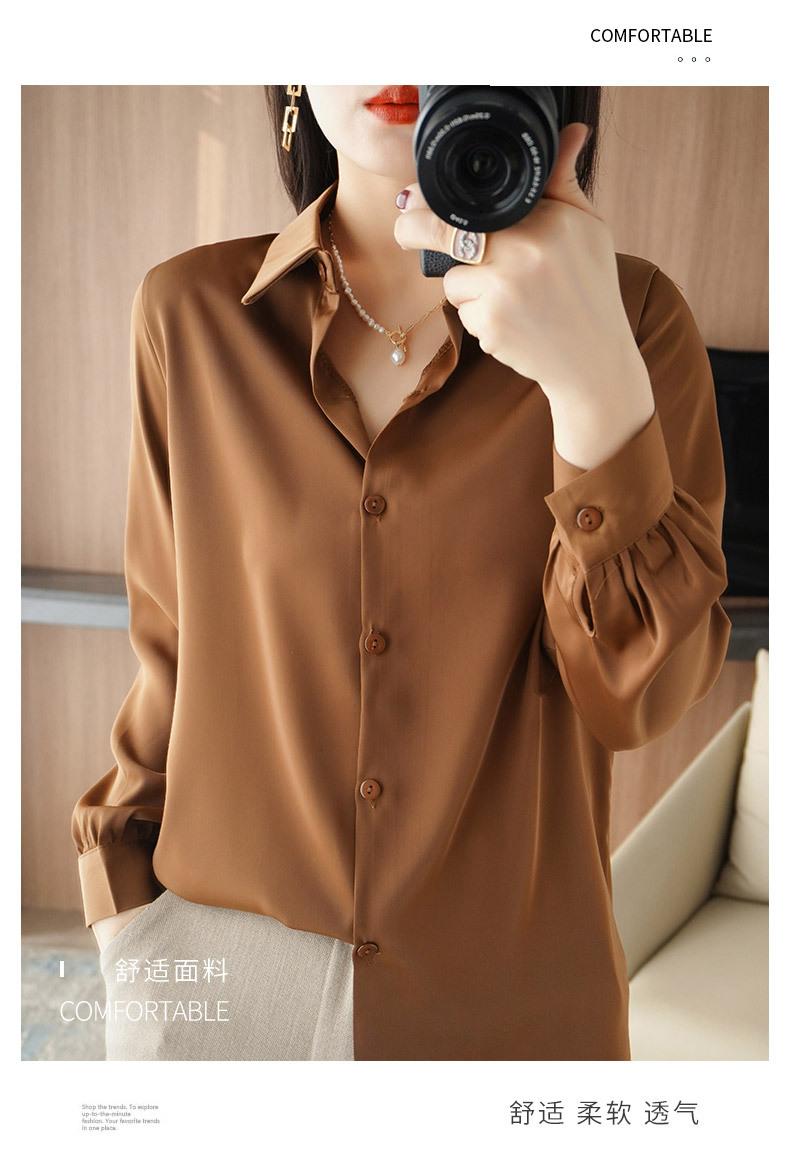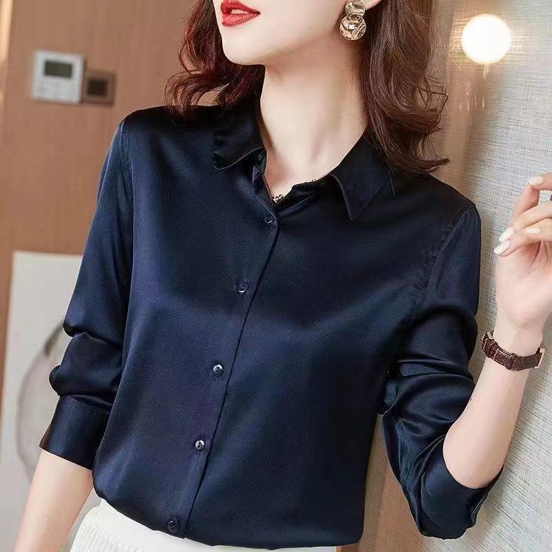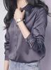 Camisa de satén de acetato con diseño retro de Hong Kong de primavera 2024, nueva camisa de seda de manga larga para mujer