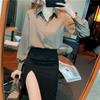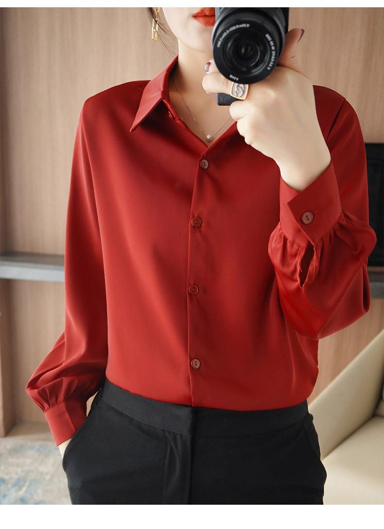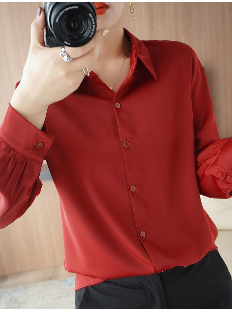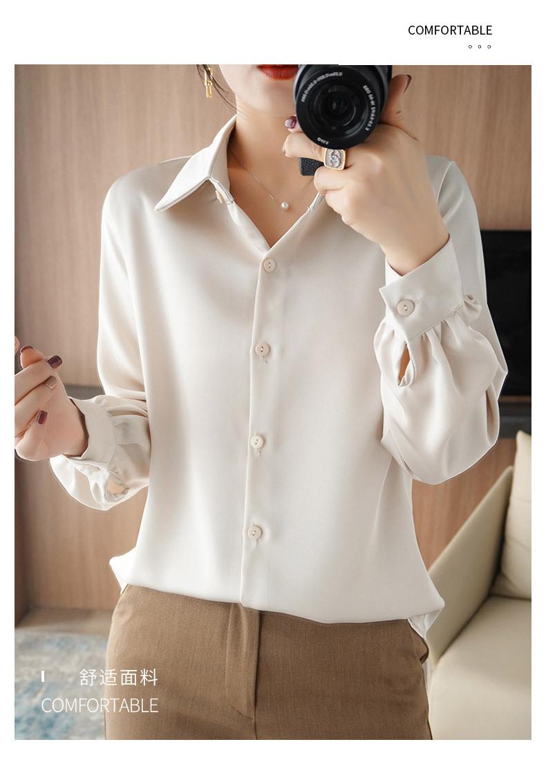 Camisa de satén de acetato con diseño retro de Hong Kong de primavera 2024, nueva camisa de seda de manga larga para mujer