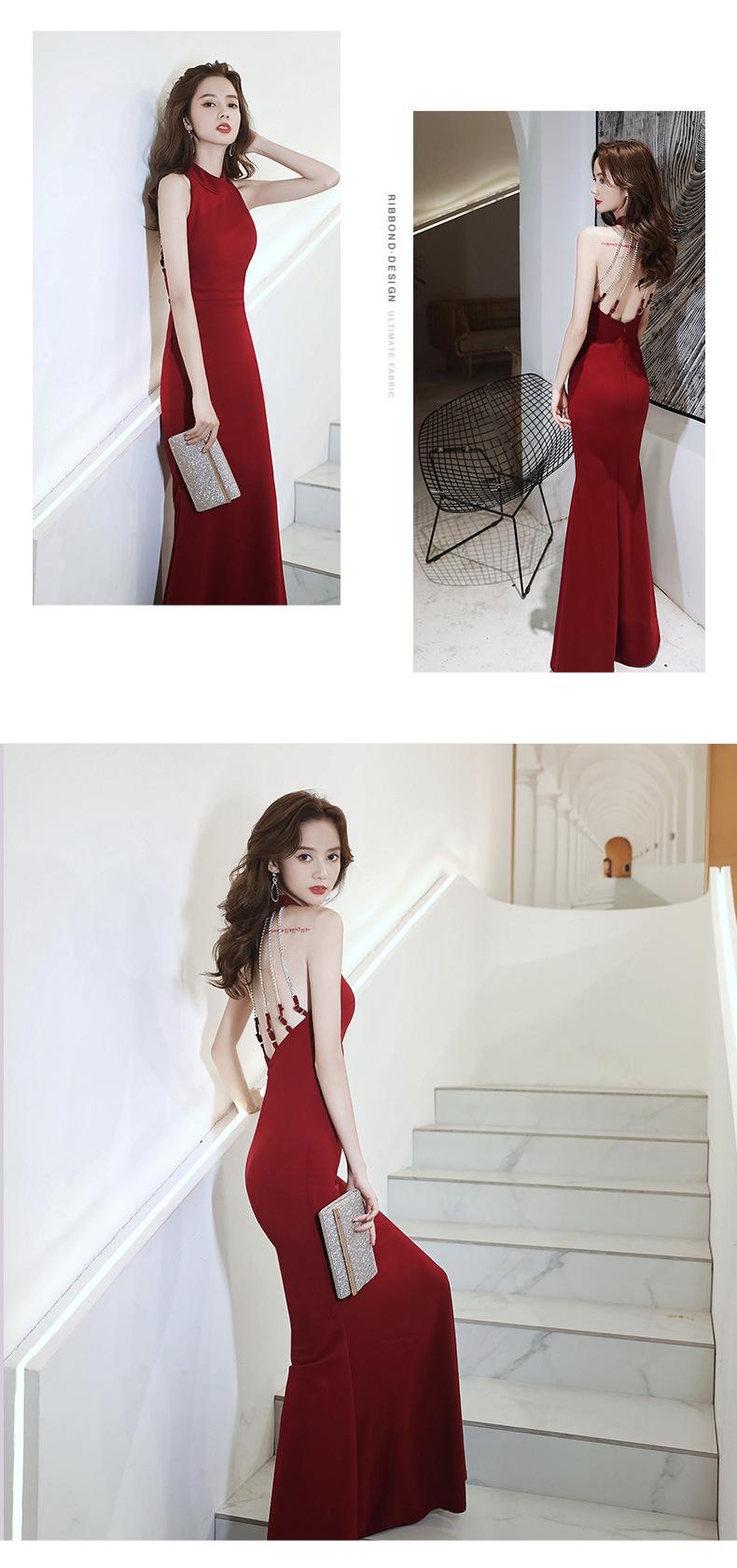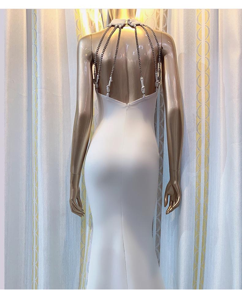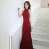 Vestido de noche sexy sin espalda, nuevo vestido de mujer sin mangas con cuello de cola de pez largo, vestido de cena ajustado