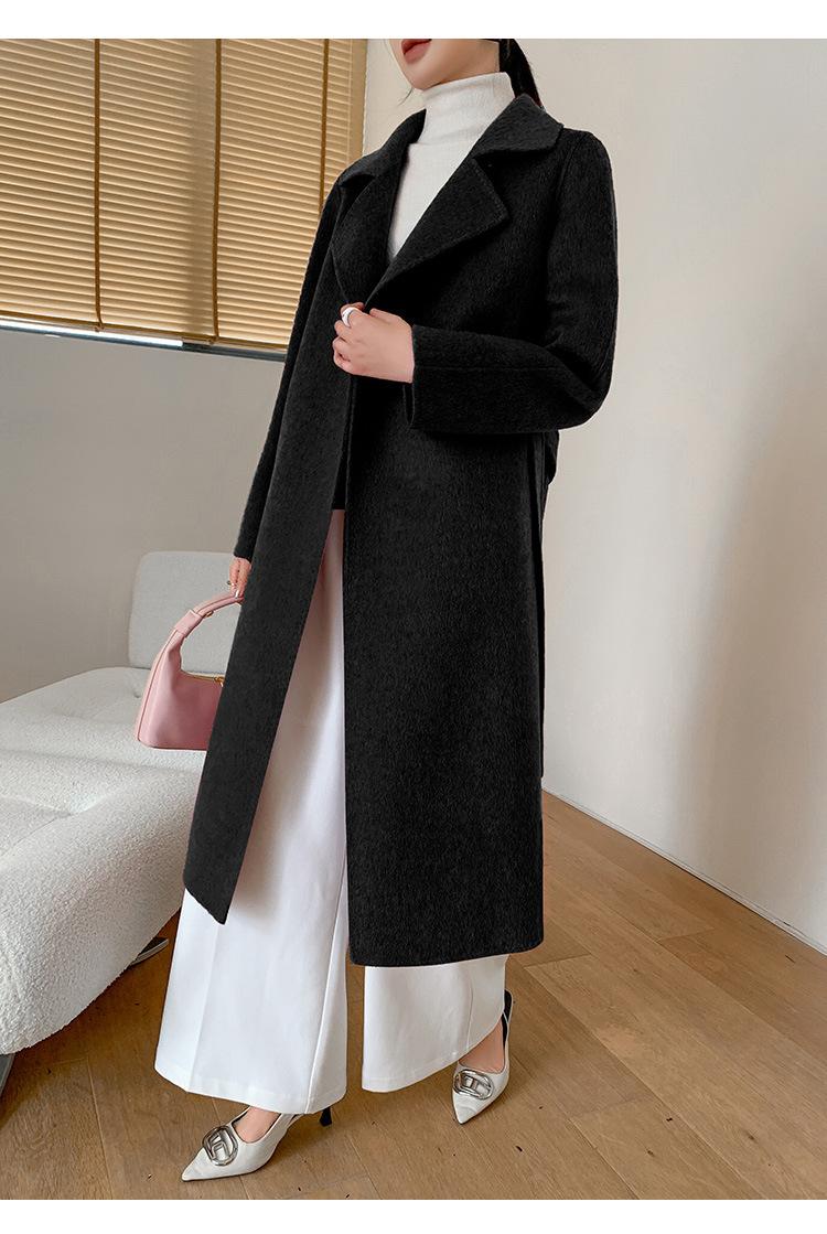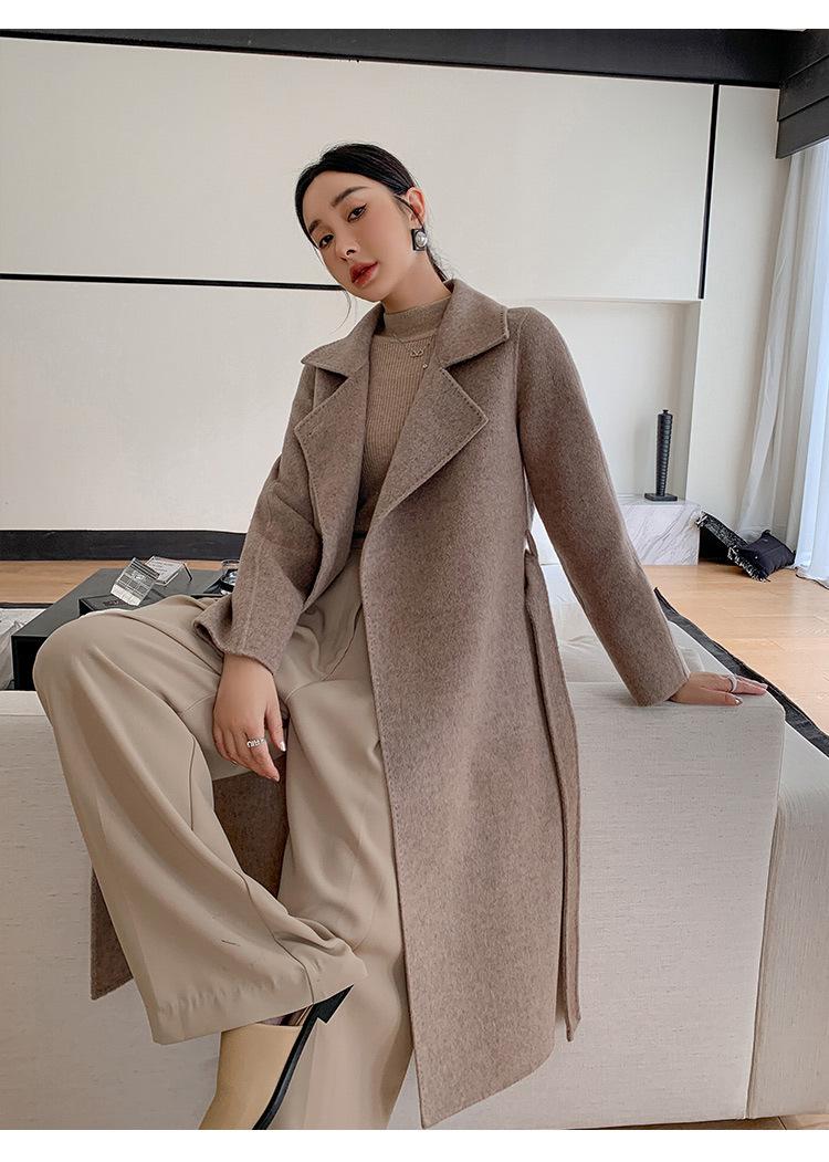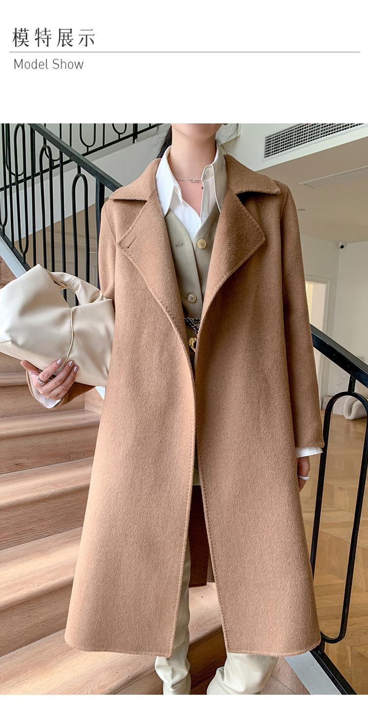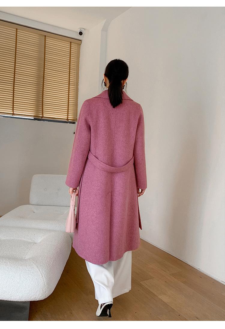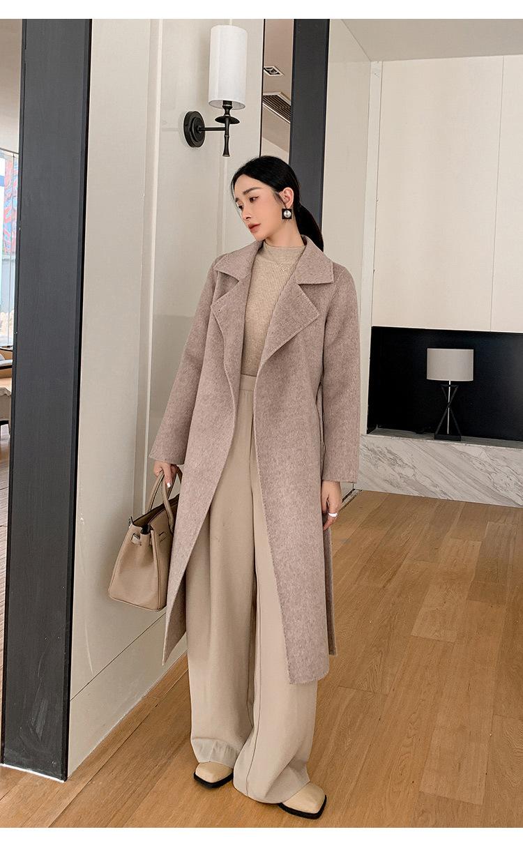 Abrigo de cachemira de doble cara, nuevo abrigo de lana ajustado de longitud media para mujer de primavera y otoño de 2024 con cuello de lana.
