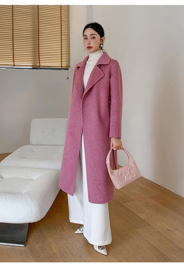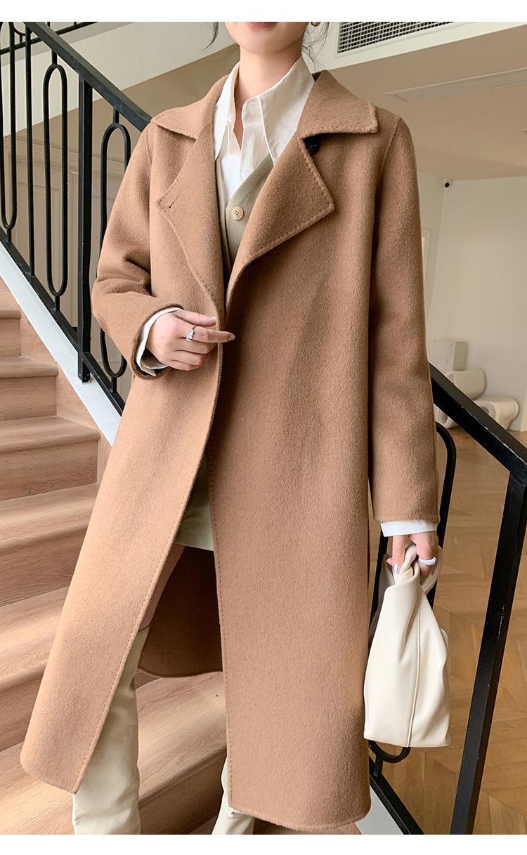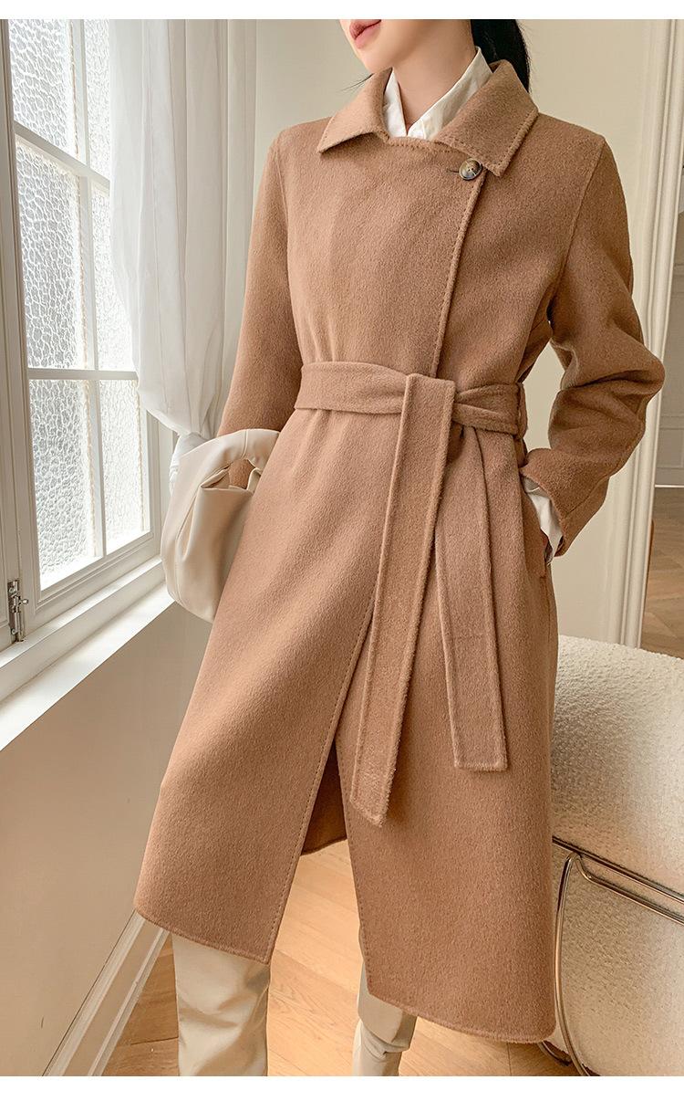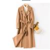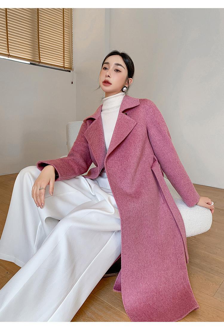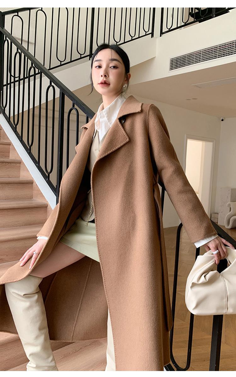 Abrigo de cachemira de doble cara, nuevo abrigo de lana ajustado de longitud media para mujer de primavera y otoño de 2024 con cuello de lana.
