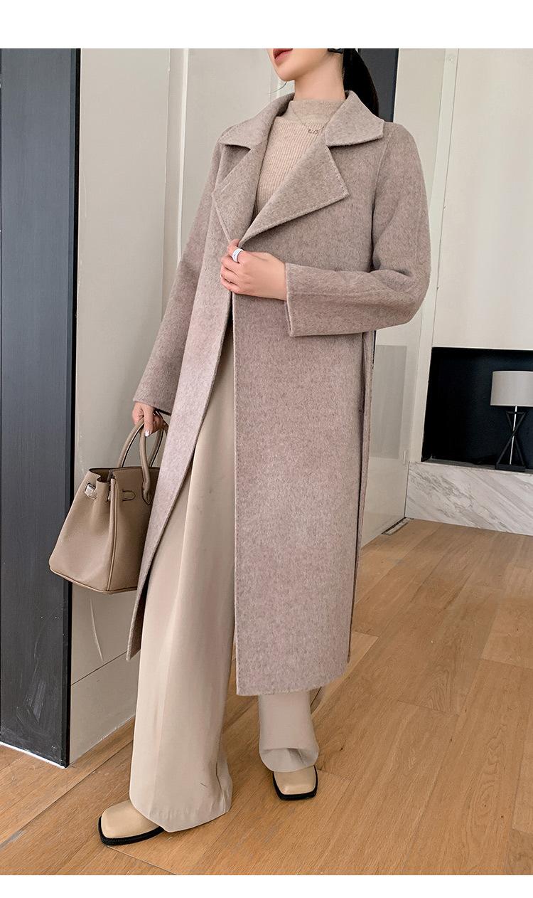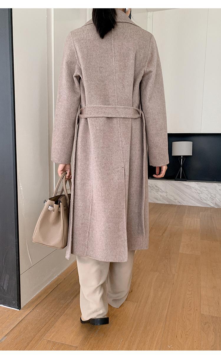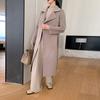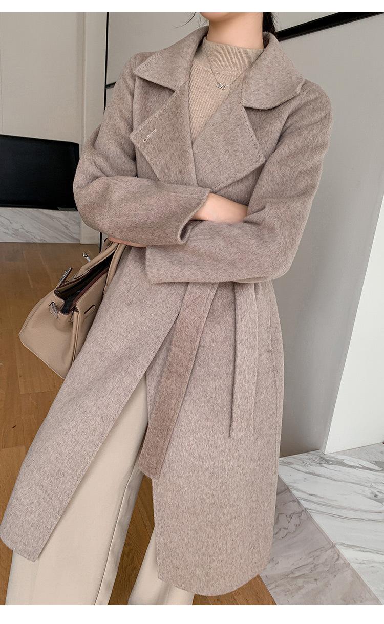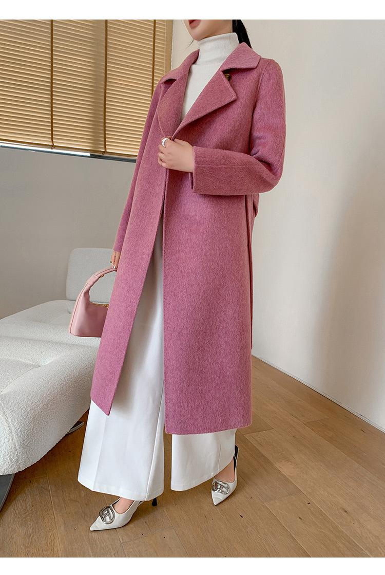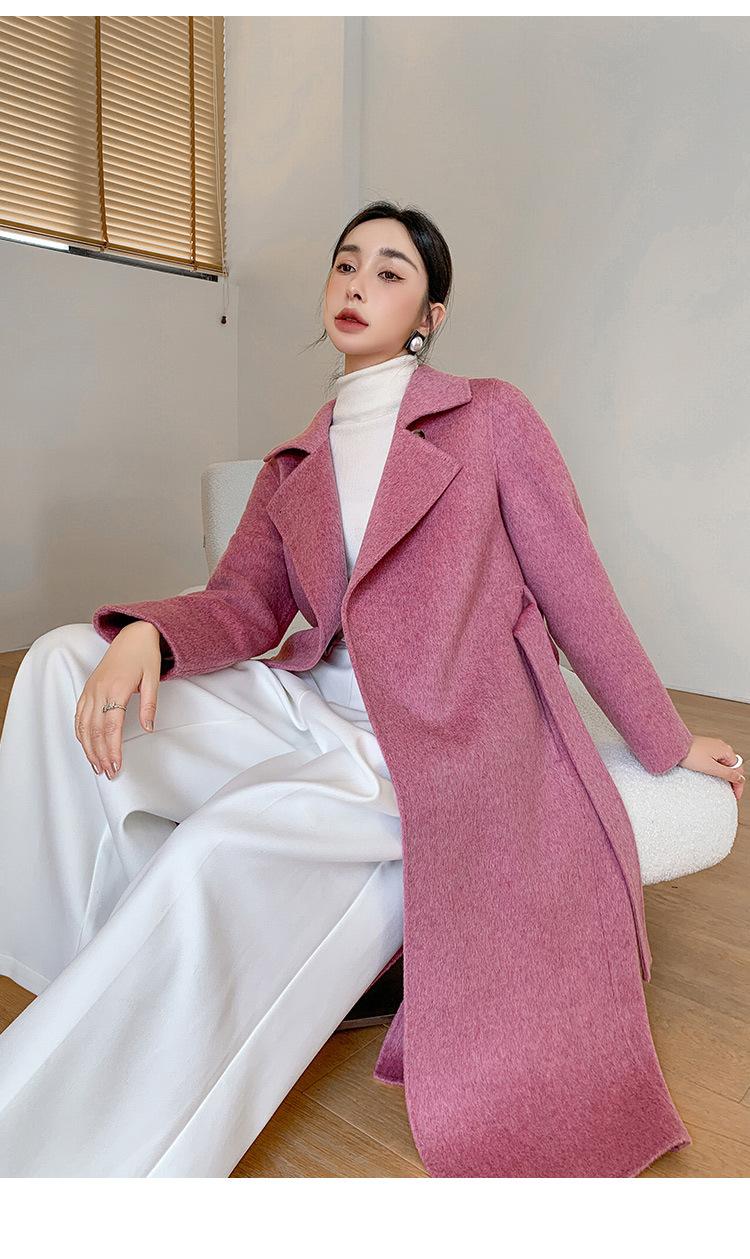 Abrigo de cachemira de doble cara, nuevo abrigo de lana ajustado de longitud media para mujer de primavera y otoño de 2024 con cuello de lana.