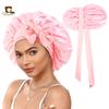 | Gorro de dormir grande de satén de doble capa con ala ancha estampada y conjunto de cintas. Gorro africano para el cuidado del cabello, disponible en Europa y América. |