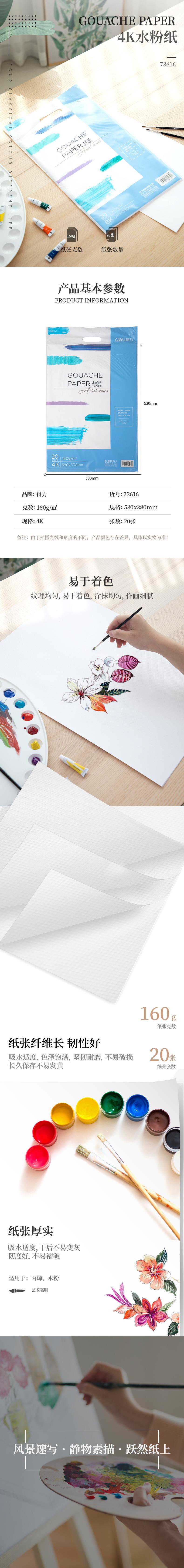 Papel para bocetos Deli 8k, papel especial de plomo de color, papel para pintar para estudiantes de arte, papel gouache 4k8k, papel para pintar, papel para bocetos A4
