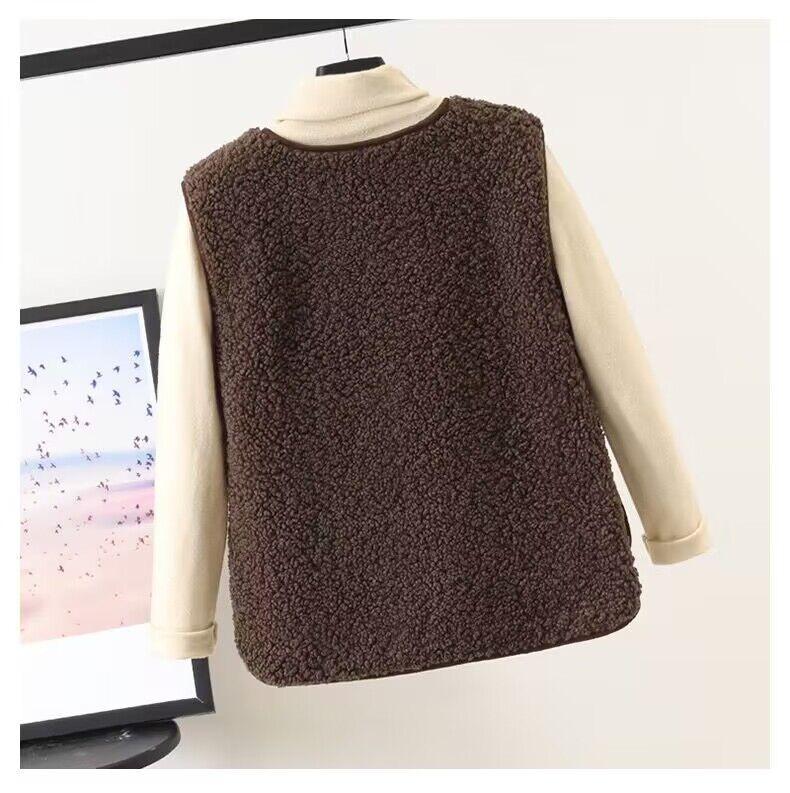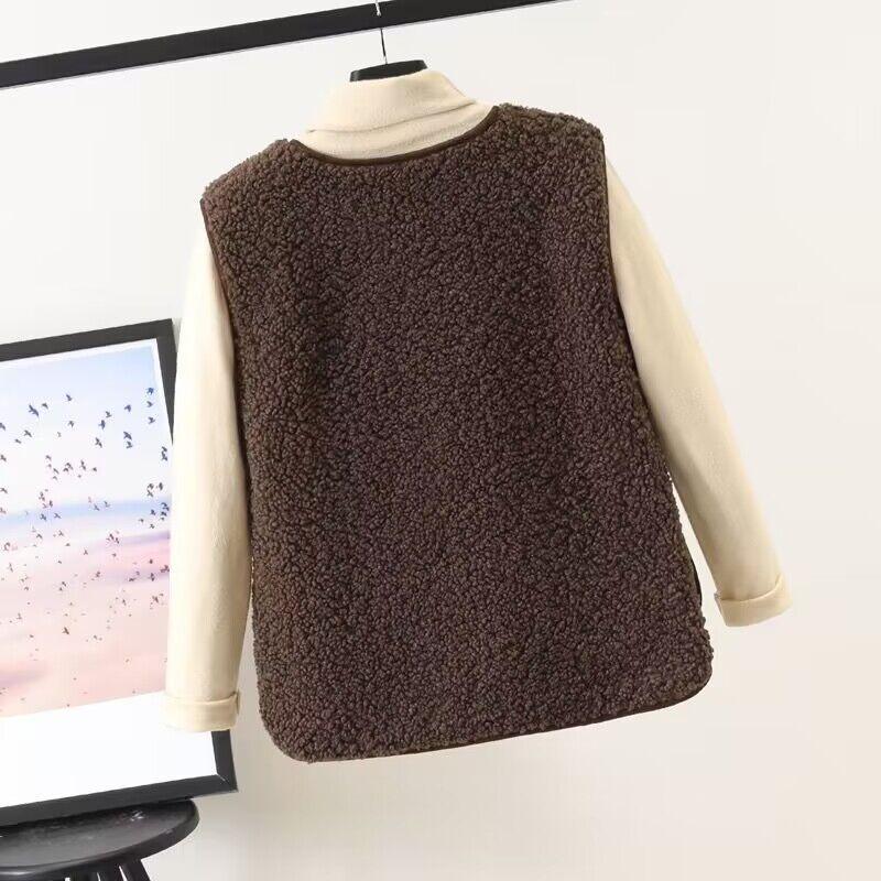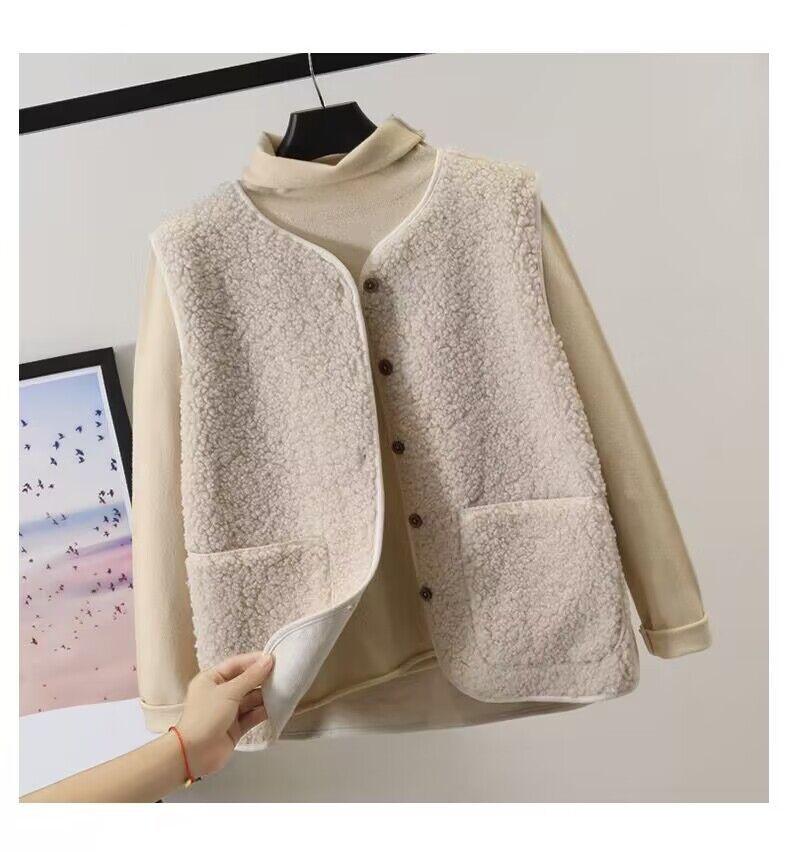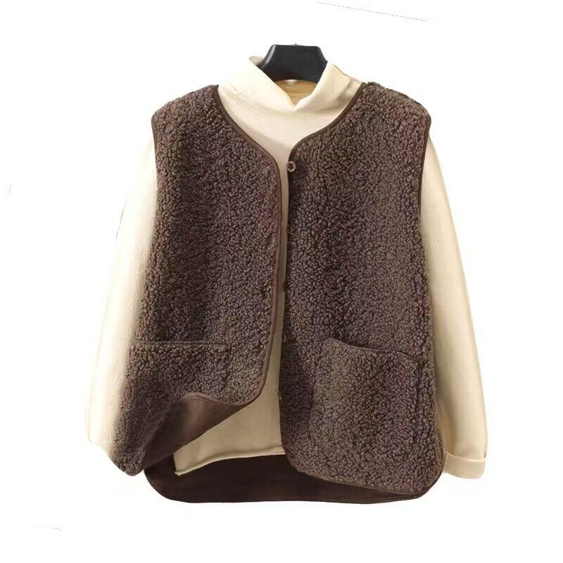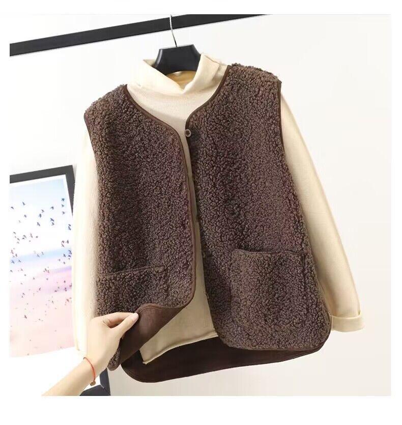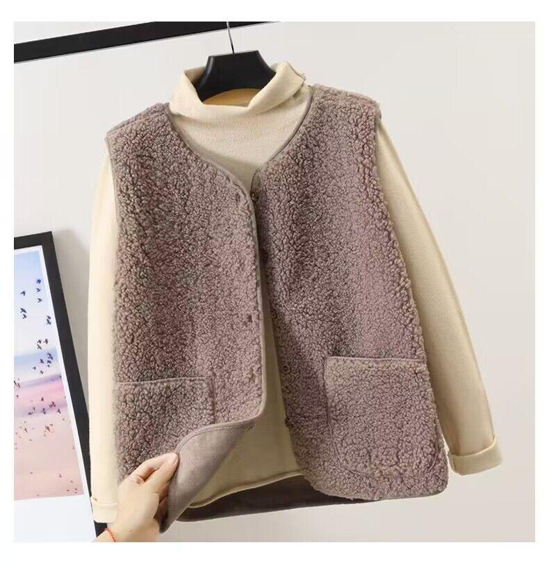 Chaleco de Lana de Cordero para Mujer 2025 Nuevo Otoño e Invierno Piel Integrada Chaleco Popular Versátil Chaqueta Chaleco Felpa