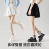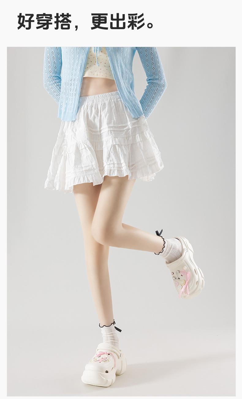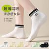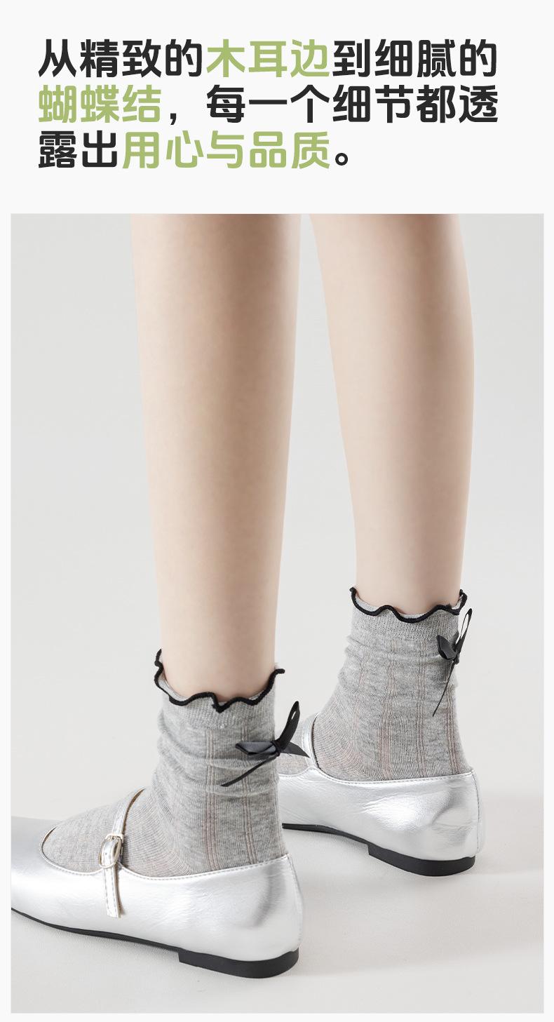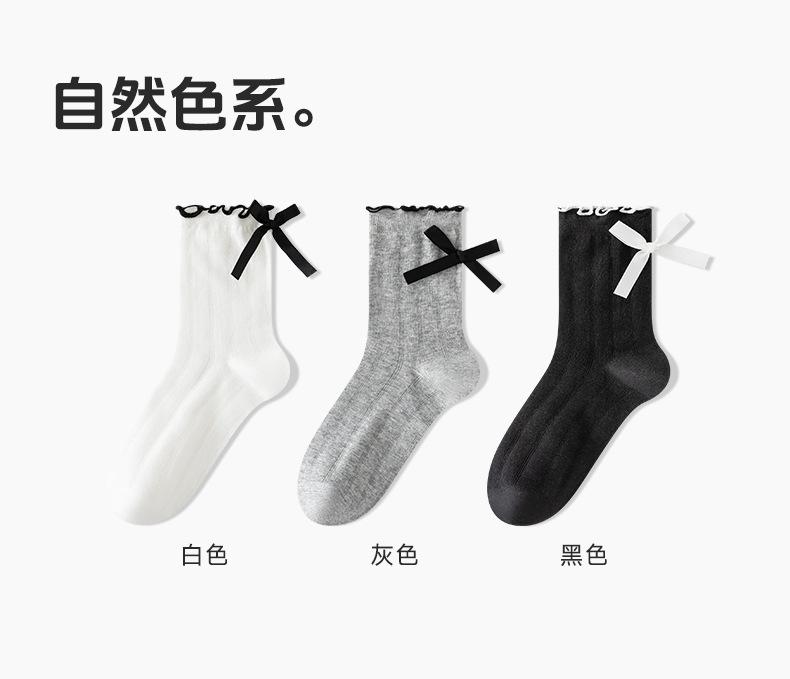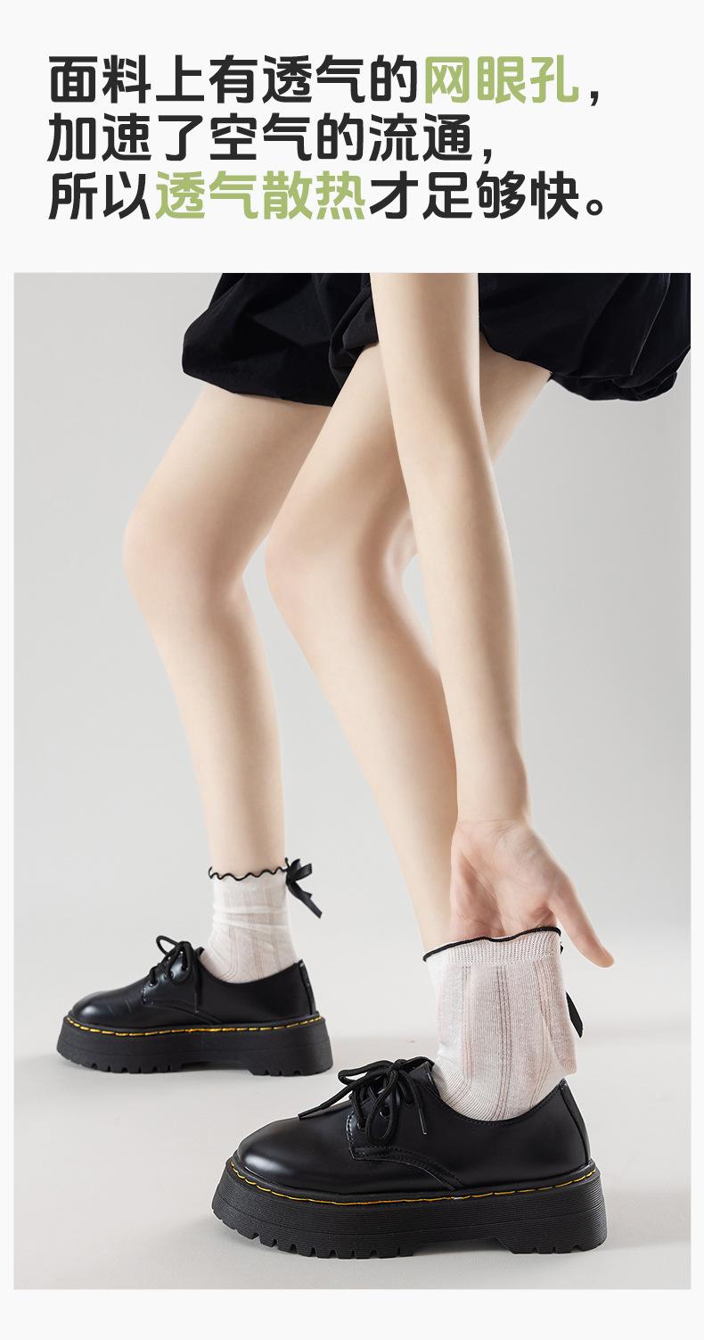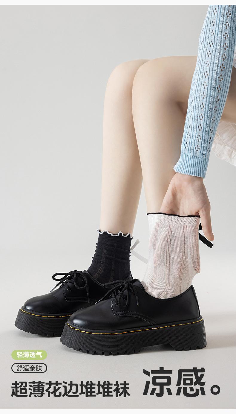 Calcetines de Encaje Fino Boca Apilada Algodón Simple Talón Lazo Calcetines Medianos Malla Transpirable Absorbente de Sudor Calcetines de Mujer