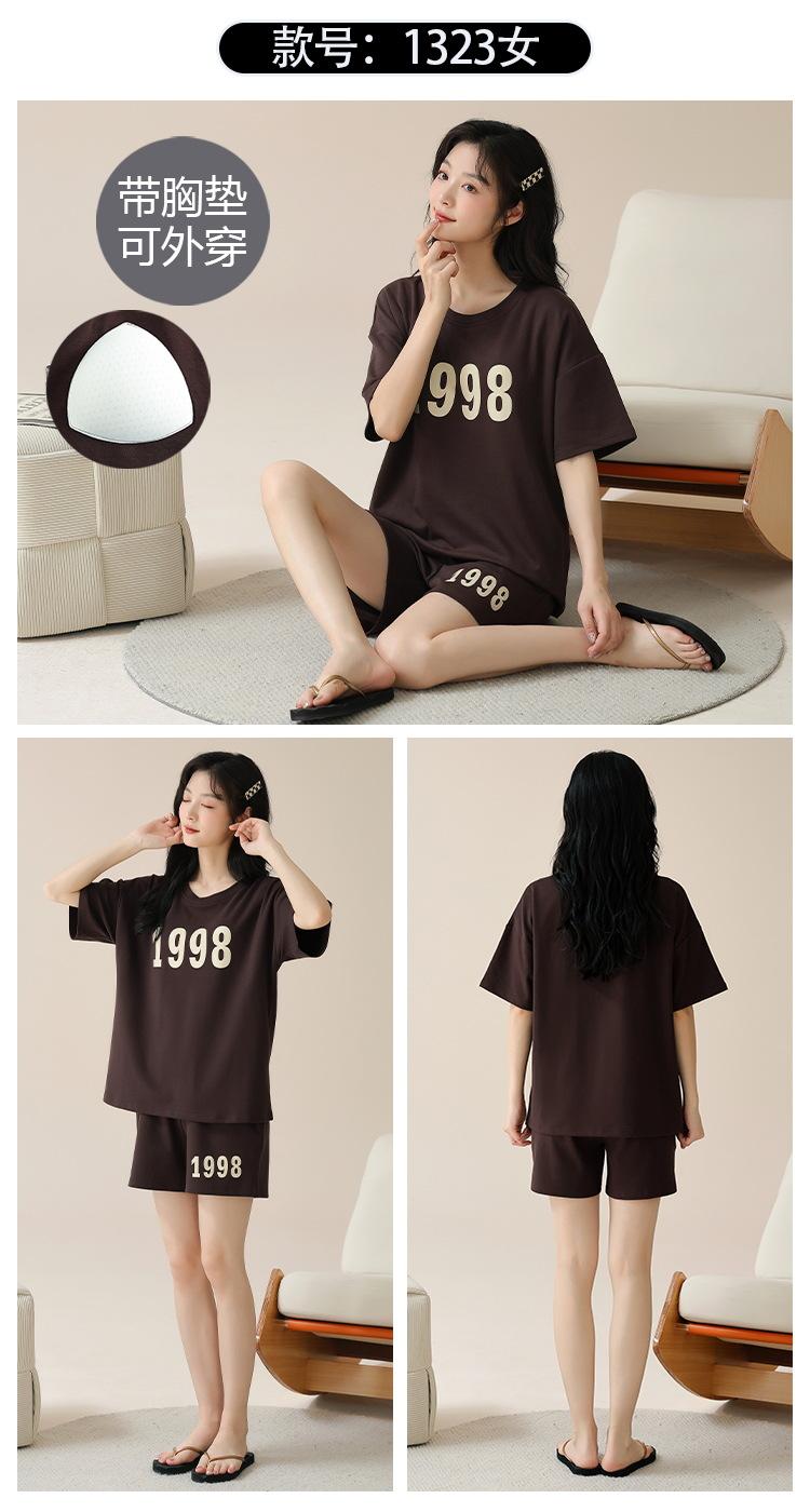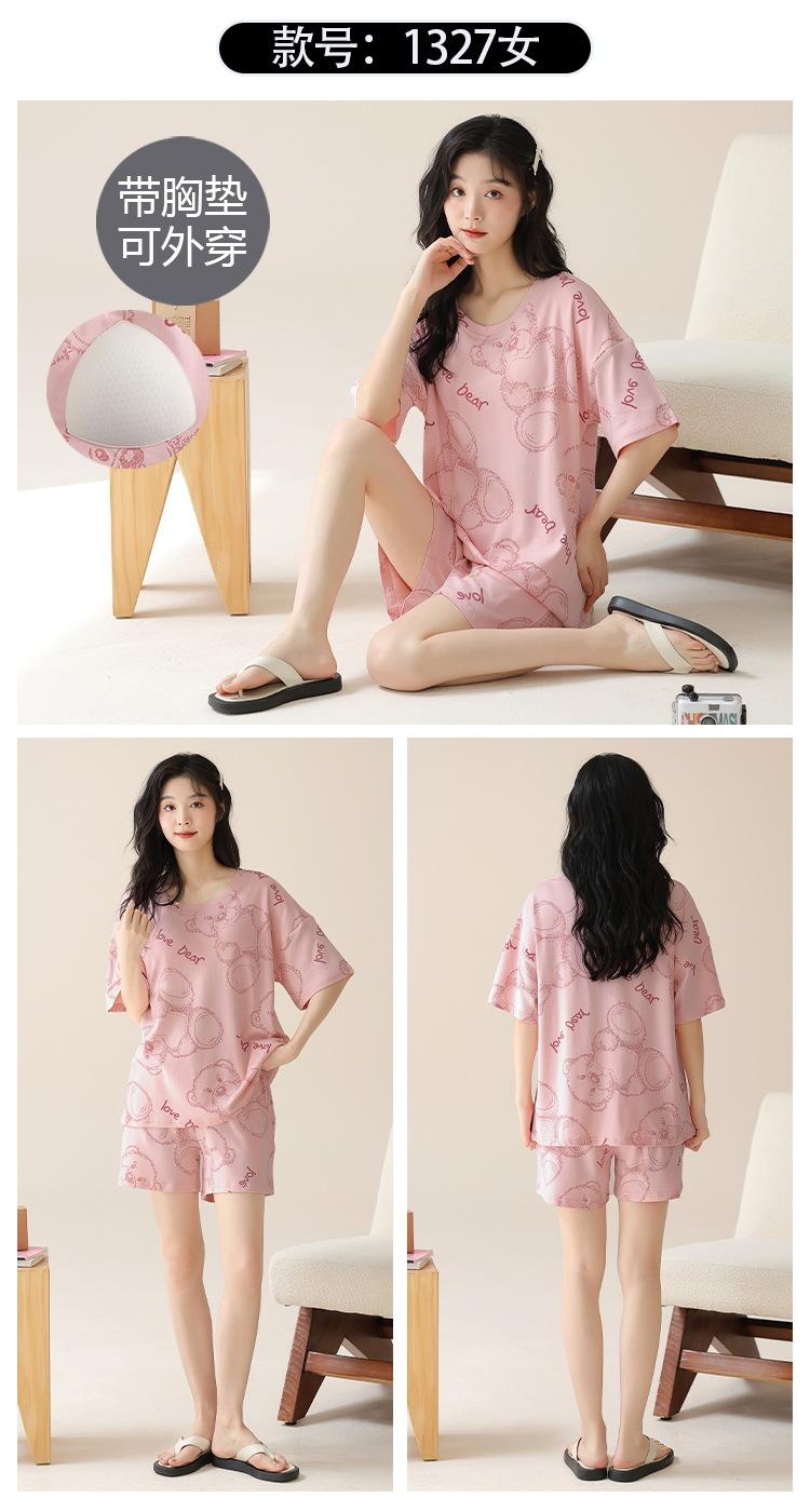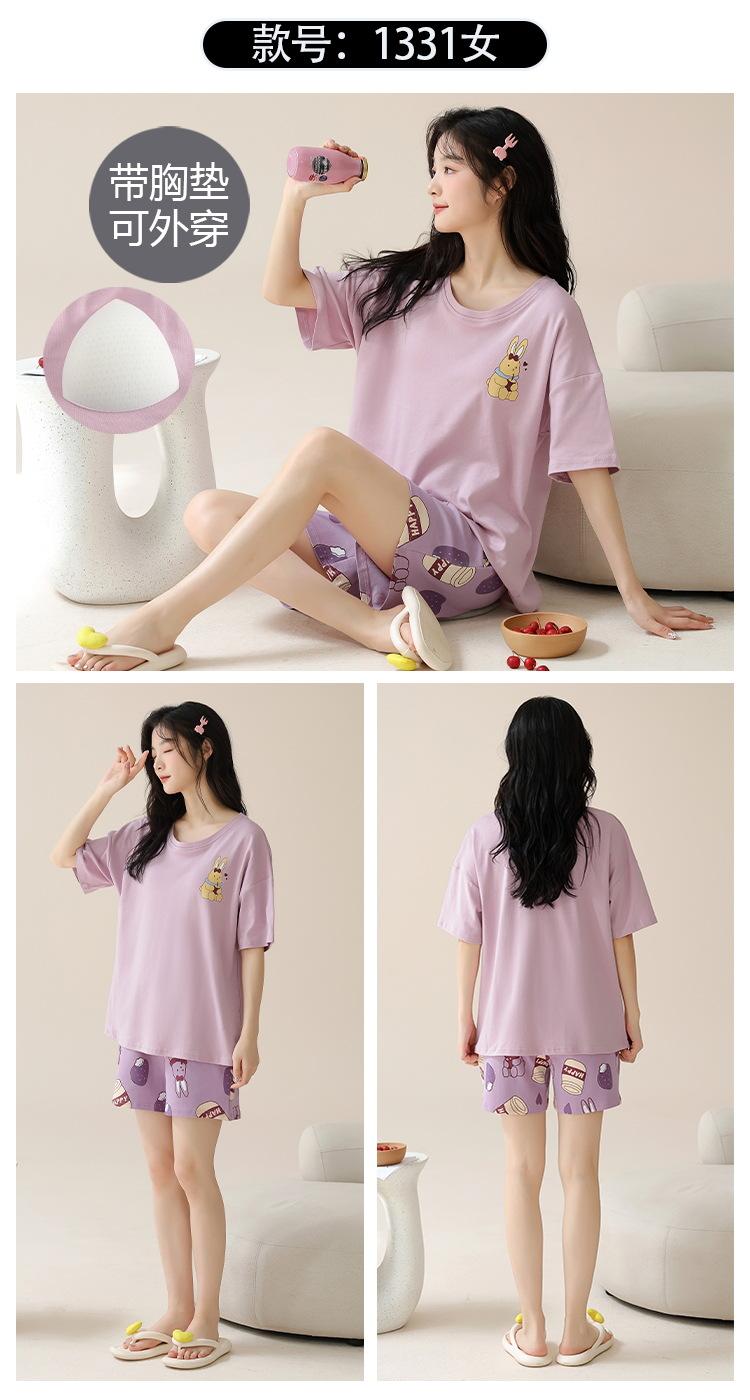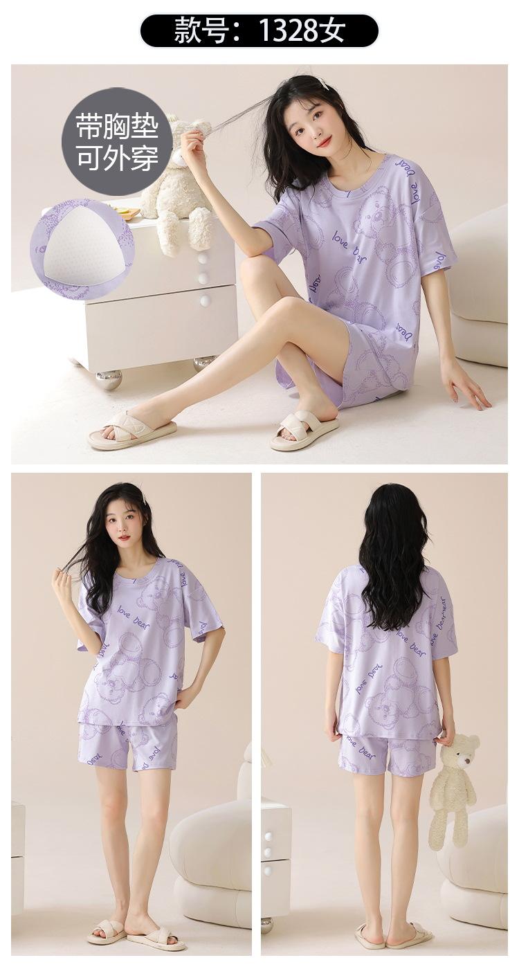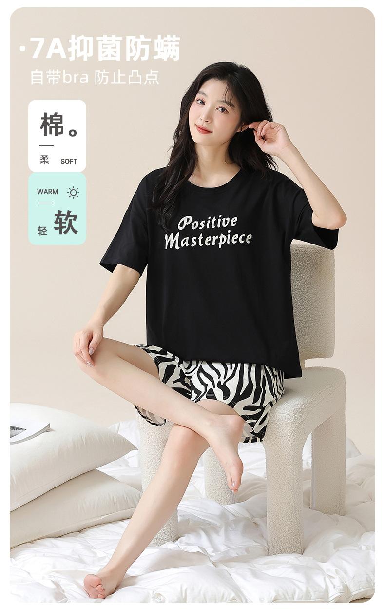Pijama de verano para mujer con almohadilla para el pecho, pantalones cortos de algodón de manga corta, ropa exterior fina de verano para mujer, ropa de casa de talla grande