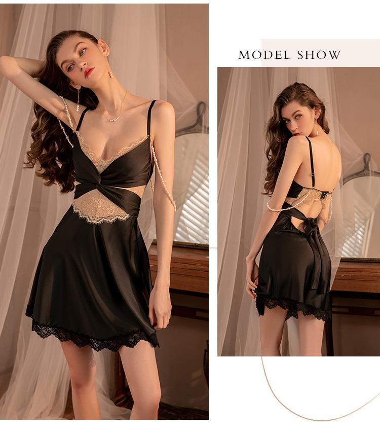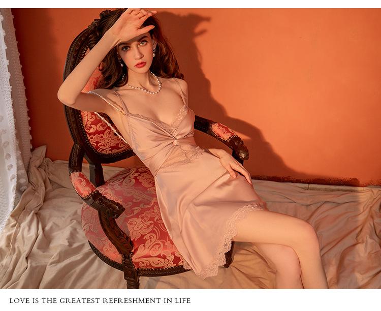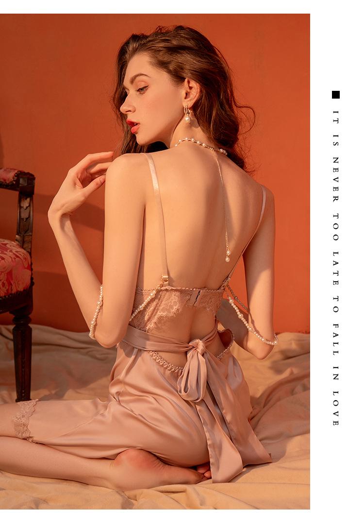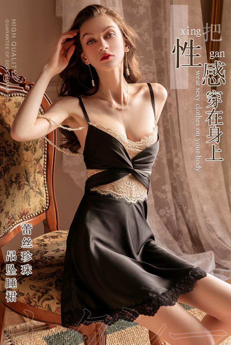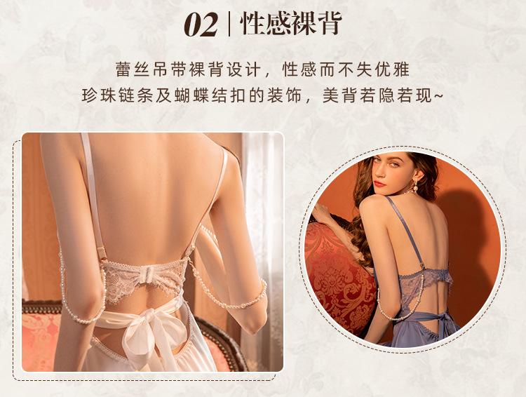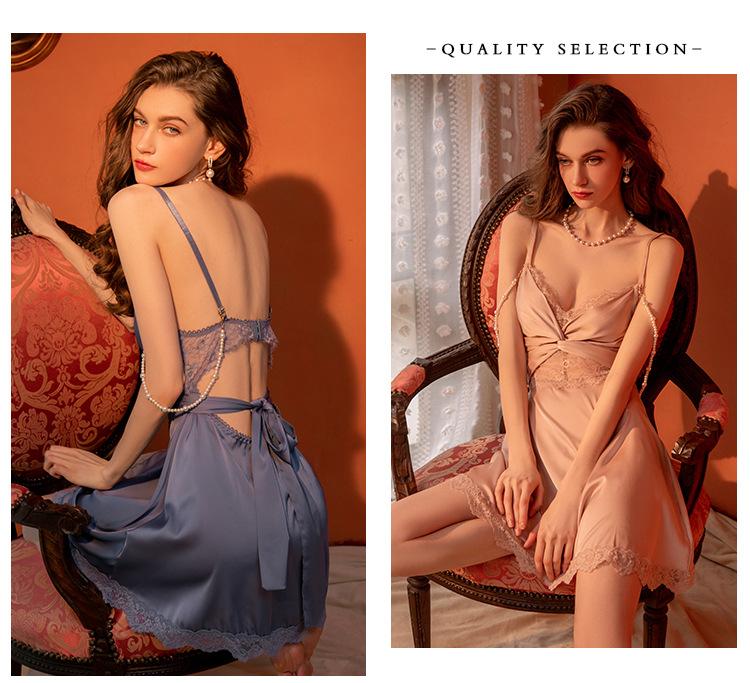 Pijama sexy 3023 estilo puro deseo, camisón de perlas, ligero, de lujo, de seda de hielo, nuevo para el hogar, con tirantes franceses, de una pieza, entrega
