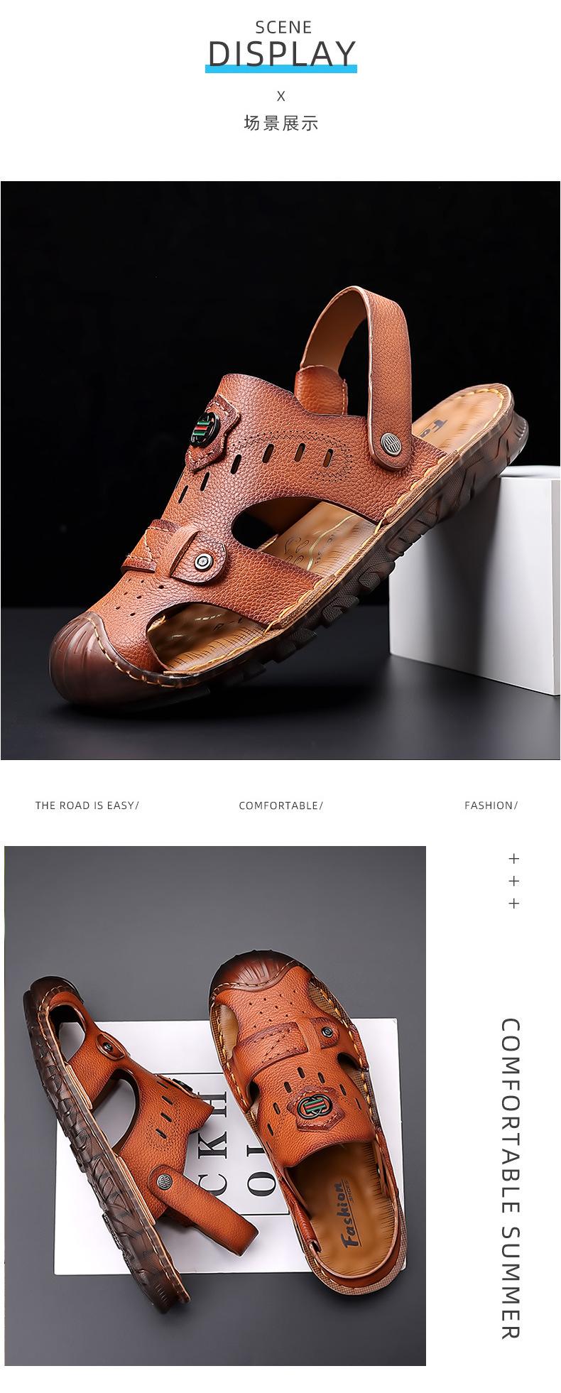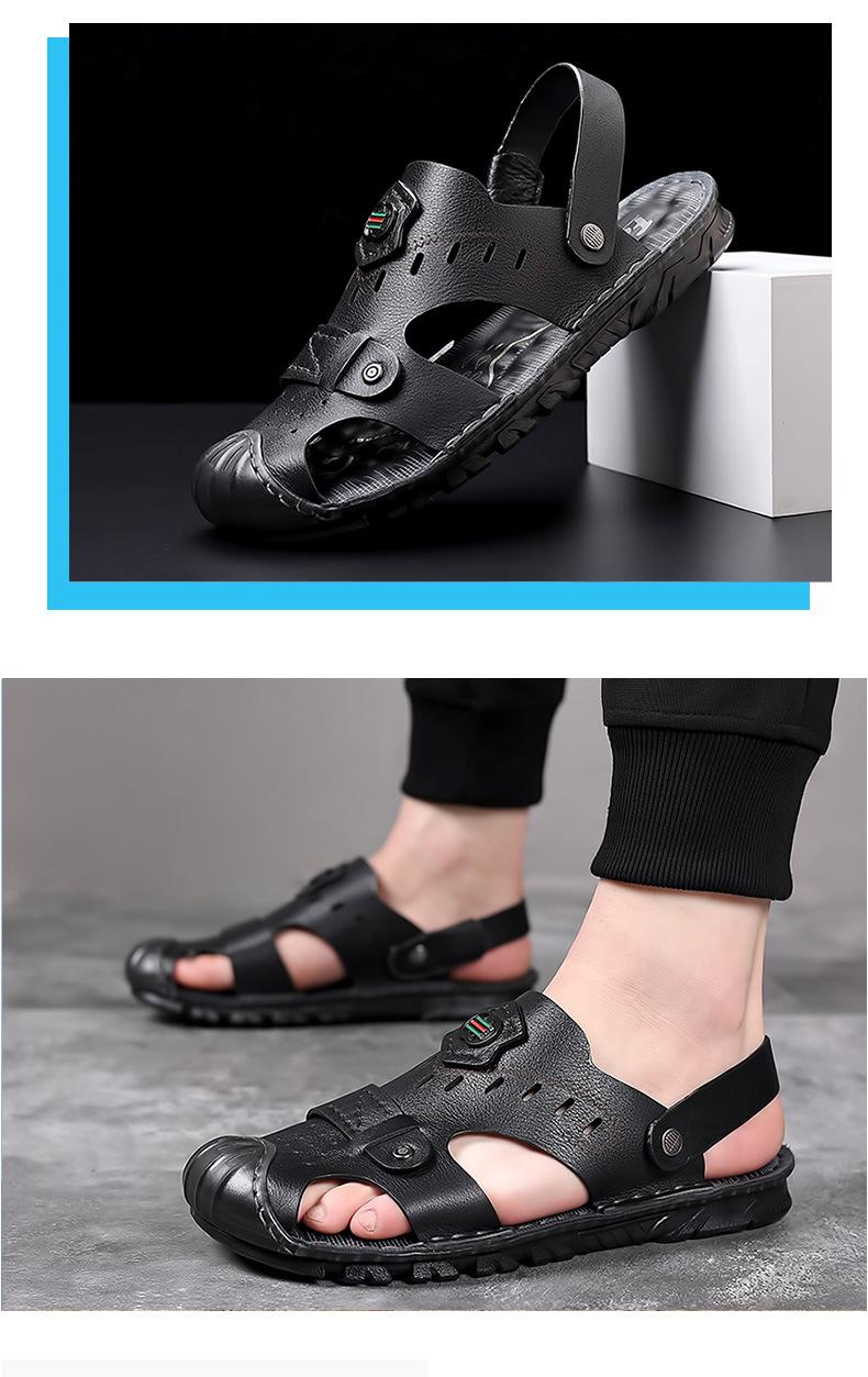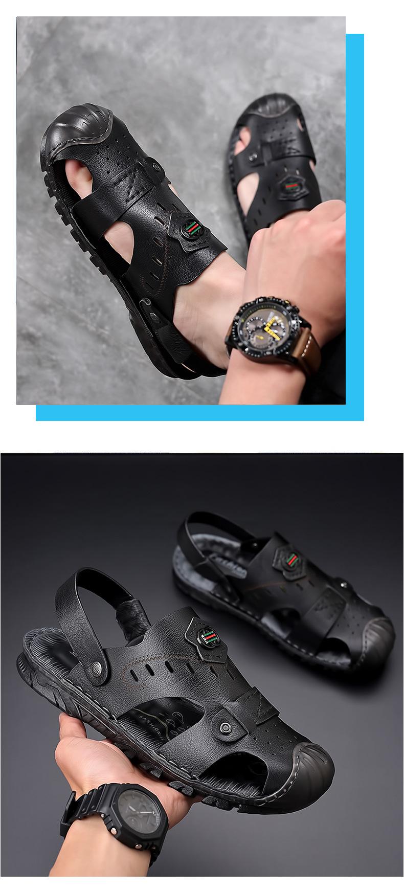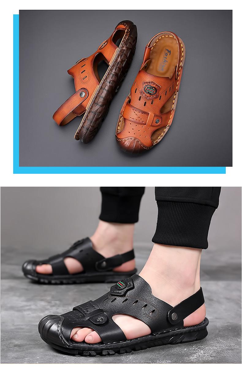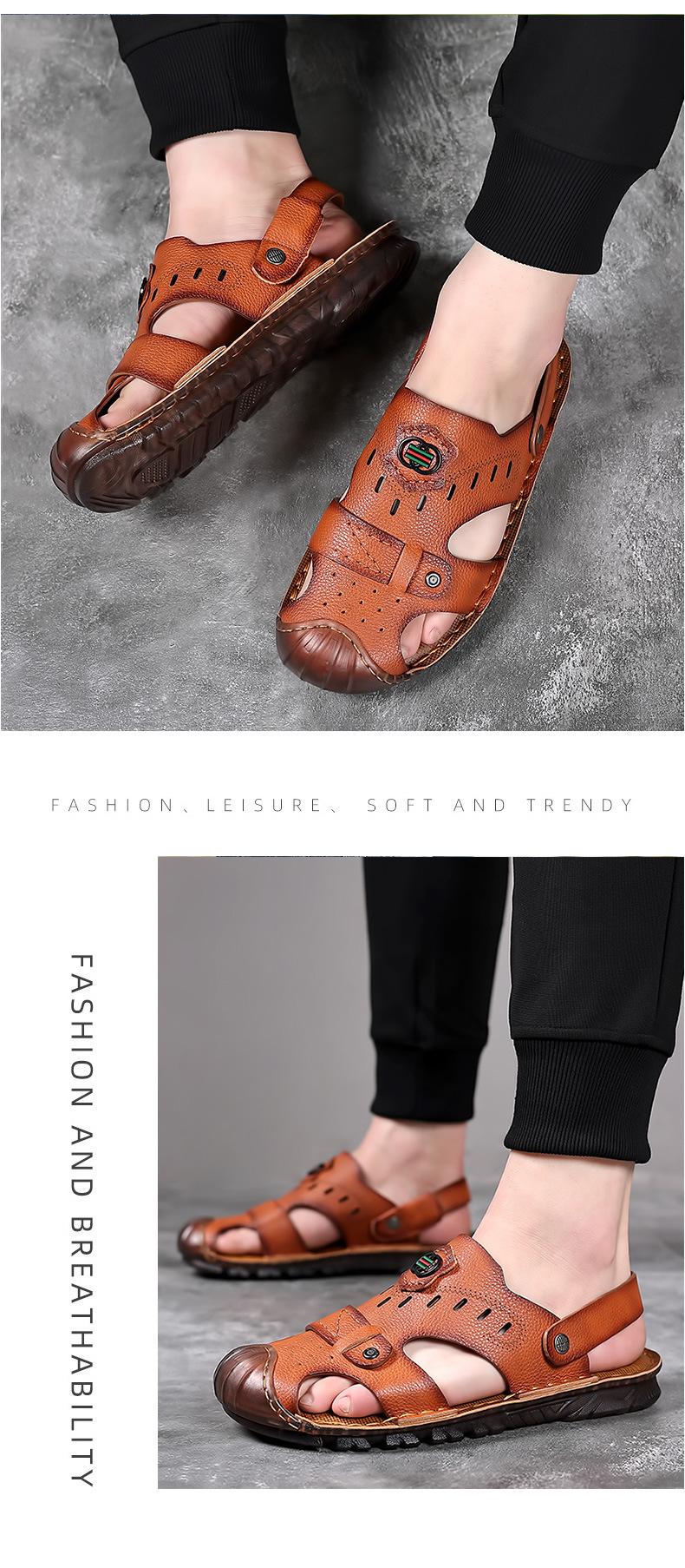 Sandalias de verano de piel auténtica con punta para hombre, ropa de calle, zapatos de playa informales de moda, antideslizantes, hechos a mano, con suela blanda y de doble uso.