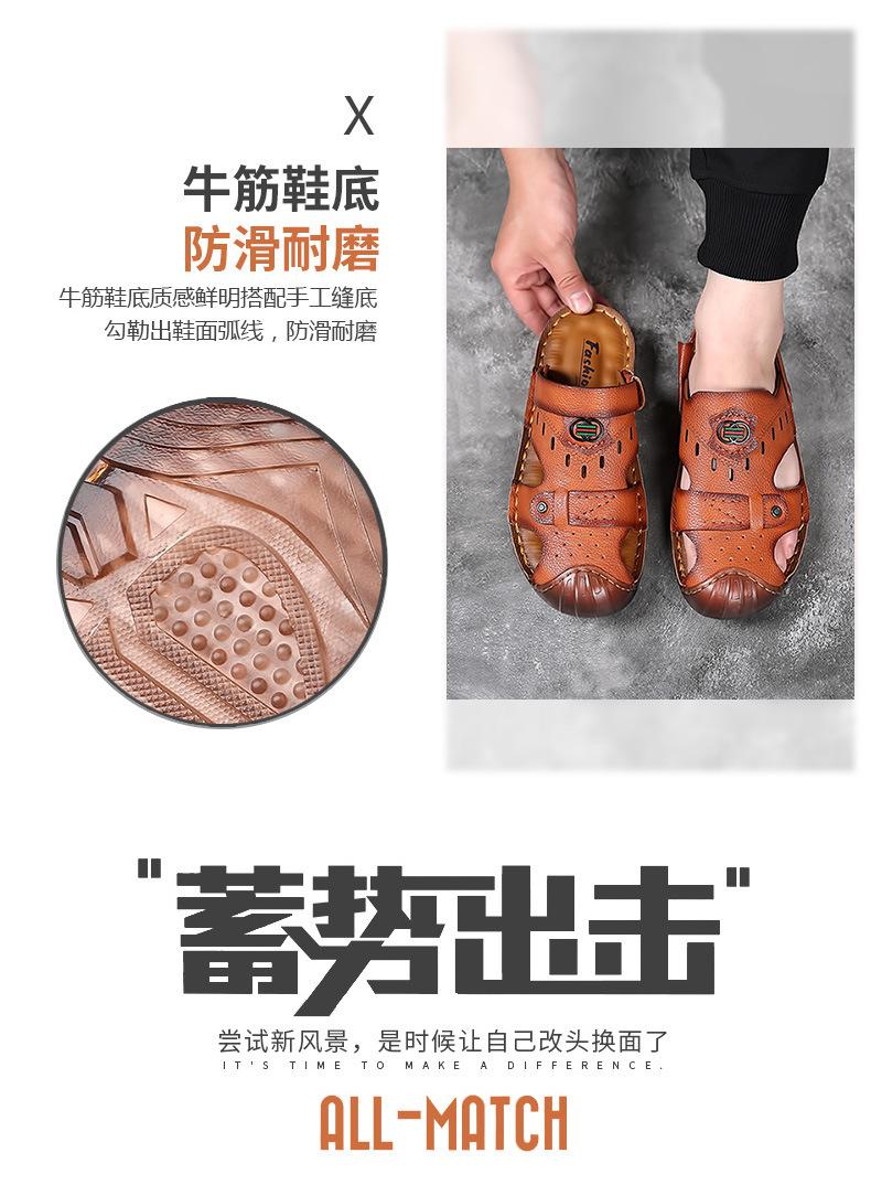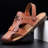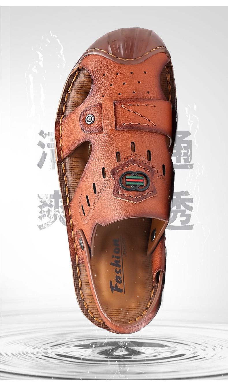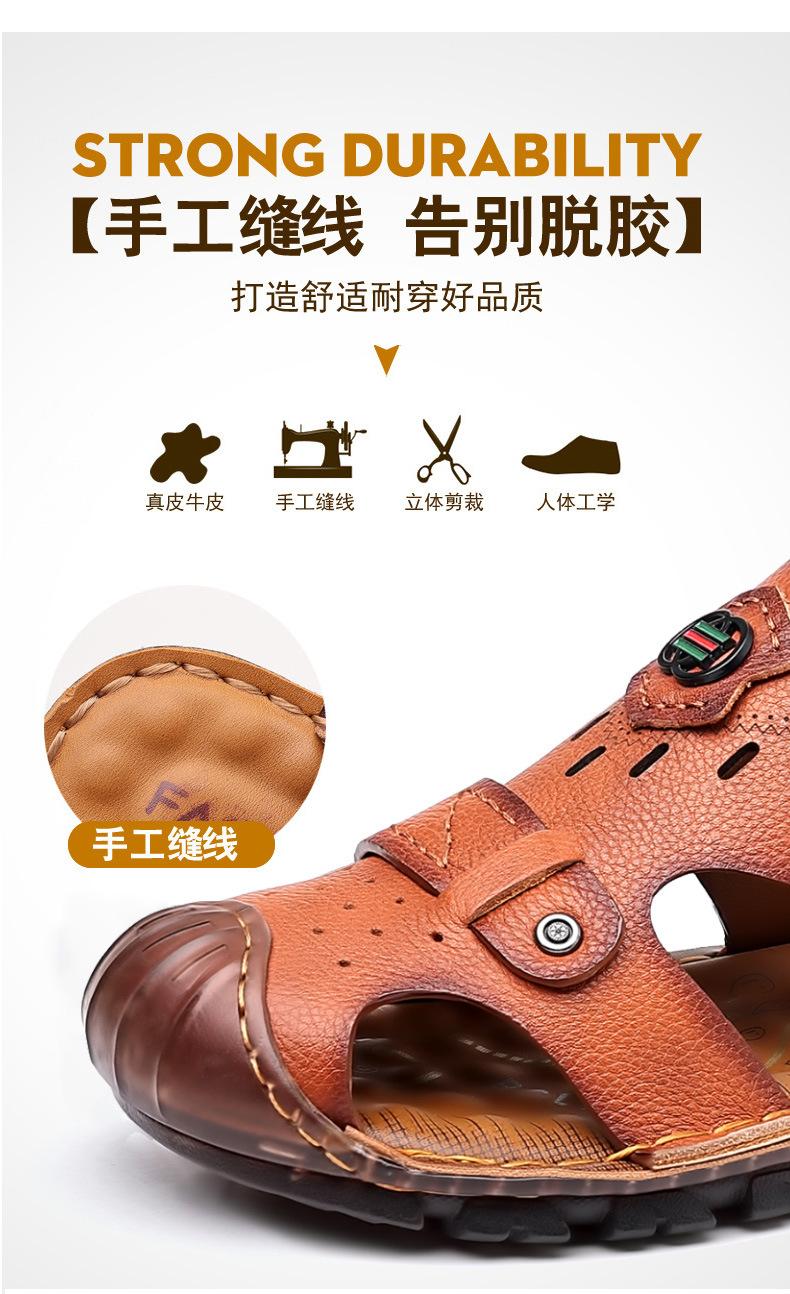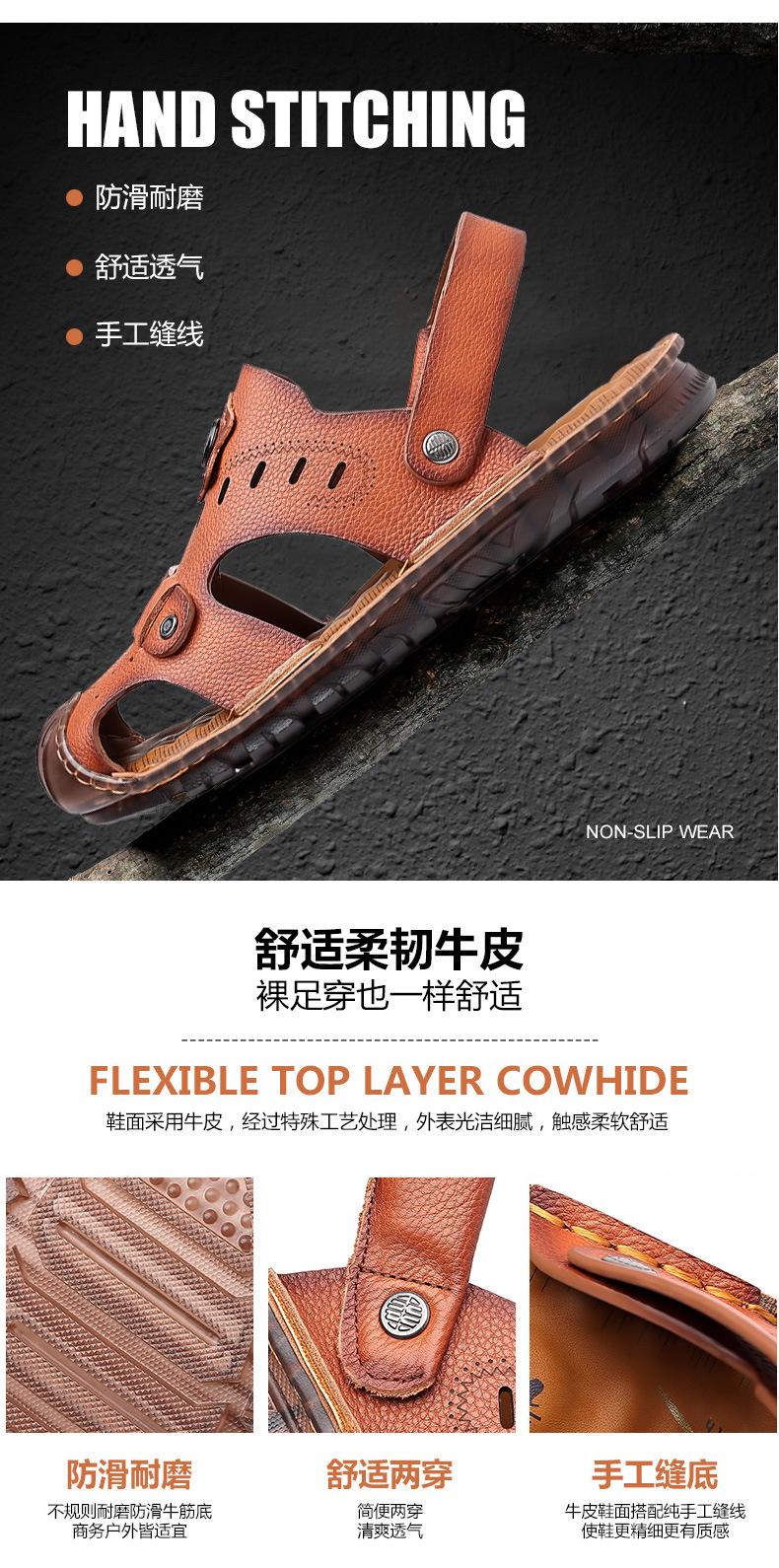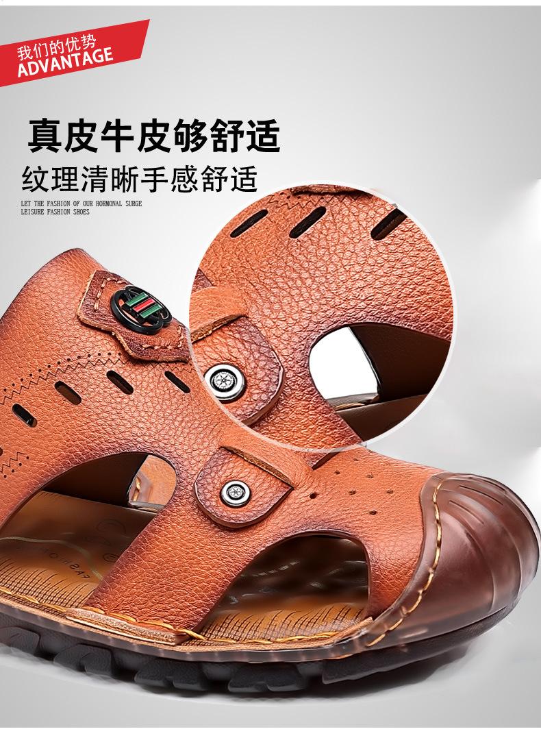 Sandalias de verano de piel auténtica con punta para hombre, ropa de calle, zapatos de playa informales de moda, antideslizantes, hechos a mano, con suela blanda y de doble uso.