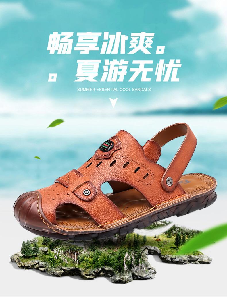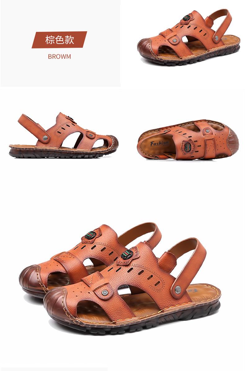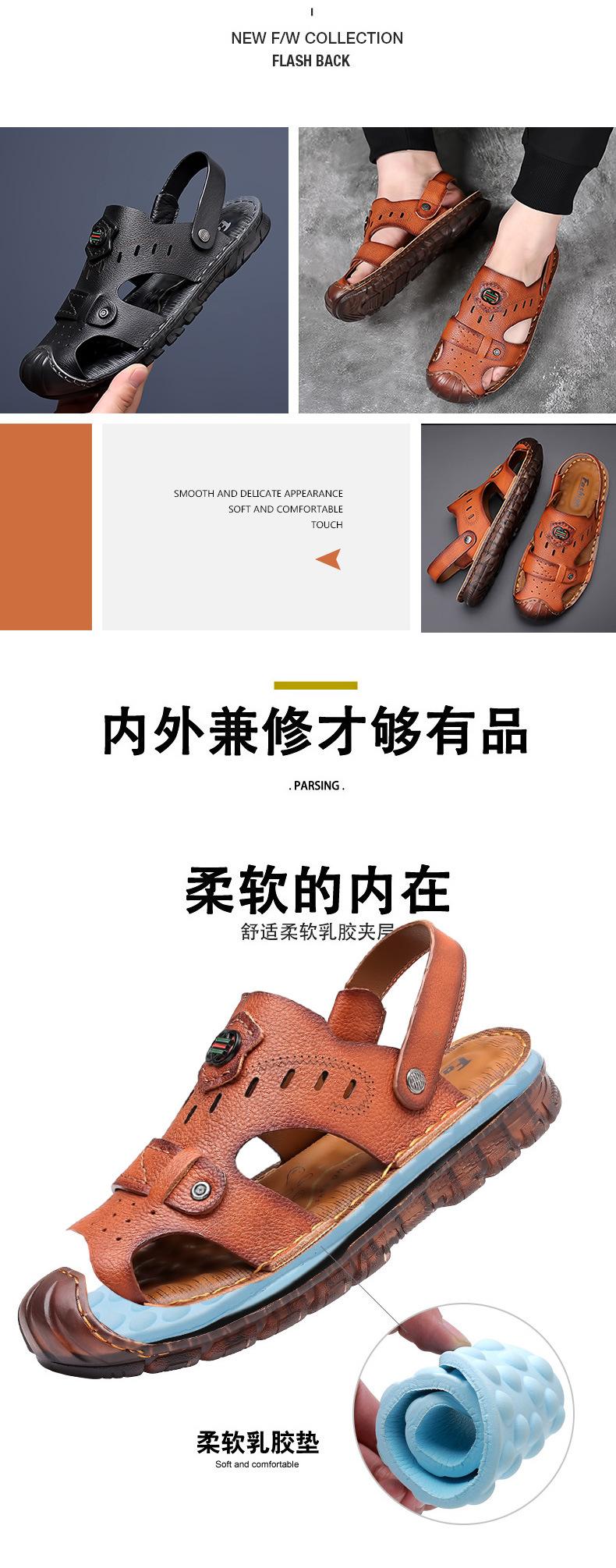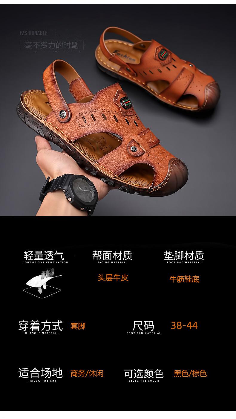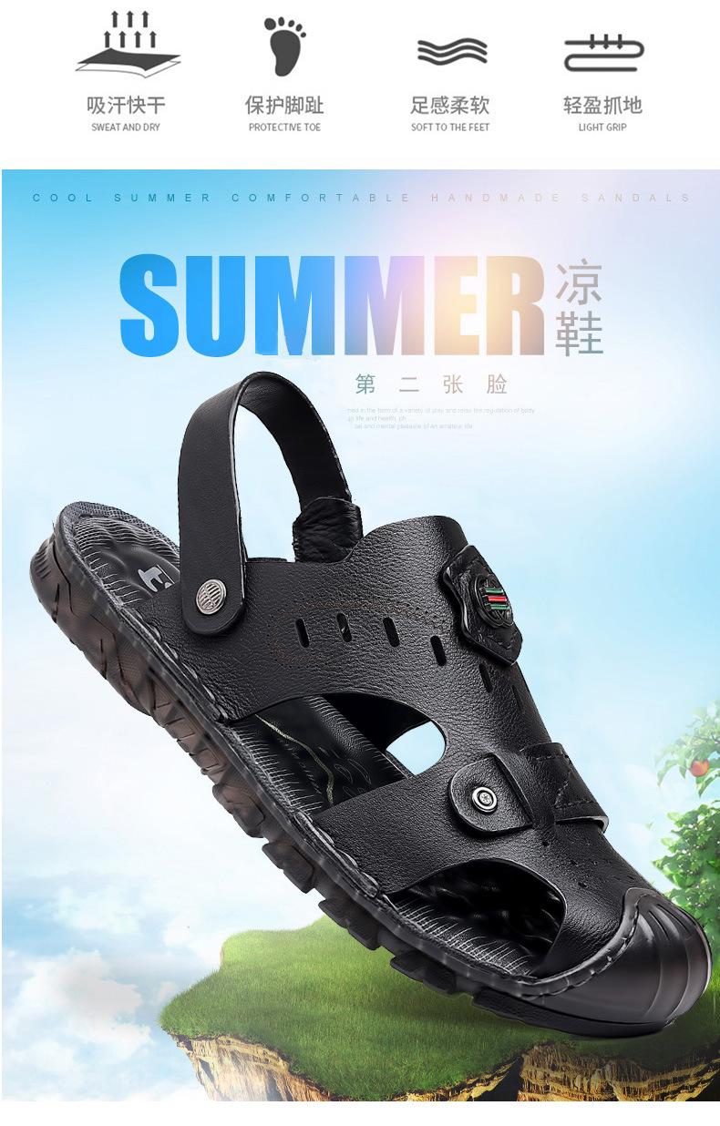 Sandalias de verano de piel auténtica con punta para hombre, ropa de calle, zapatos de playa informales de moda, antideslizantes, hechos a mano, con suela blanda y de doble uso.