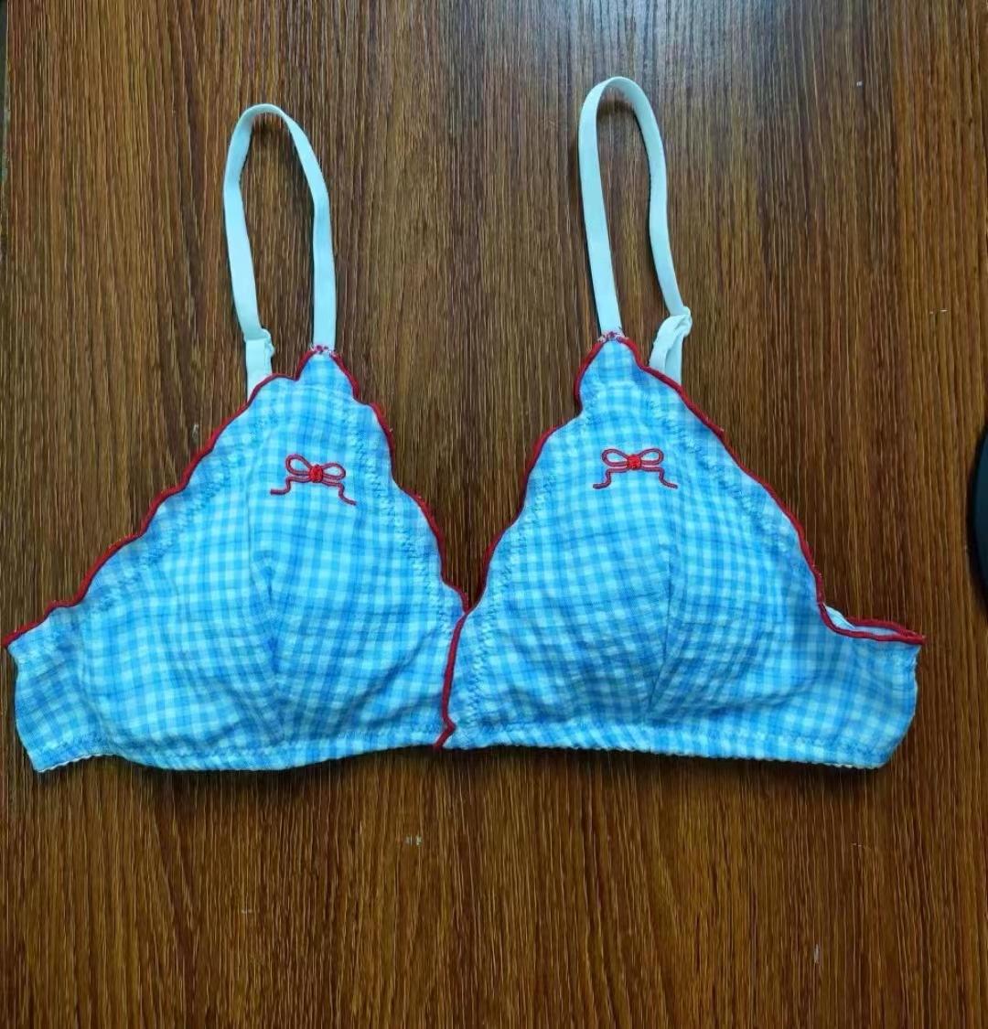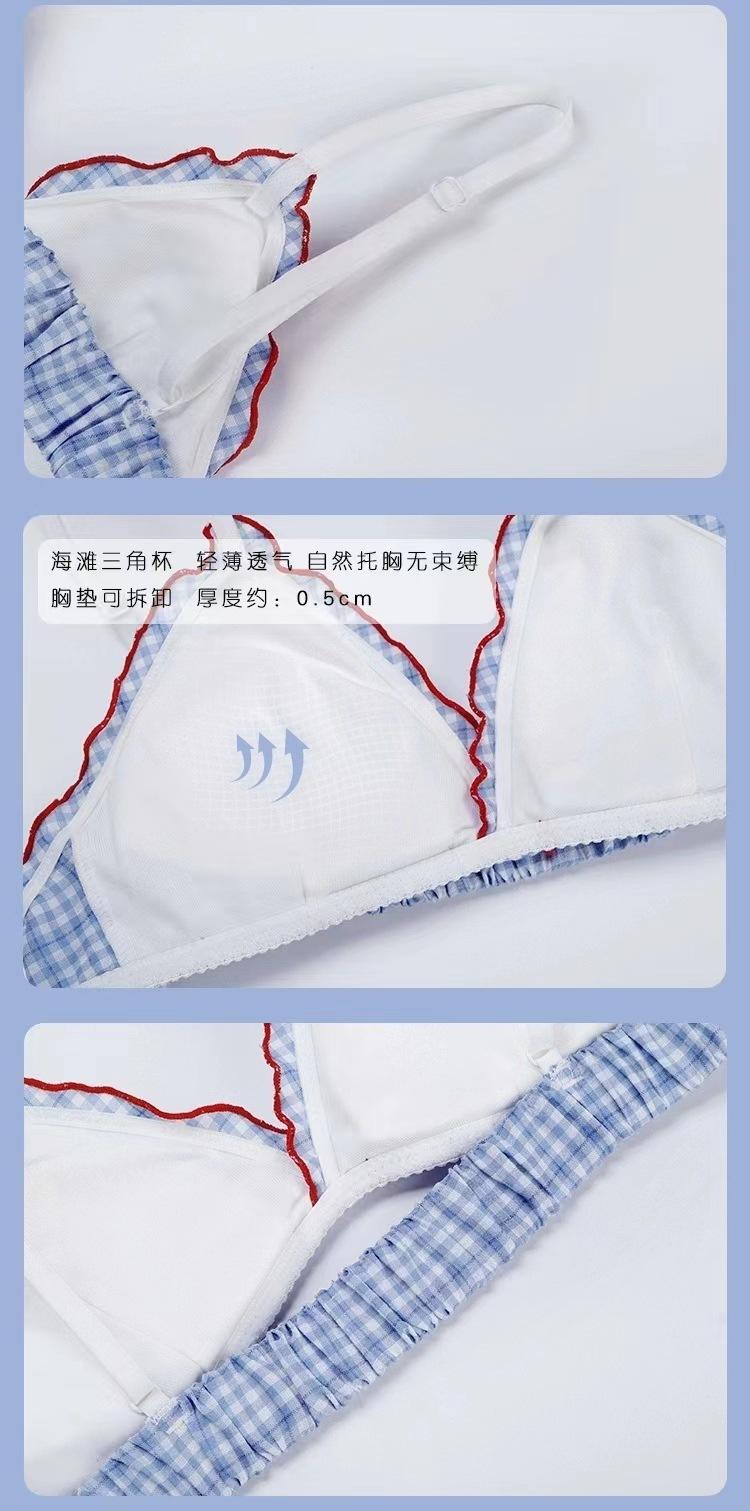 Sujetador de copa triangular sexy de color sólido francés sin aro de acero cómodo con tirantes finos para el hombro y hebilla delantera.