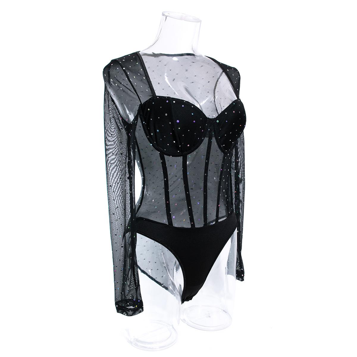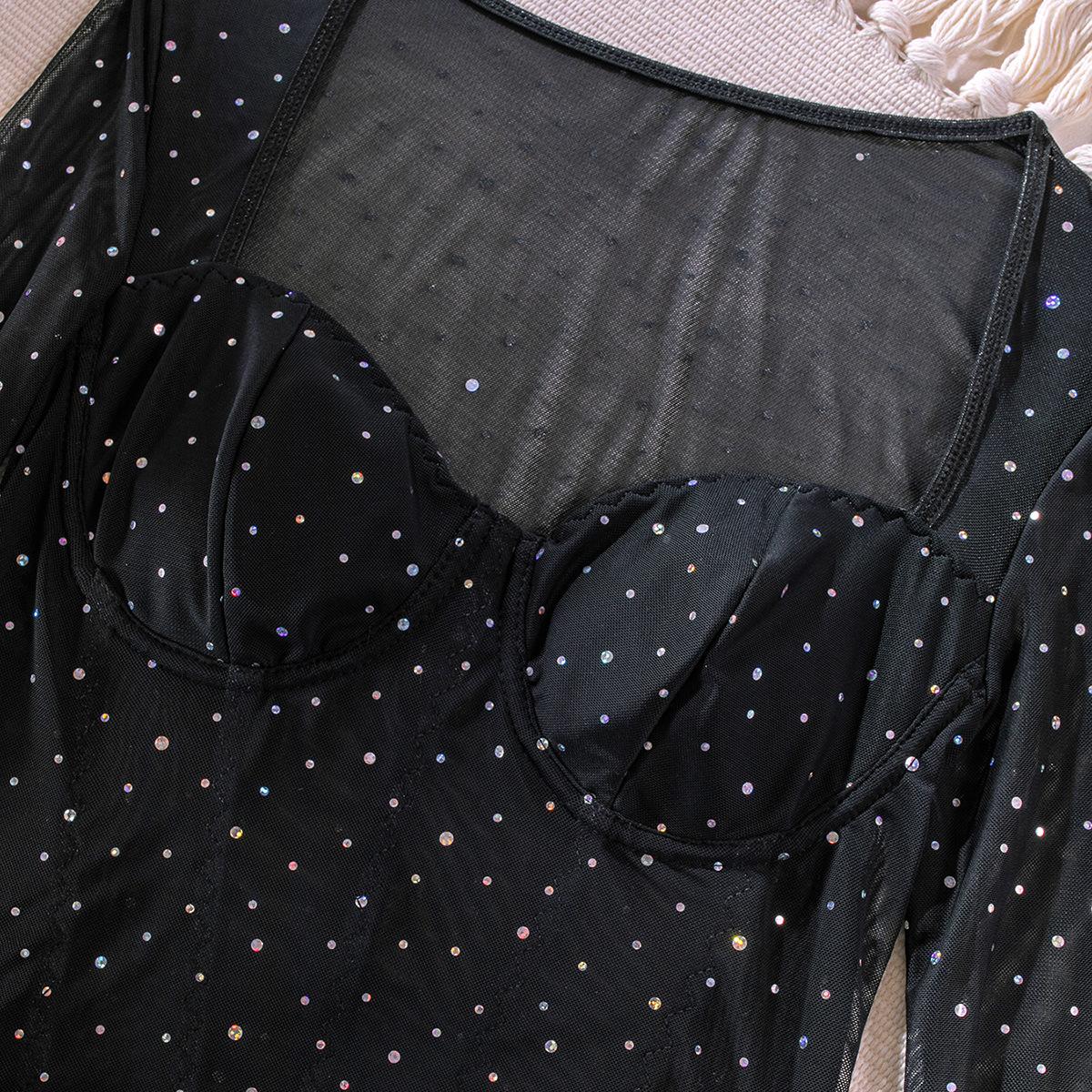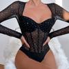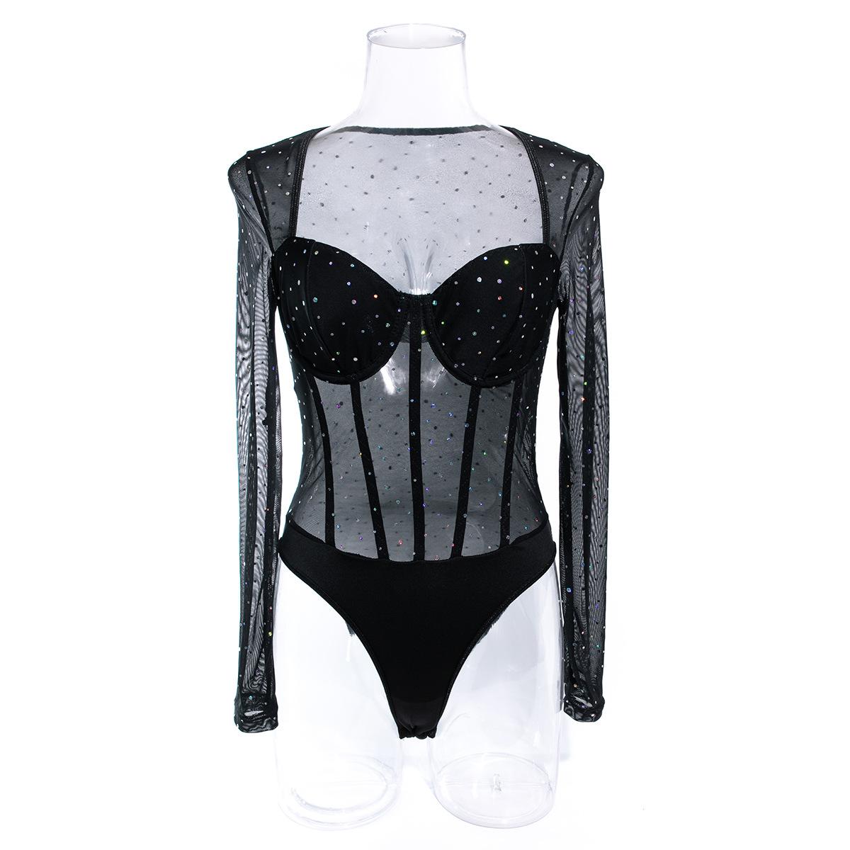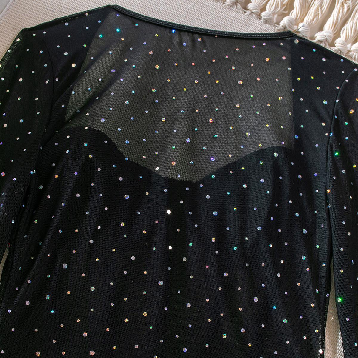 Mono transpirable fino de malla de manga larga de primavera y otoño con anillo de acero y lentejuelas de calle europea y americana transfronterizas