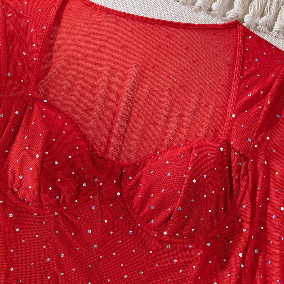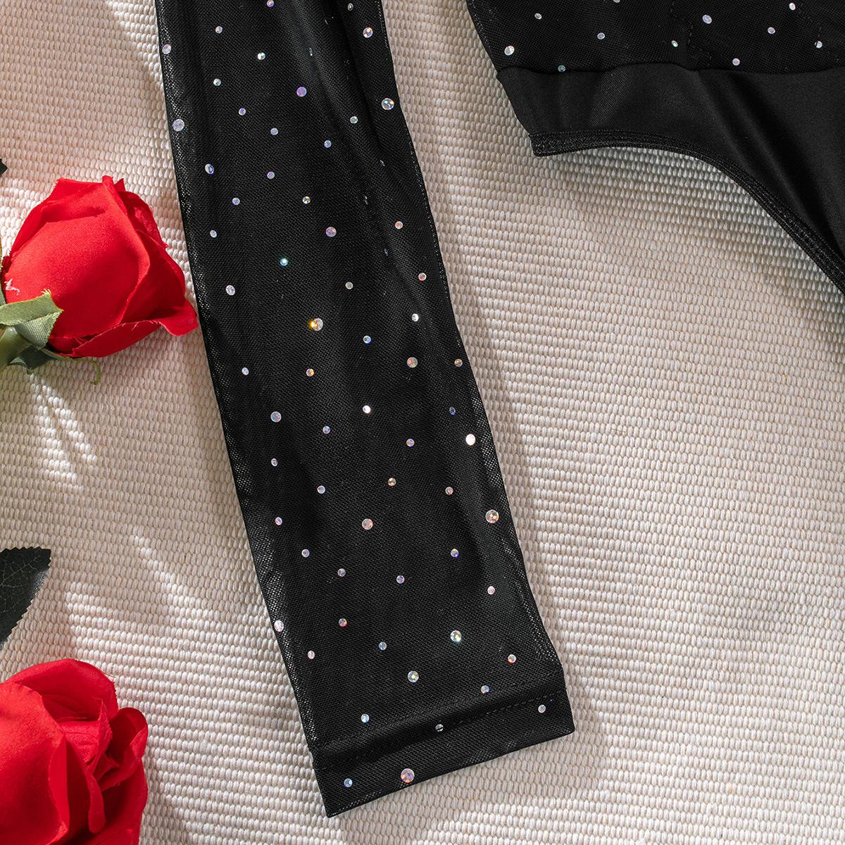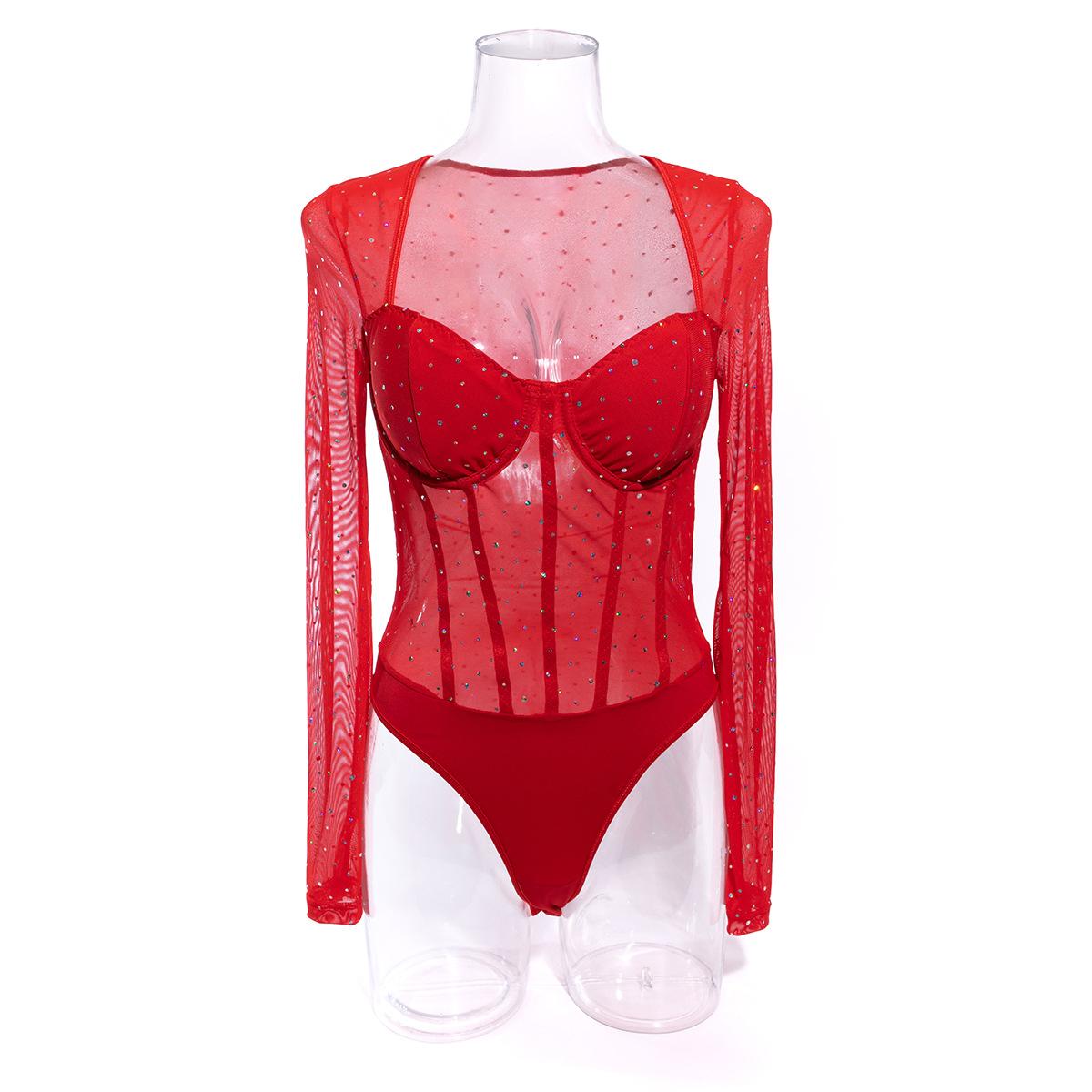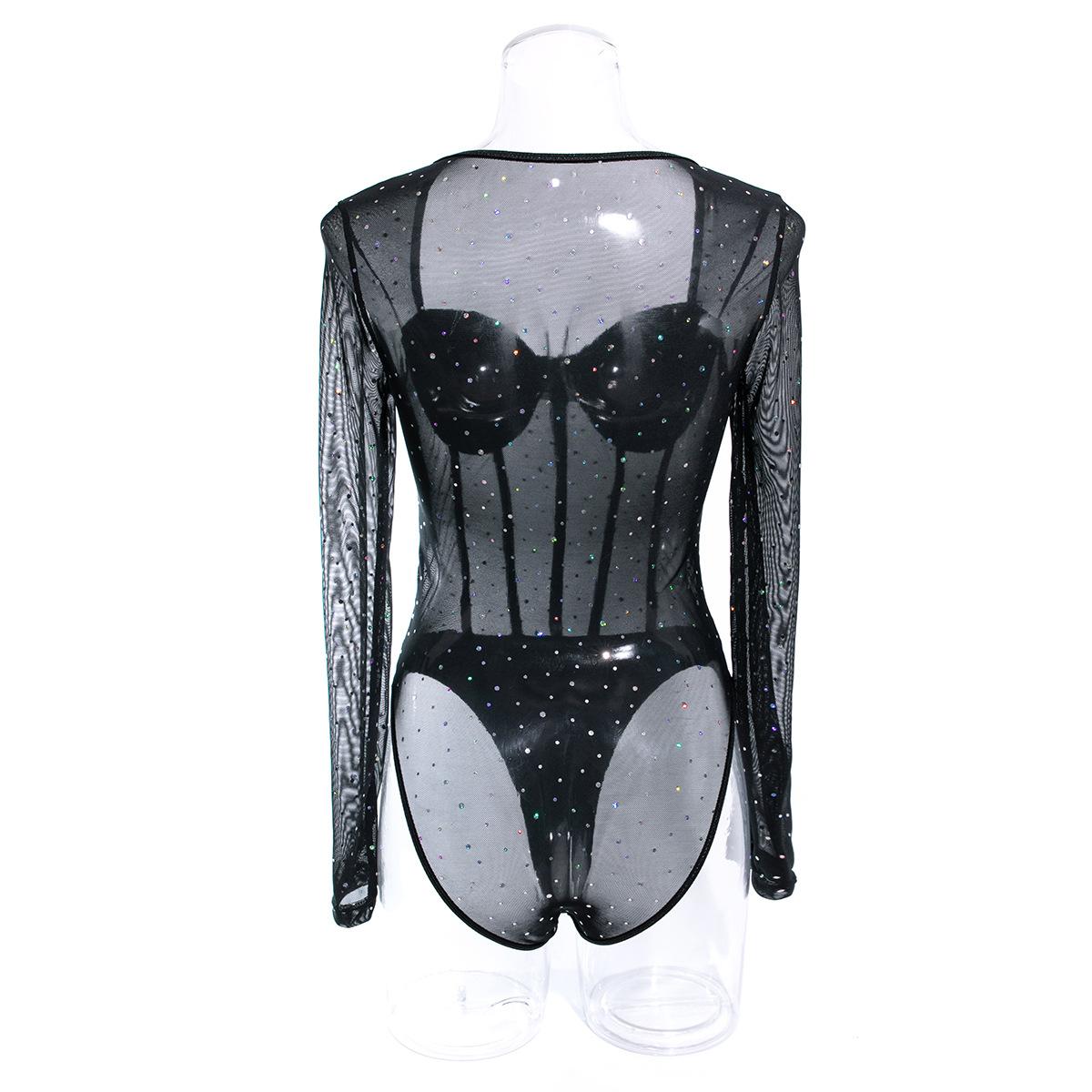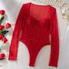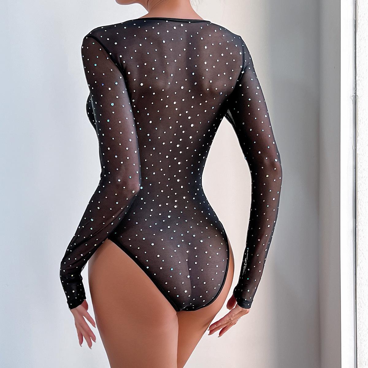 Mono transpirable fino de malla de manga larga de primavera y otoño con anillo de acero y lentejuelas de calle europea y americana transfronterizas