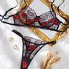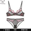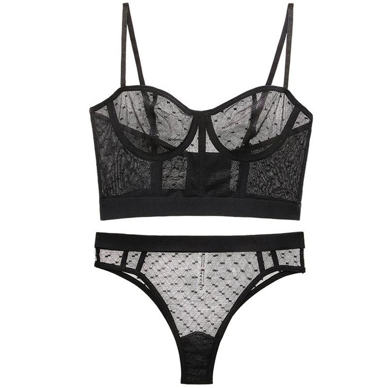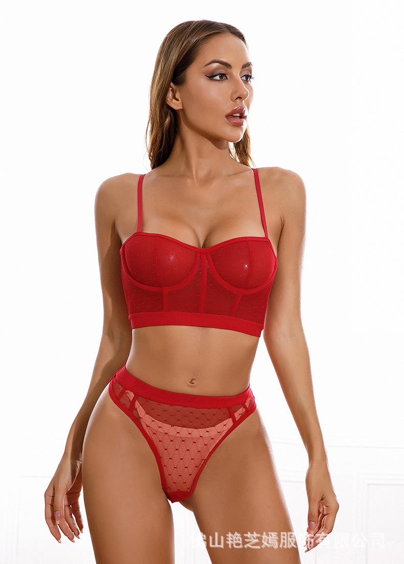 Conjunto de sujetador y pantalones tipo camiseta para mujer, ropa interior, chaleco, con encaje sexy, perspectiva ultrafina, tentación, de malla, transfronterizo, europeo y americano
