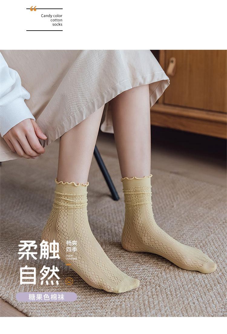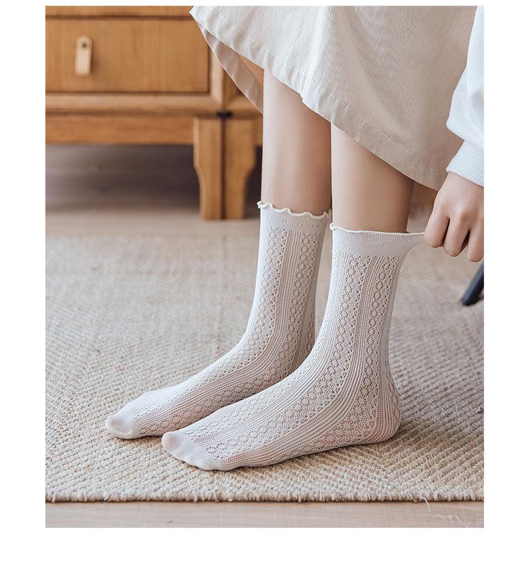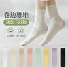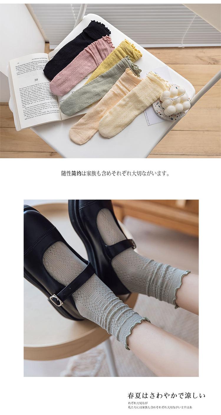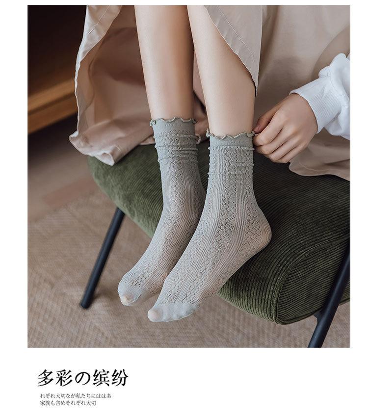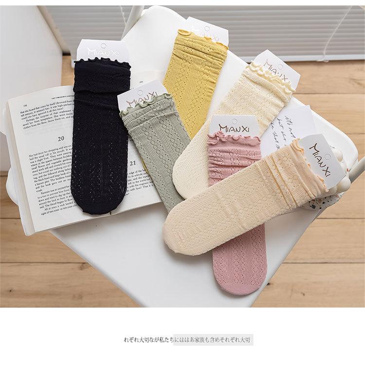 Calcetines de verano apilados, medias de hielo, calcetines finos de encaje rizado apilados, calcetines japoneses de color sólido de primavera y verano, transpirables