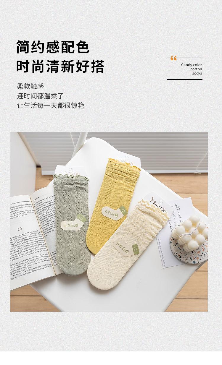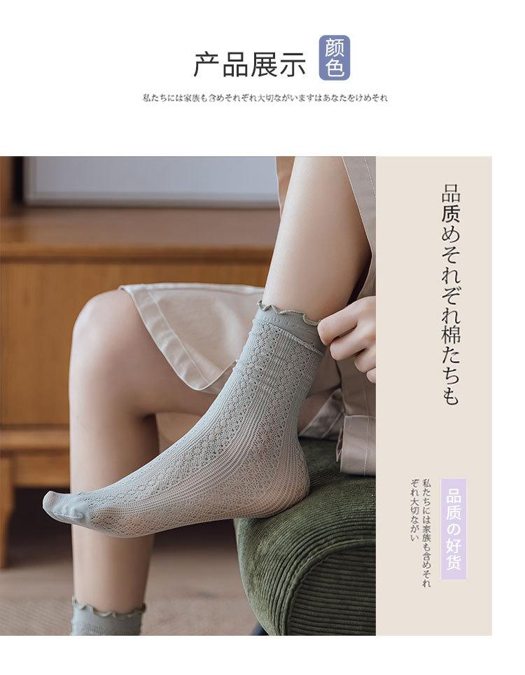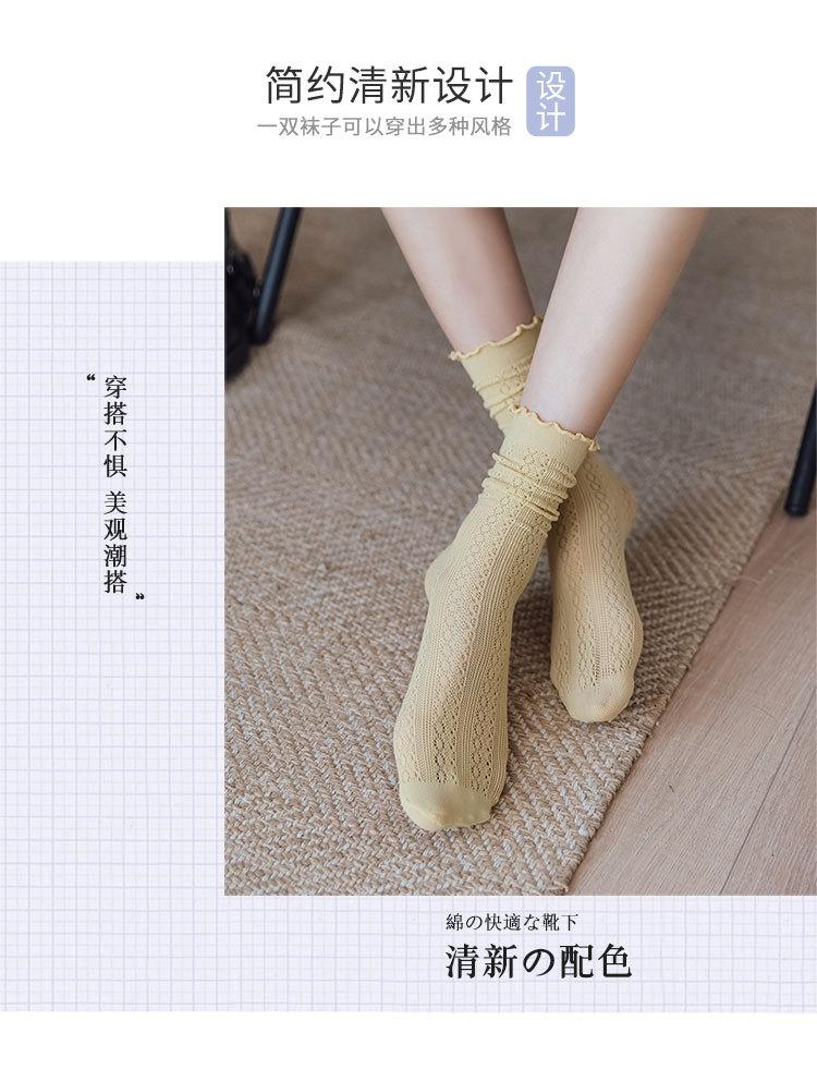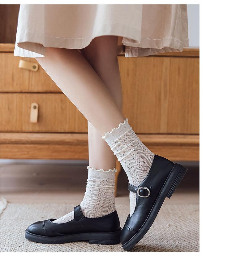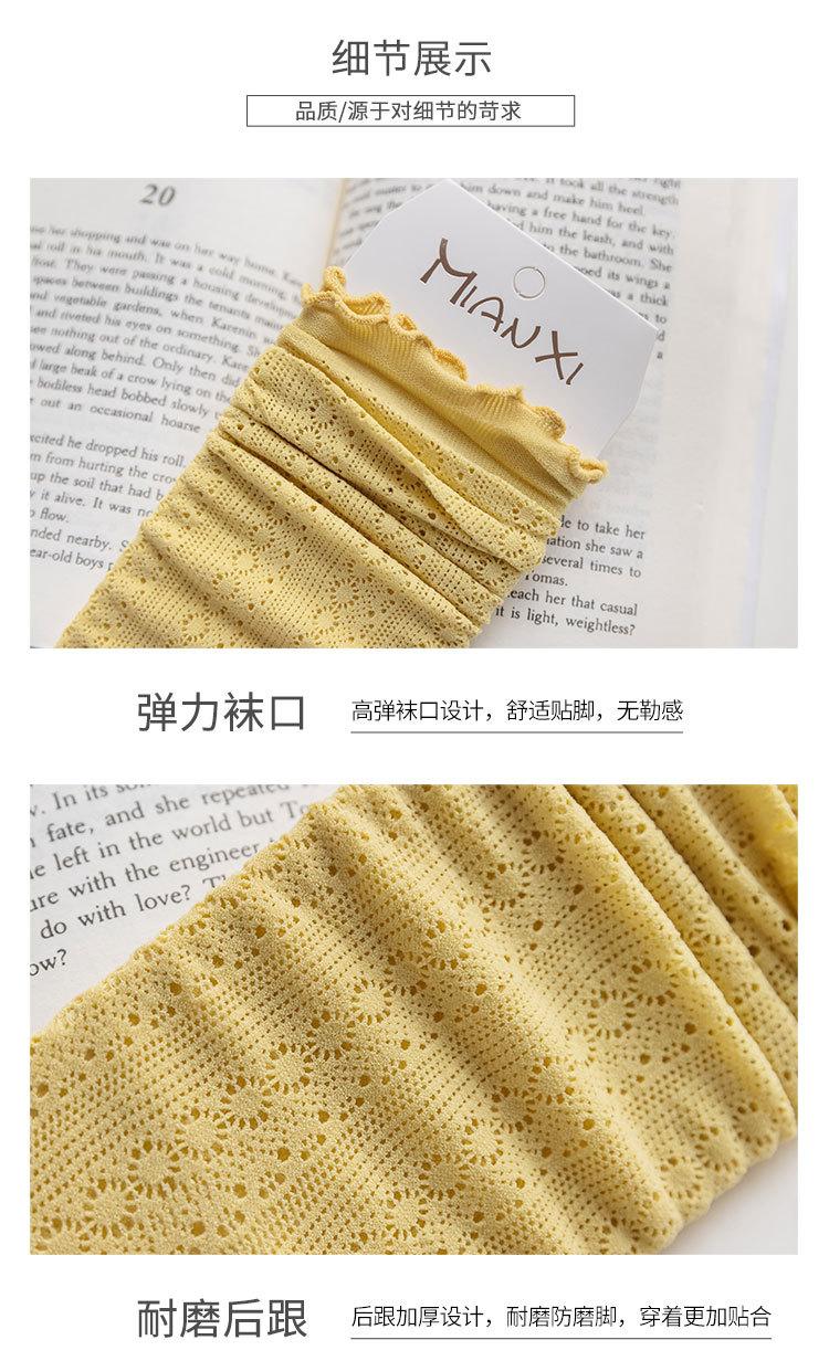 Calcetines de verano apilados, medias de hielo, calcetines finos de encaje rizado apilados, calcetines japoneses de color sólido de primavera y verano, transpirables