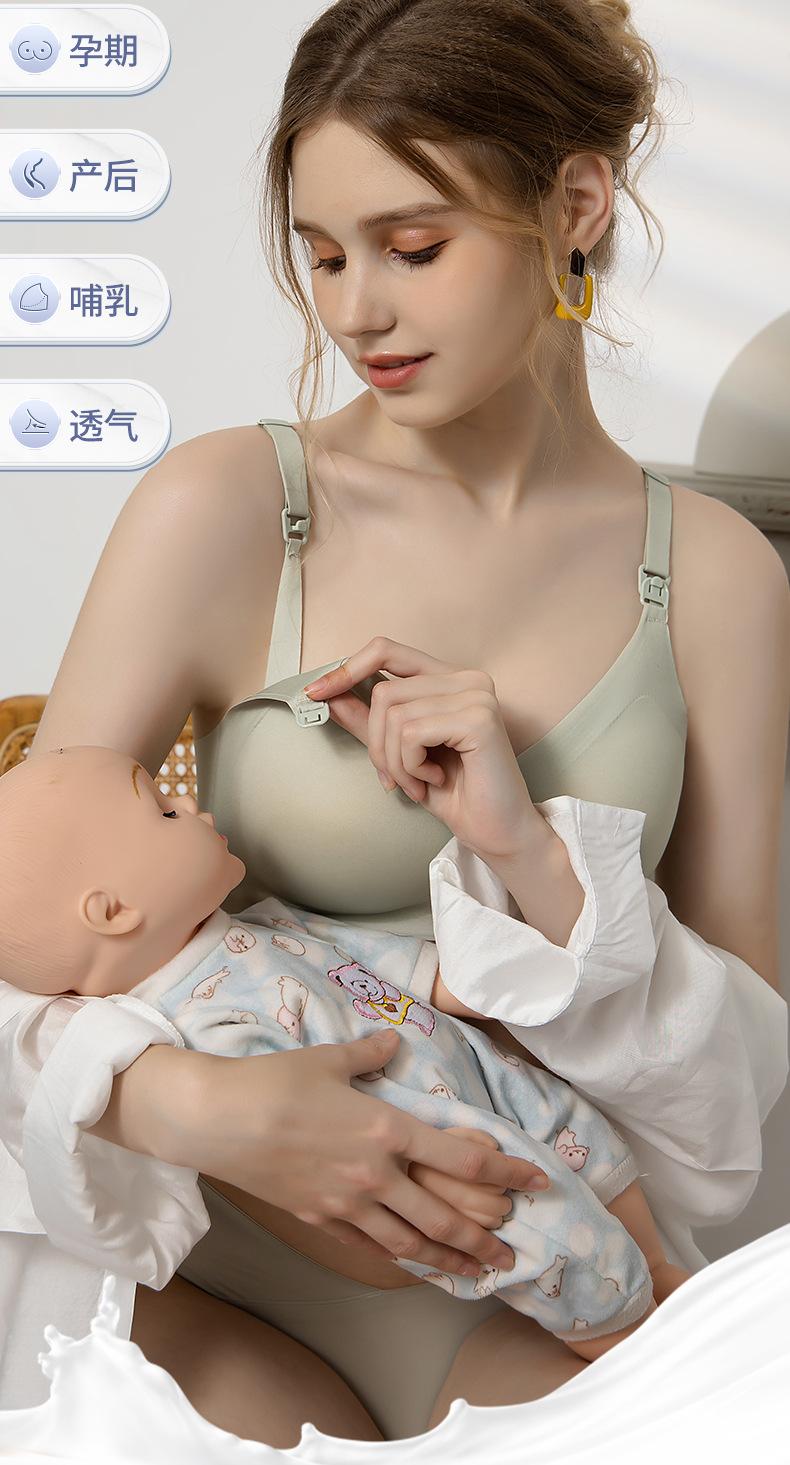 Sujetador de lactancia materna con copa fina y fija, antiflacidez y fruncido, cómodo durante el embarazo.