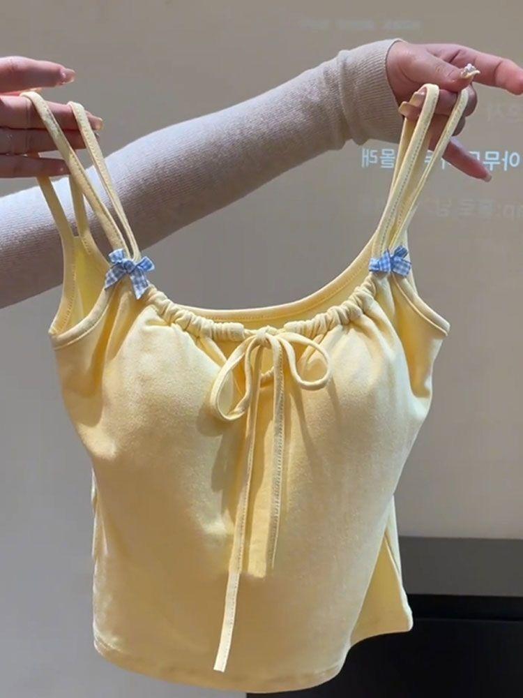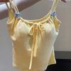 Camisola Amarilla Cremosa Estilo Dulce Picante Puro ISN para Mujer Nueva Llegada Top Reductor de Edad Decorativo con Lazo Ambiente