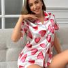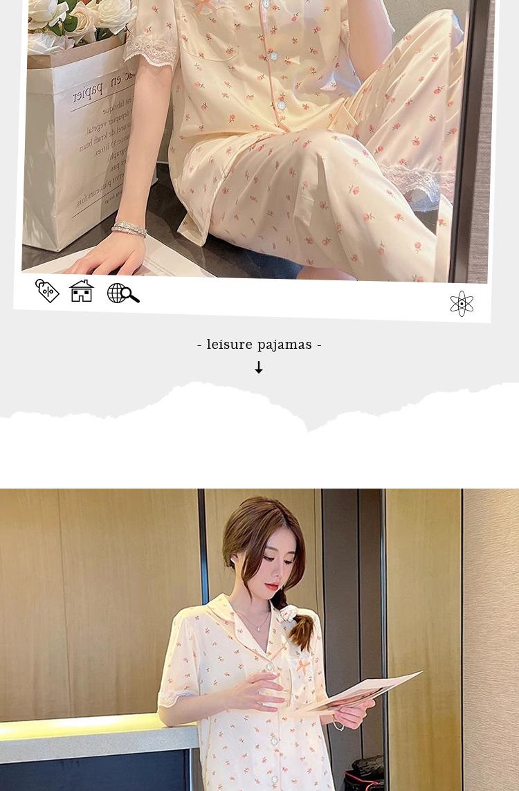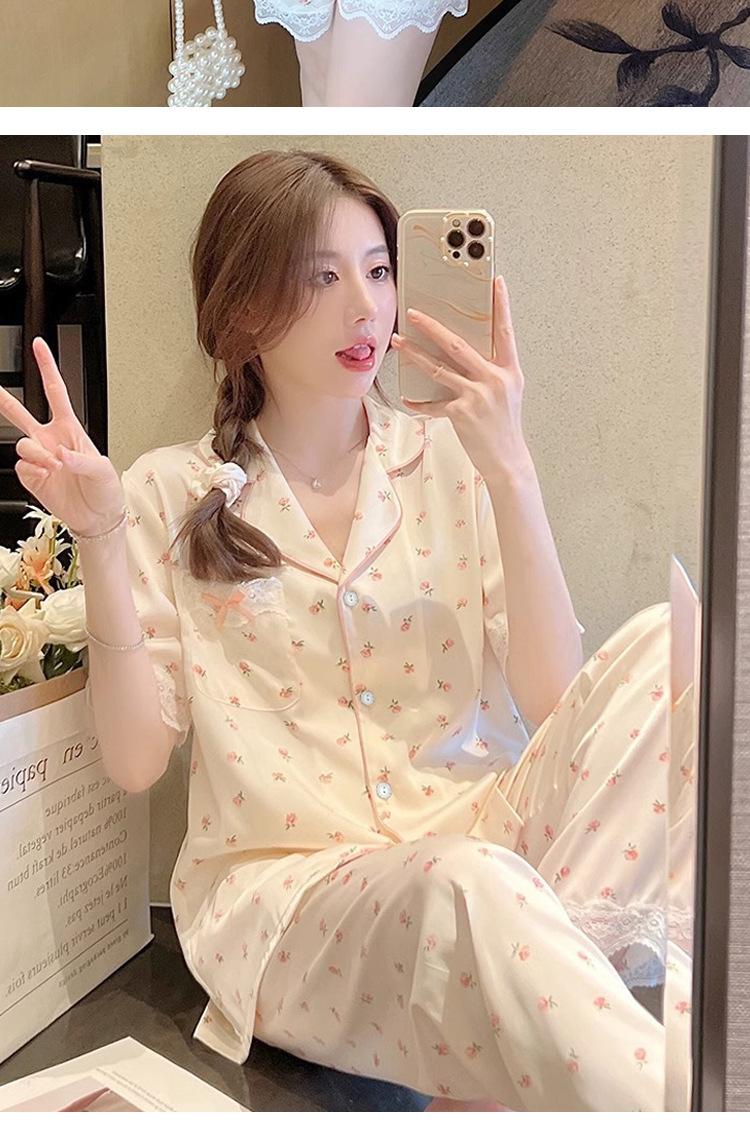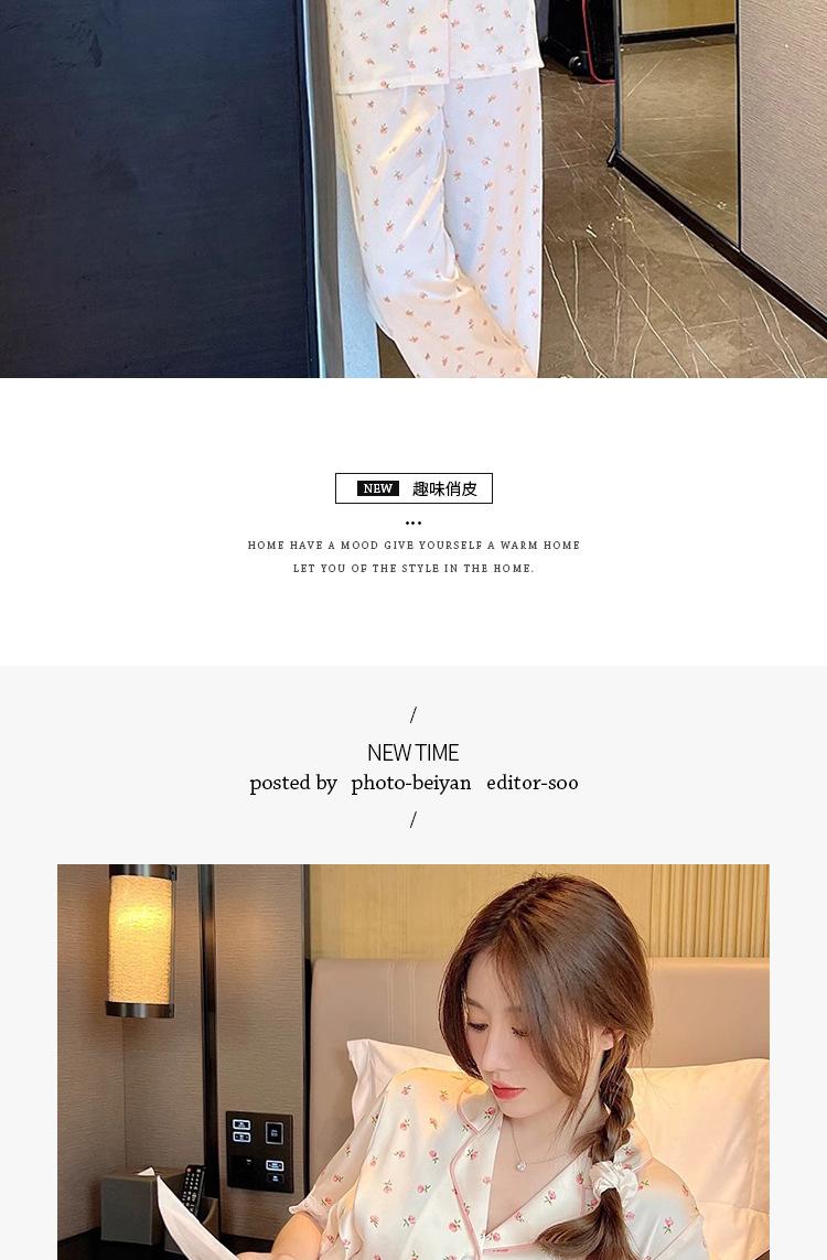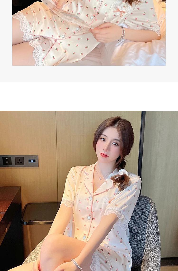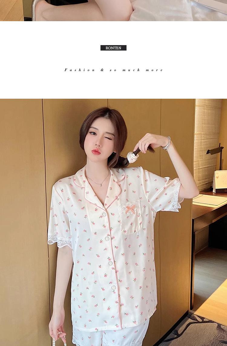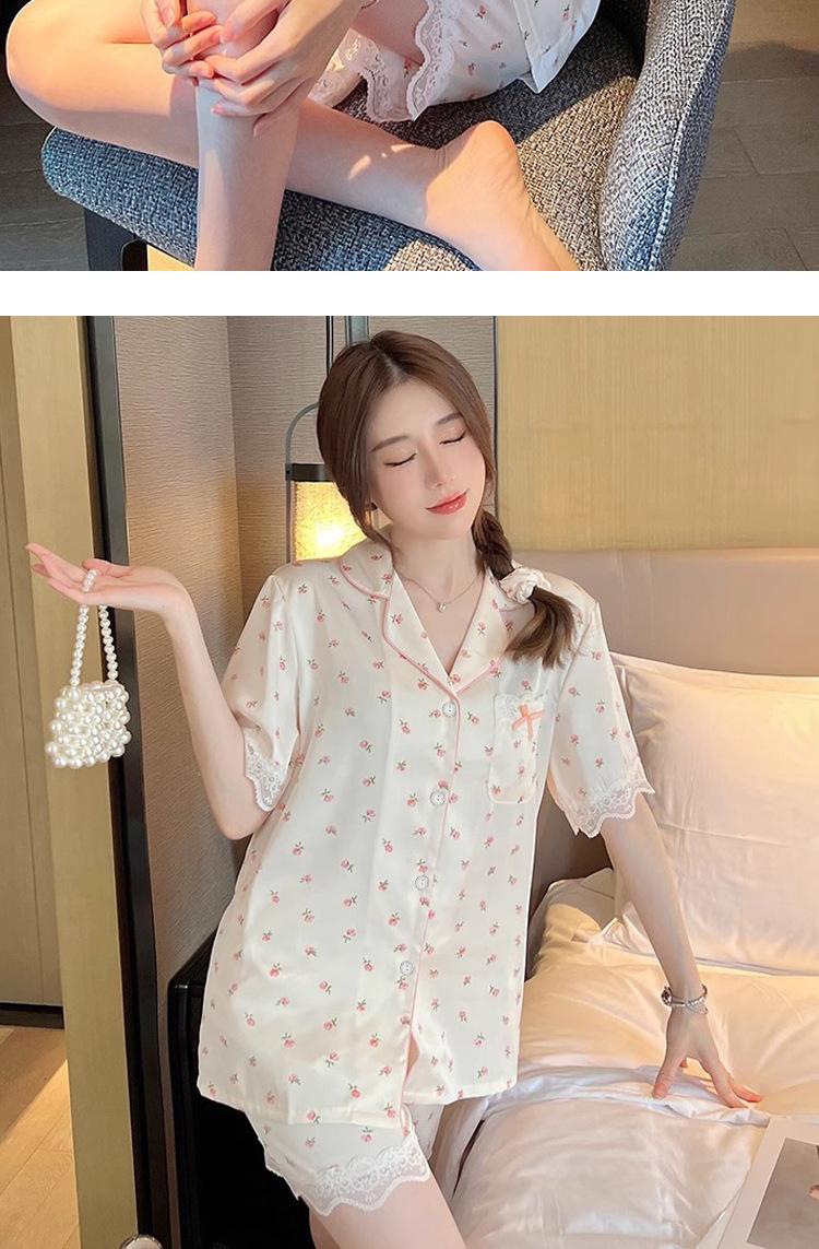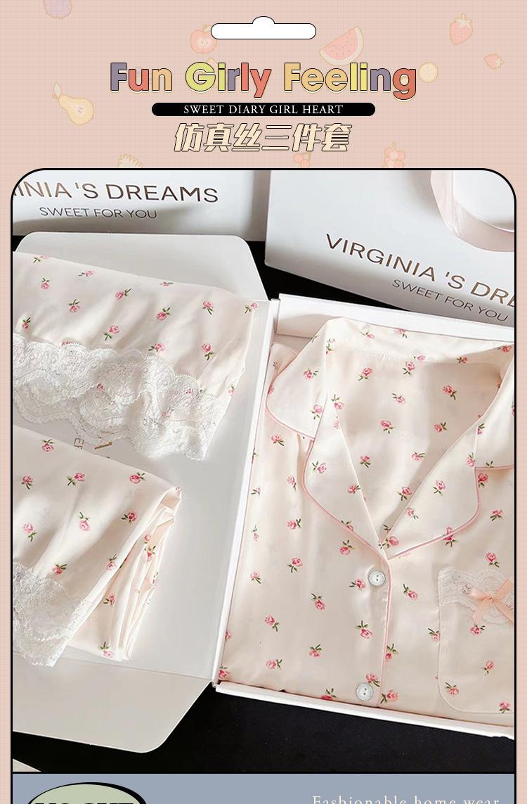 Pijama nuevo transfronterizo floral de seda de hielo para mujer, conjunto de tres piezas de manga corta para verano, fino, dulce, para el hogar, venta al por mayor