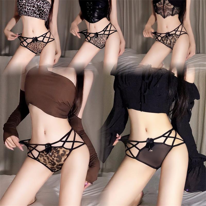 Nuevas Braguitas Campana de Malla con Estampado de Leopardo para Mujer, Transpirables y Cómodas con Tirantes Finos, Diseño Hueco Cruzado, Braguitas de Cintura Media de Alta Elasticidad para Mujer
