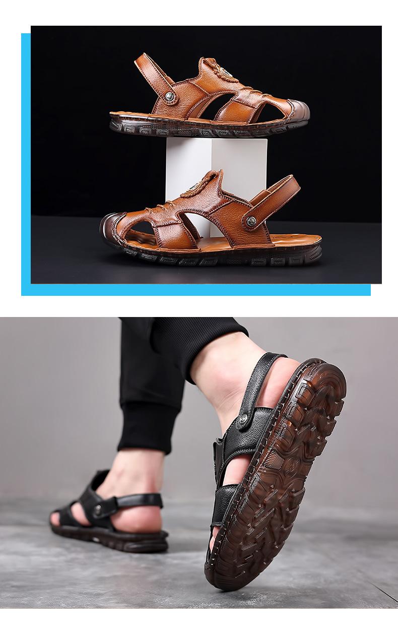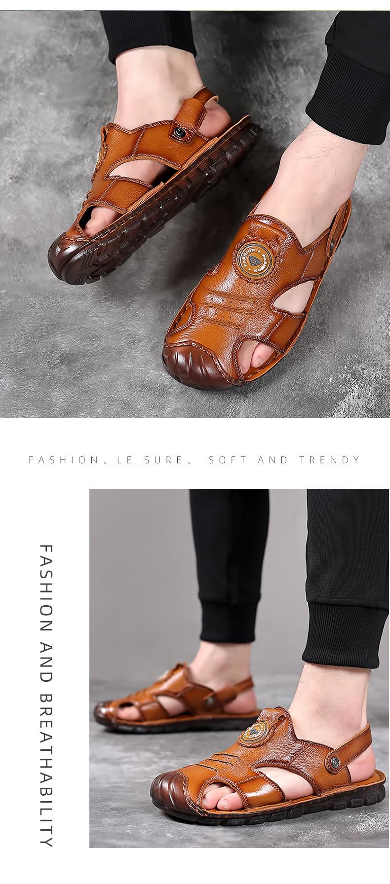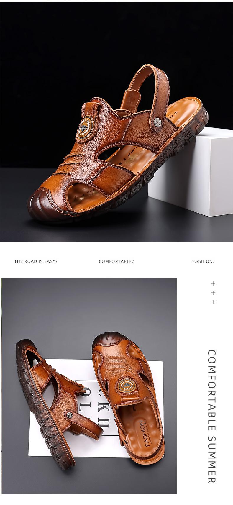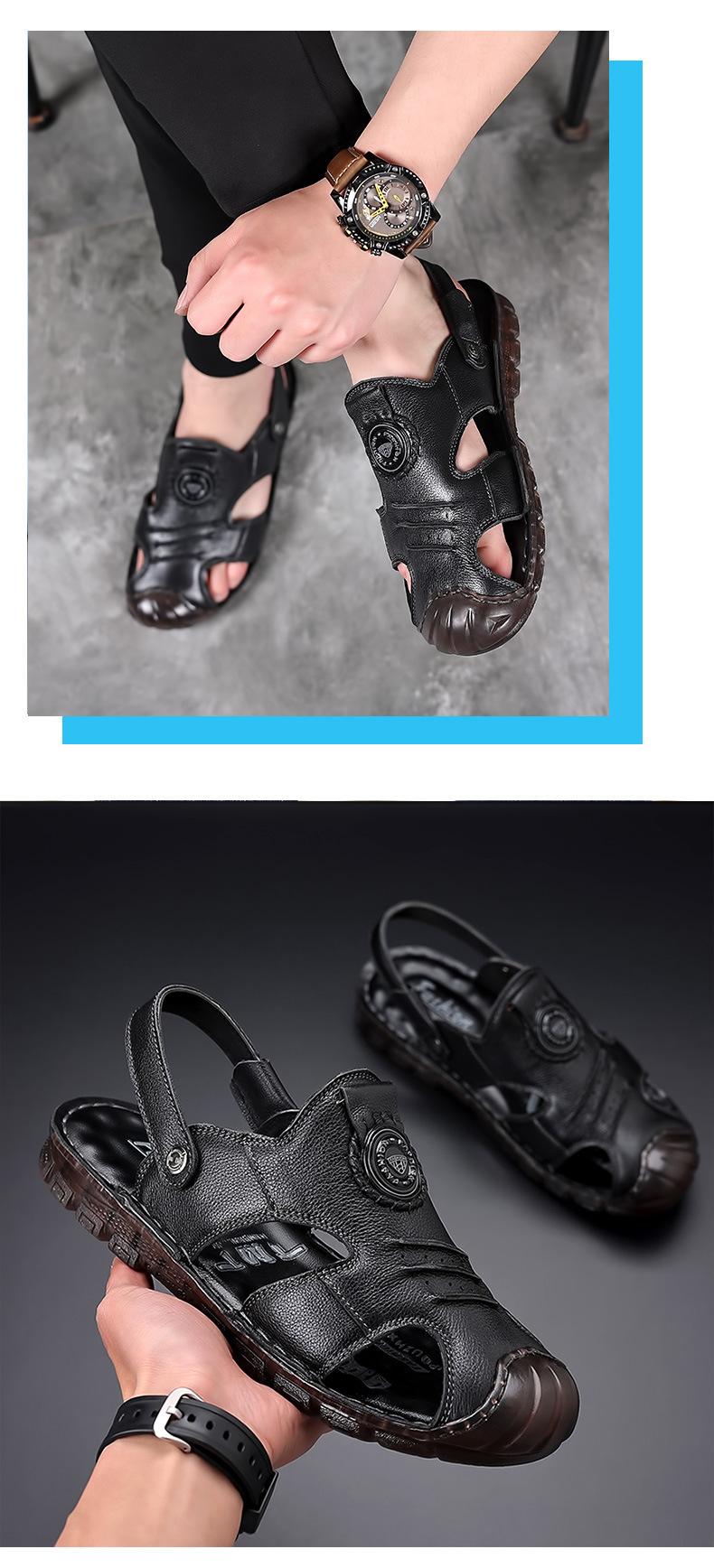 Sandalias de cuero para hombre, nuevas sandalias de verano de cuero genuino de doble propósito hechas a mano, sandalias de suela blanda antideslizantes para hombre, sandalias de moda
