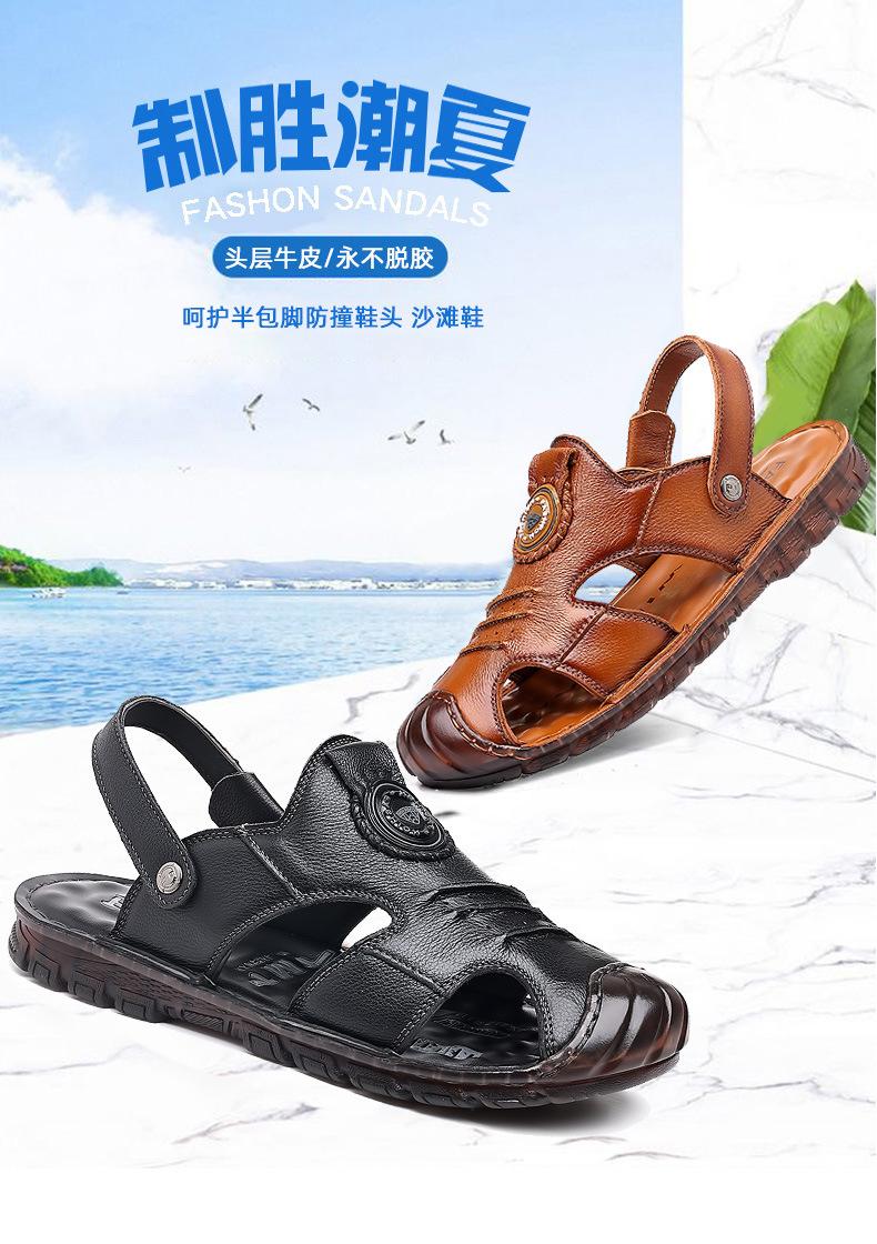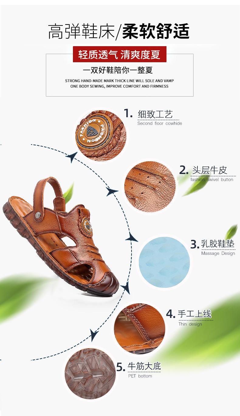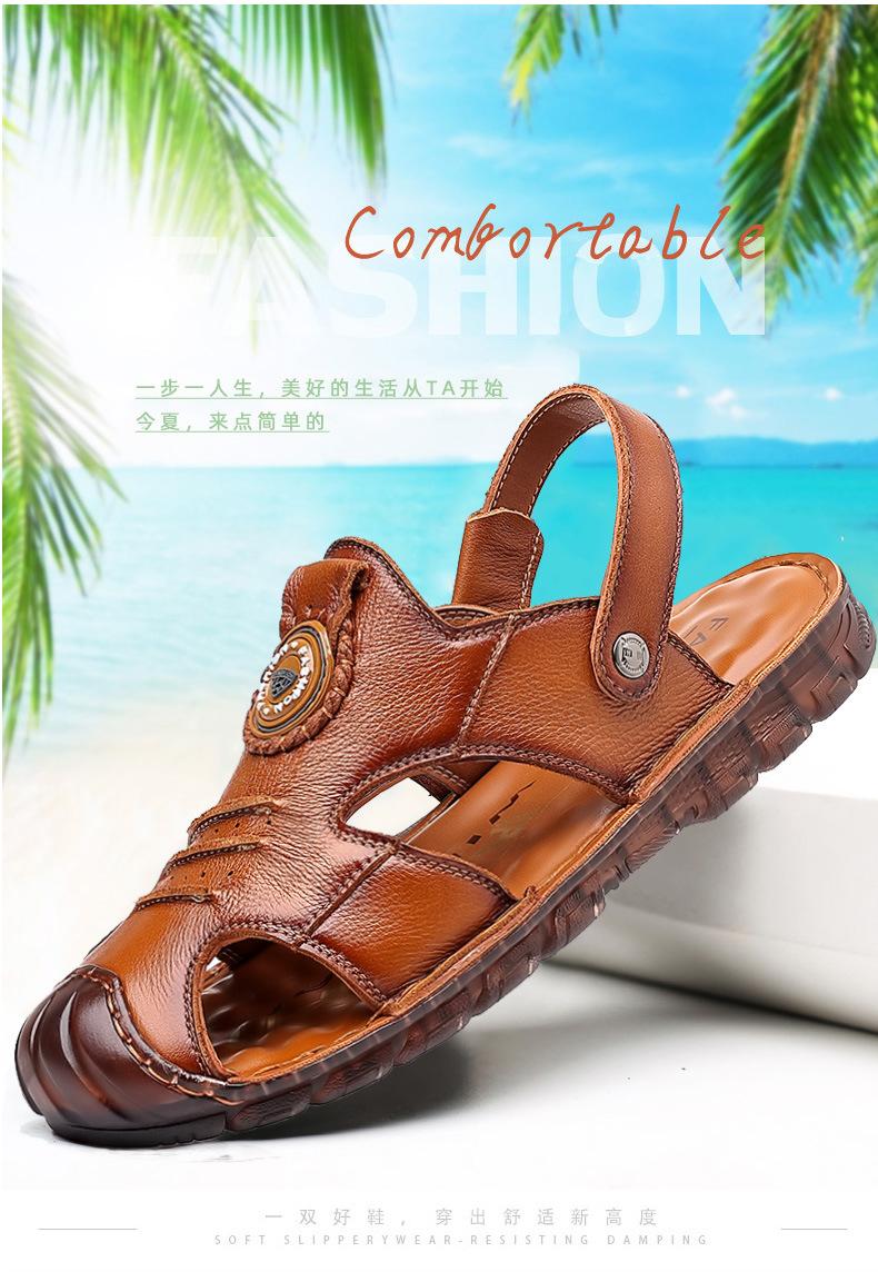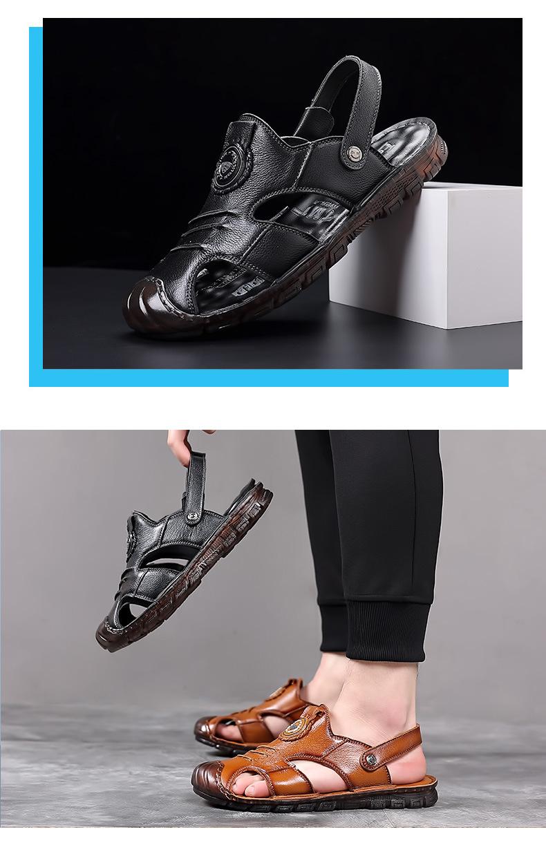Sandalias de cuero para hombre, nuevas sandalias de verano de cuero genuino de doble propósito hechas a mano, sandalias de suela blanda antideslizantes para hombre, sandalias de moda