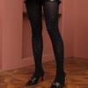 Calcetines negros de moda con perforación en caliente, con diamantes cuadrados blancos, para mujer, otoño e invierno, leggings de seda negros desnudos, medias de cielo, pantimedias de primavera y otoño.