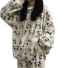 Pijamas de mujer de franela de invierno estilo coreano de manga larga con forro polar grueso y forro polar coral, lindo traje de otoño e invierno para el hogar para mujer