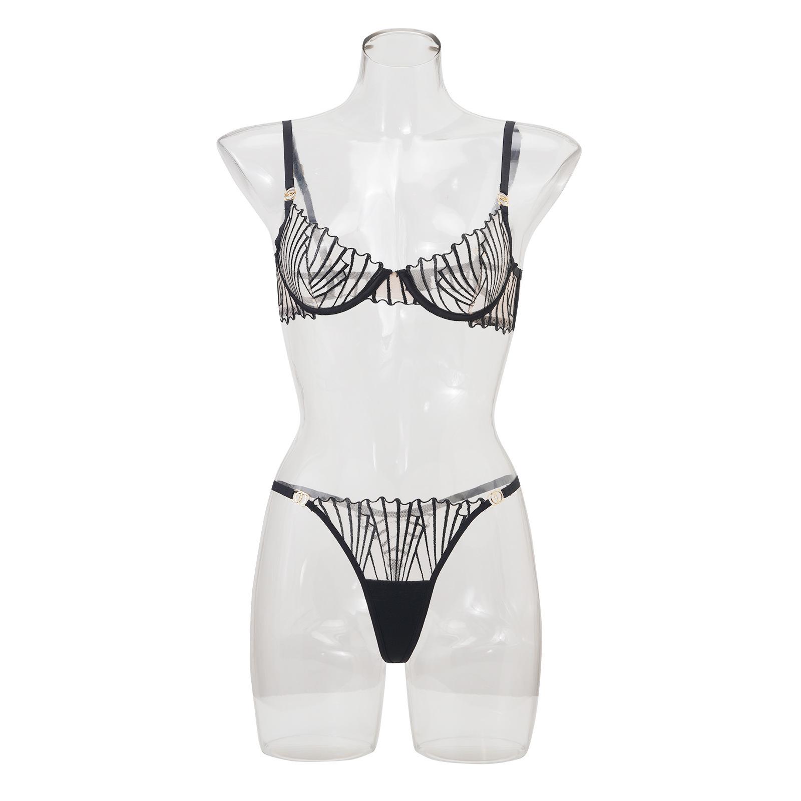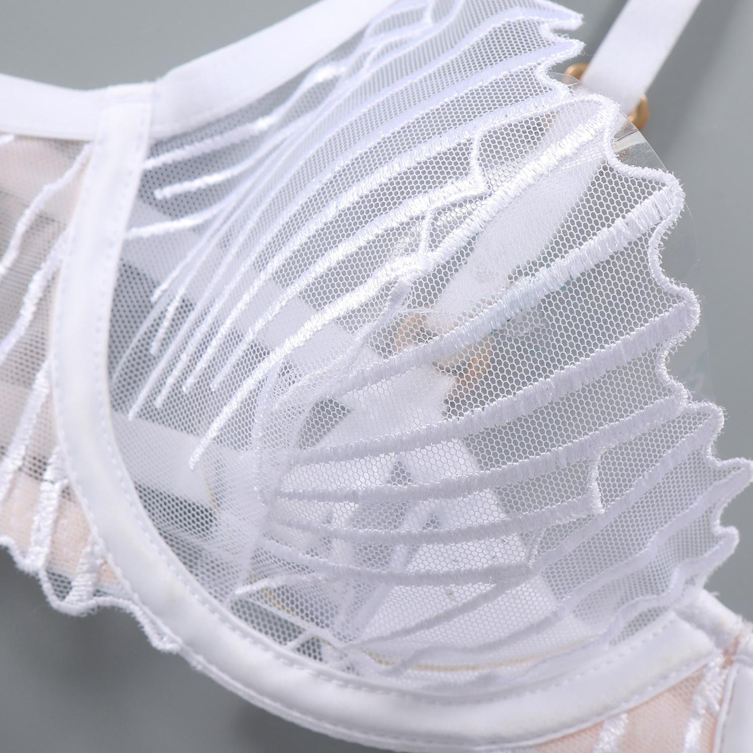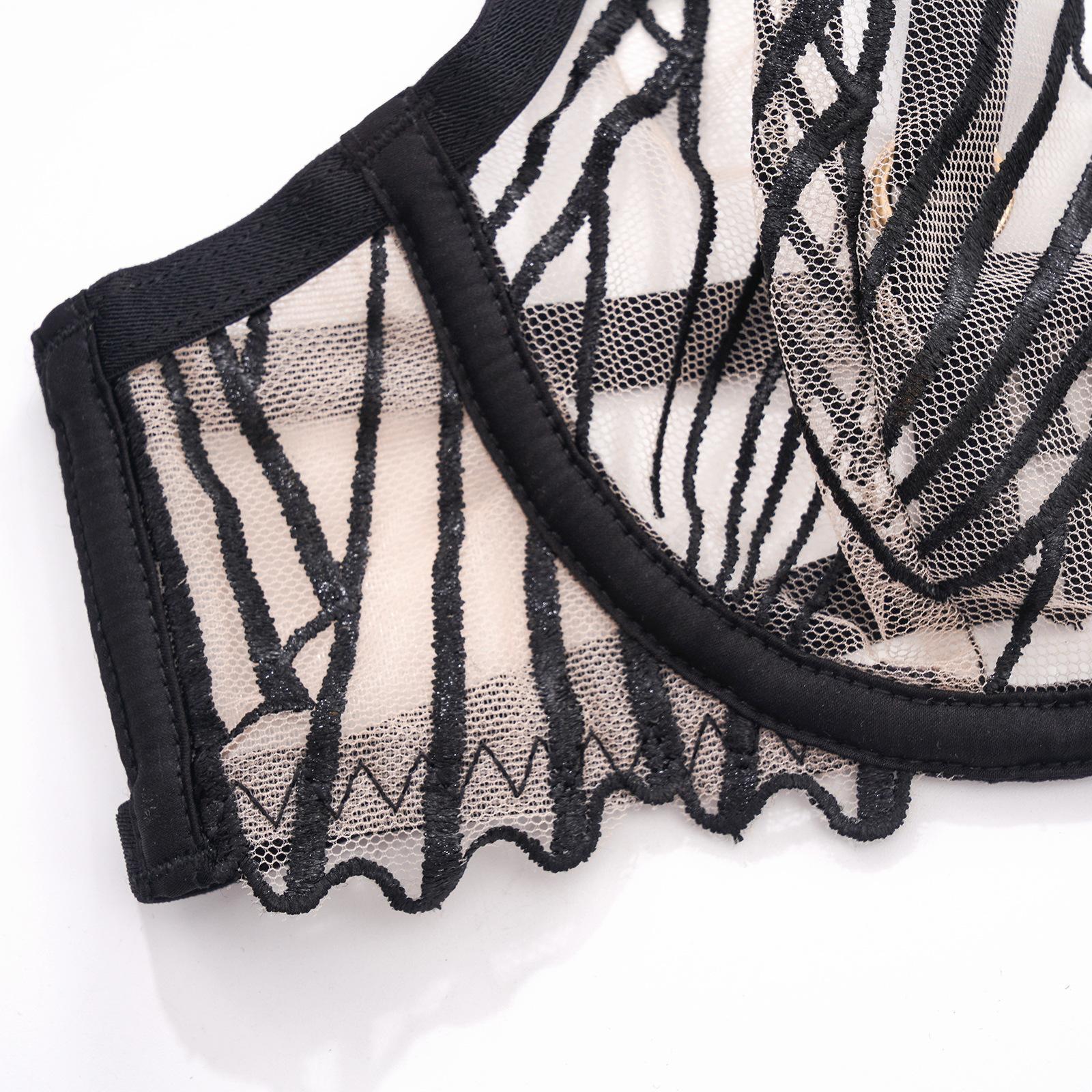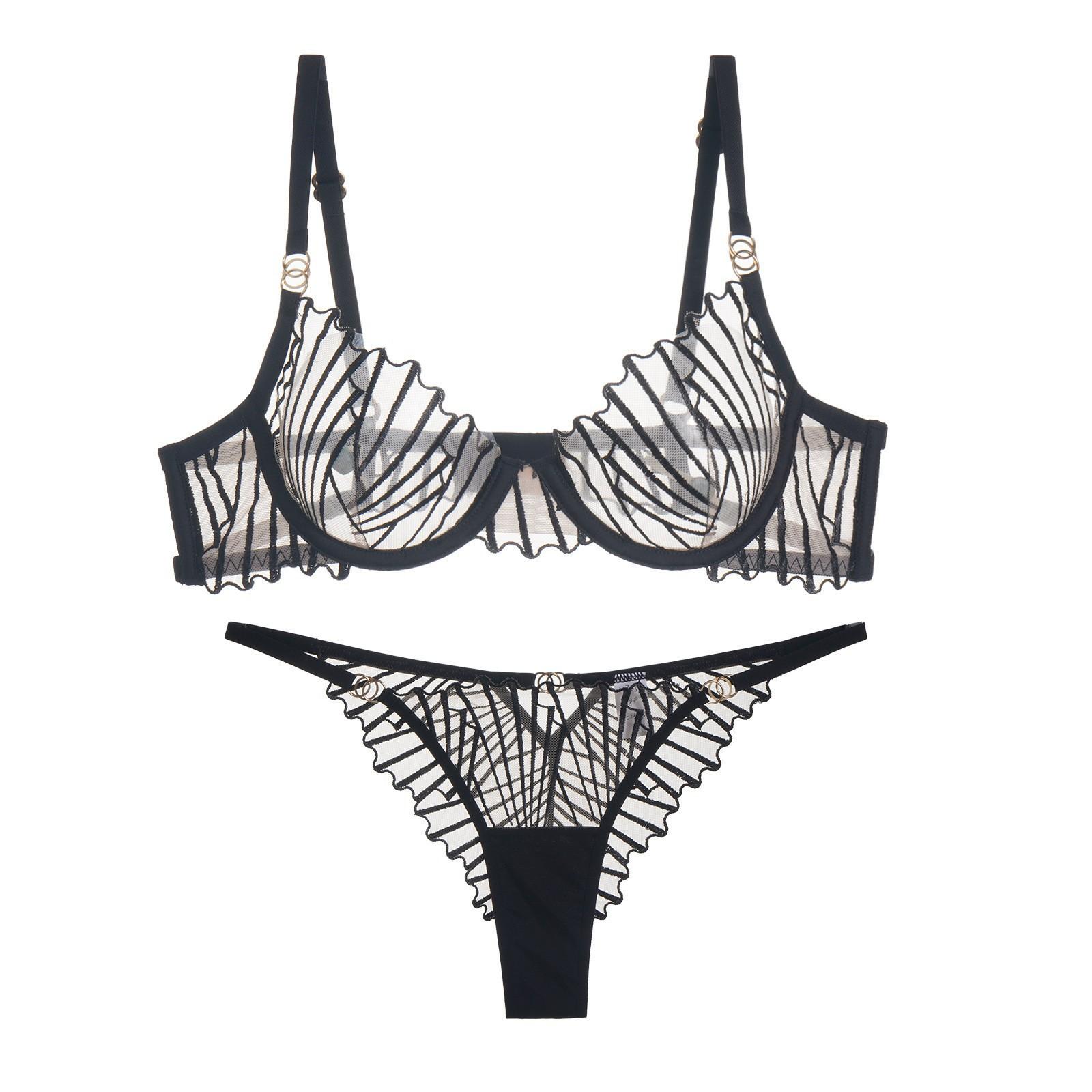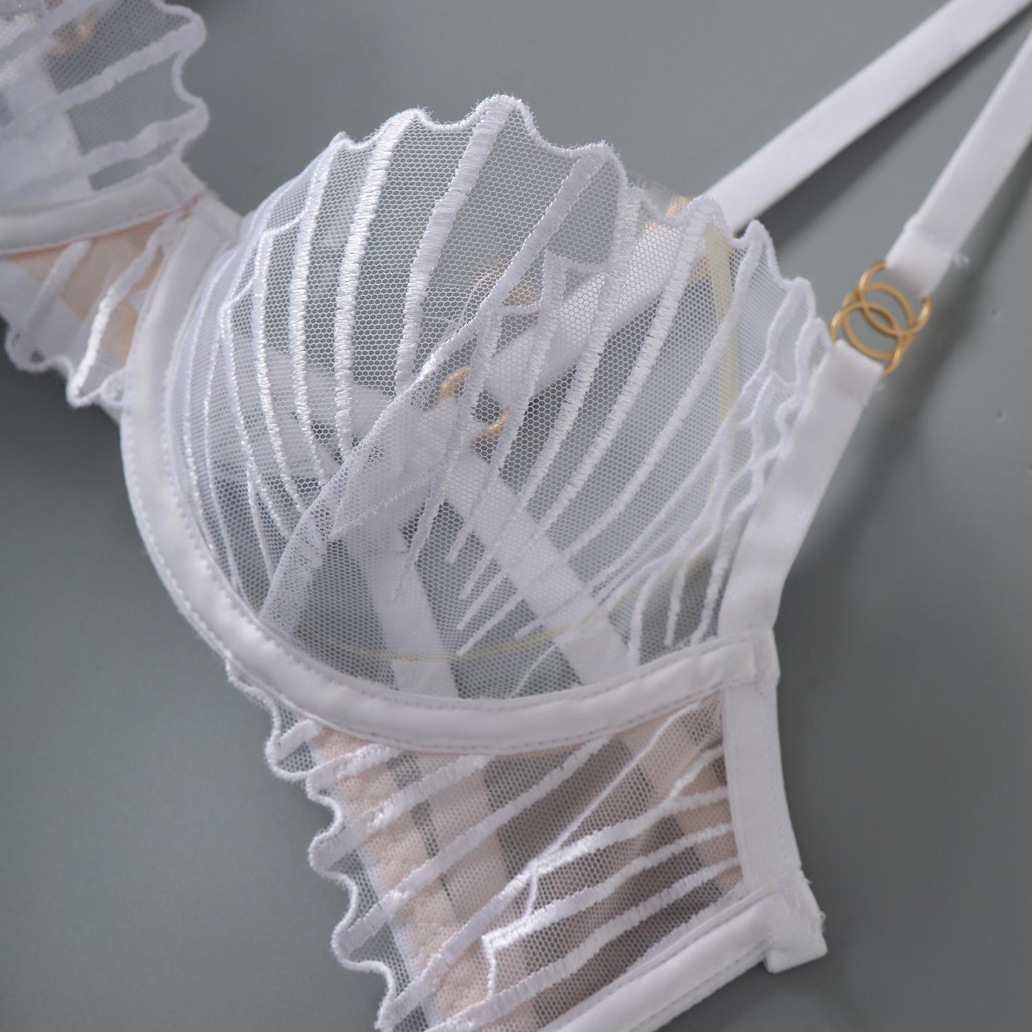 Lencería sexy transfronteriza de verano, lencería bordada de malla con perspectiva ultrafina, conjunto de sujetador antiflacidez pequeño con pecho grande |
