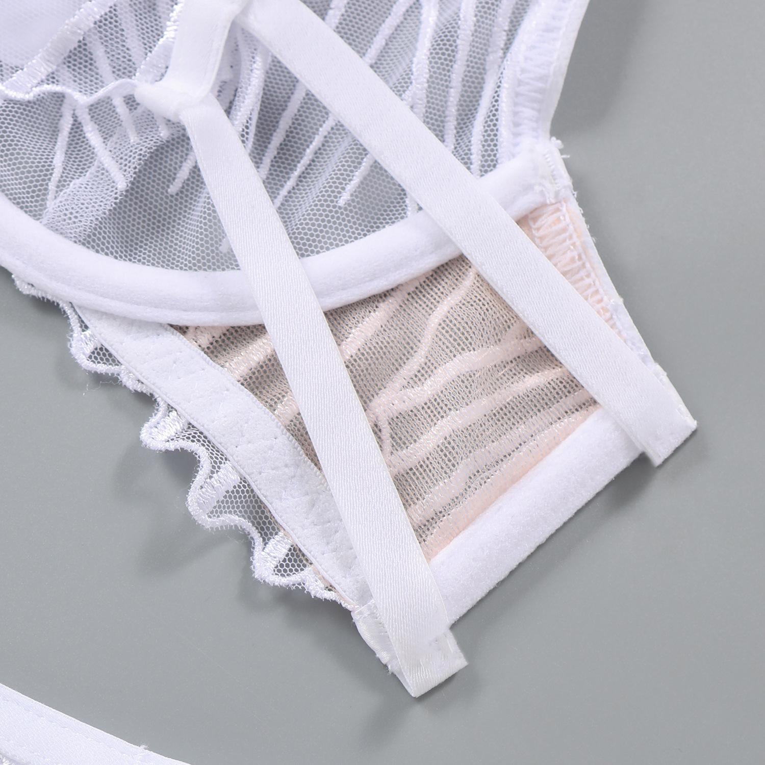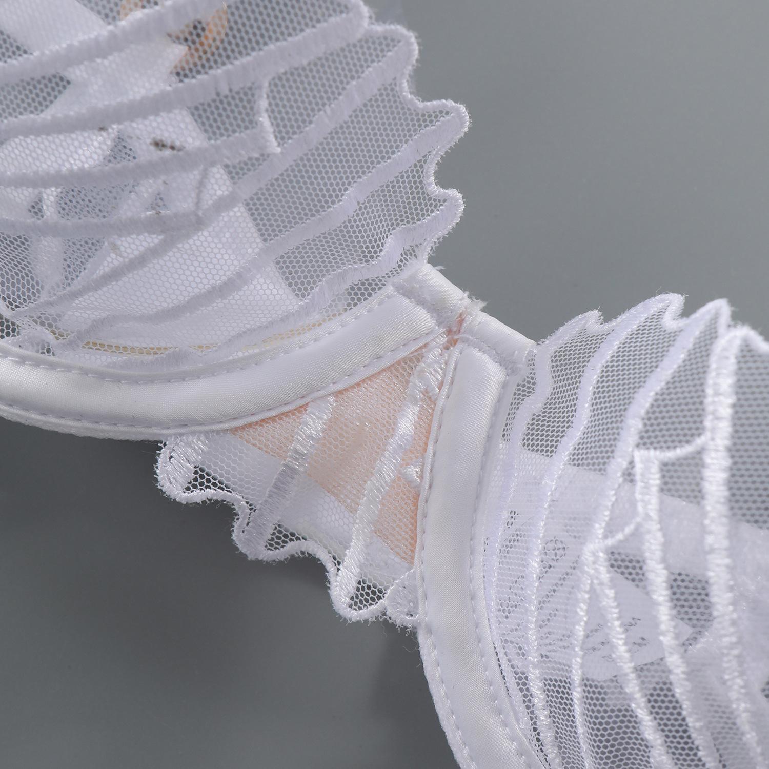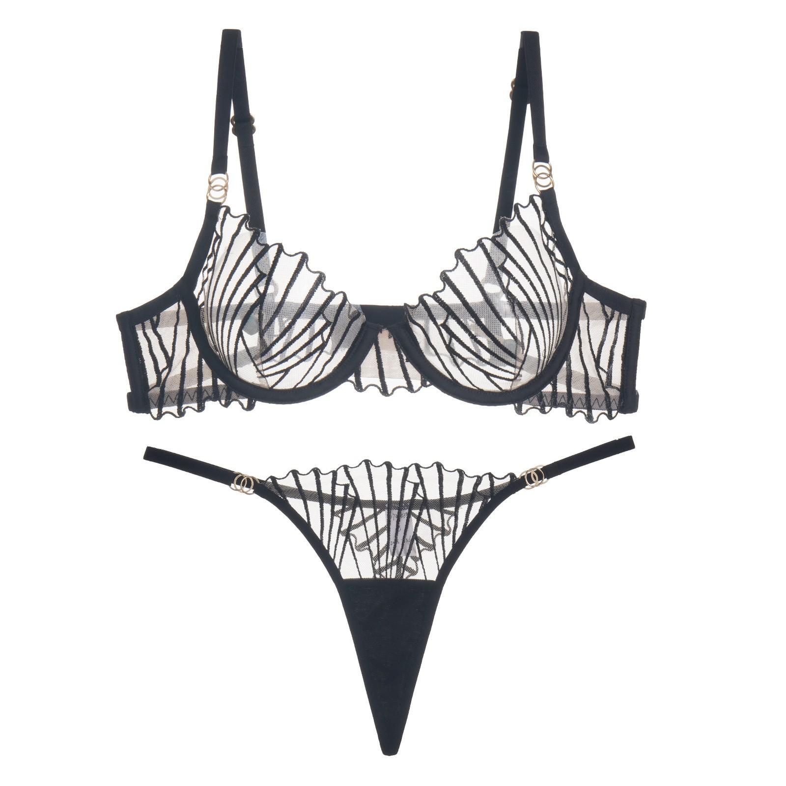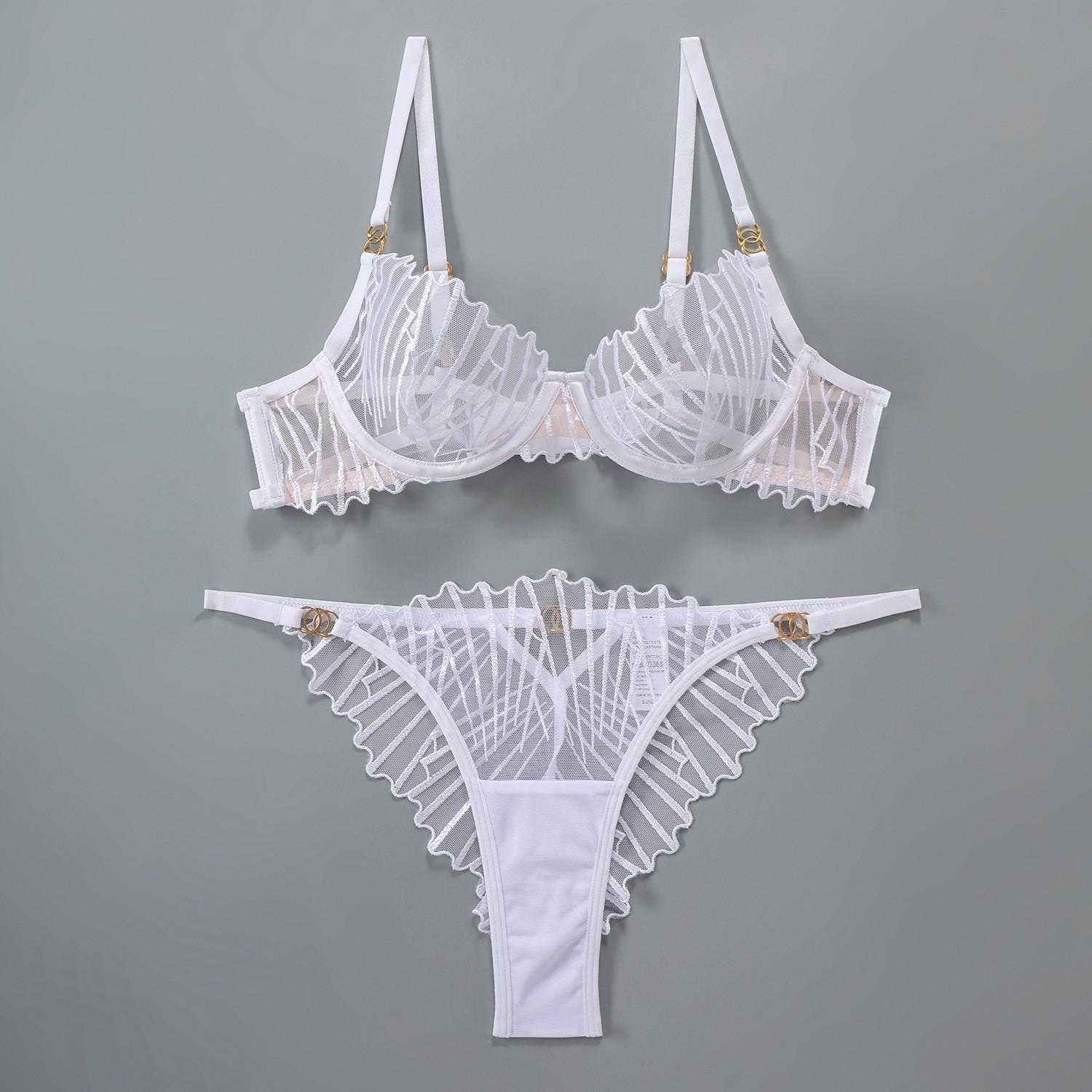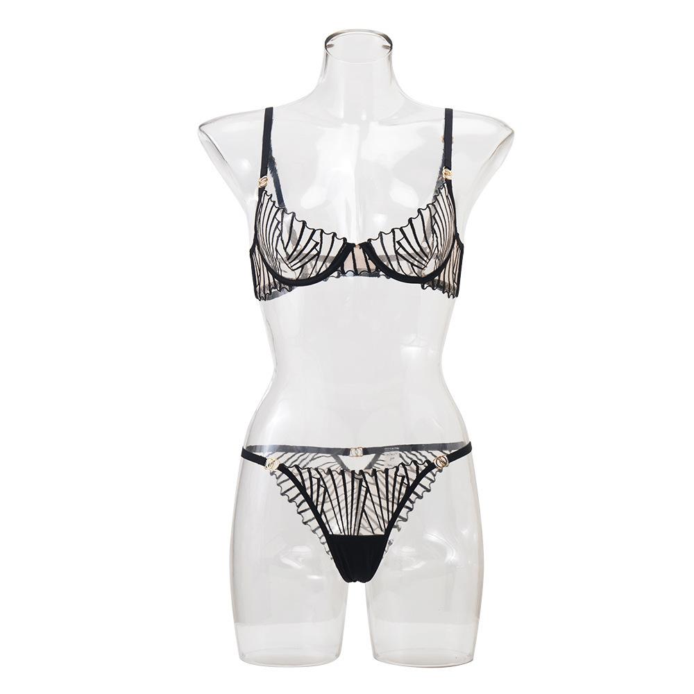 Lencería sexy transfronteriza de verano, lencería bordada de malla con perspectiva ultrafina, conjunto de sujetador antiflacidez pequeño con pecho grande |