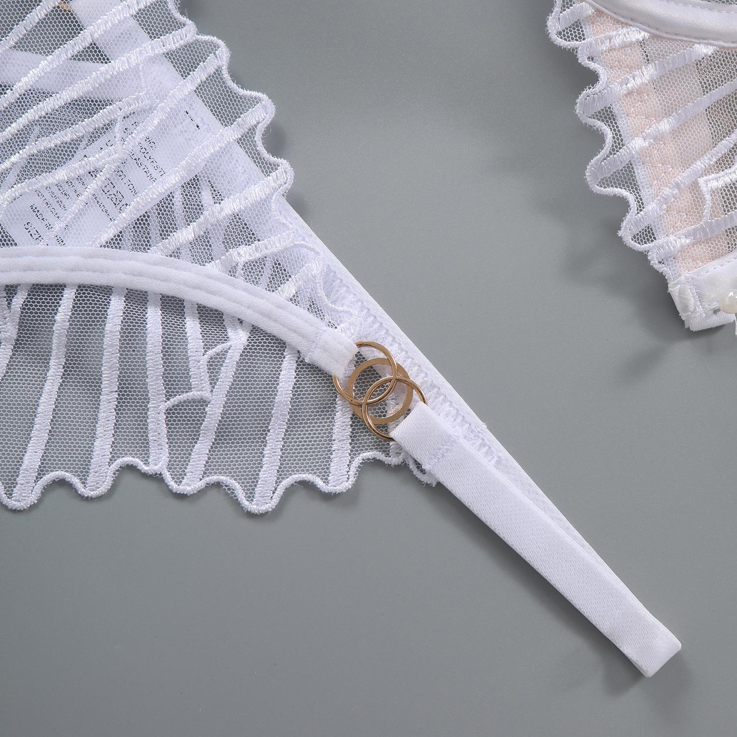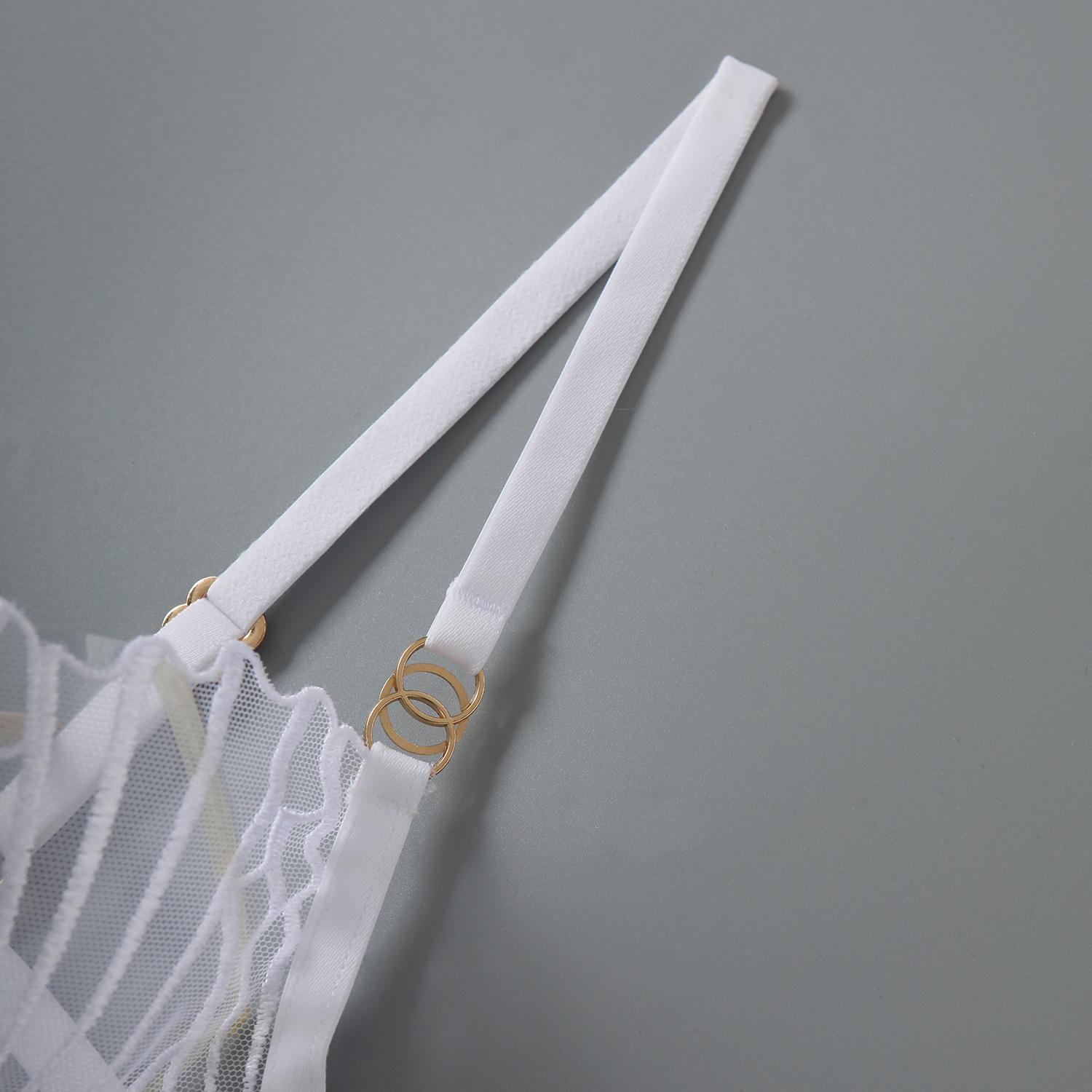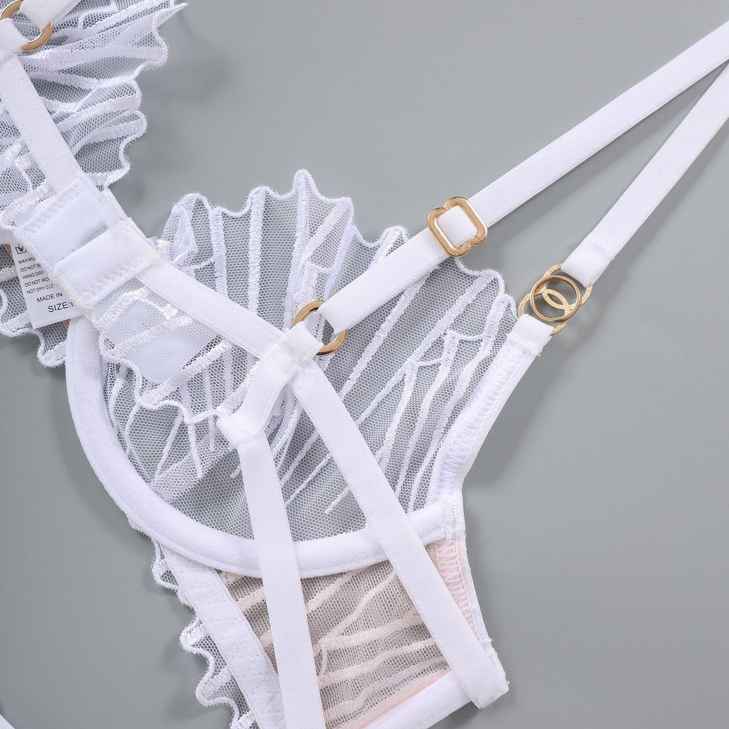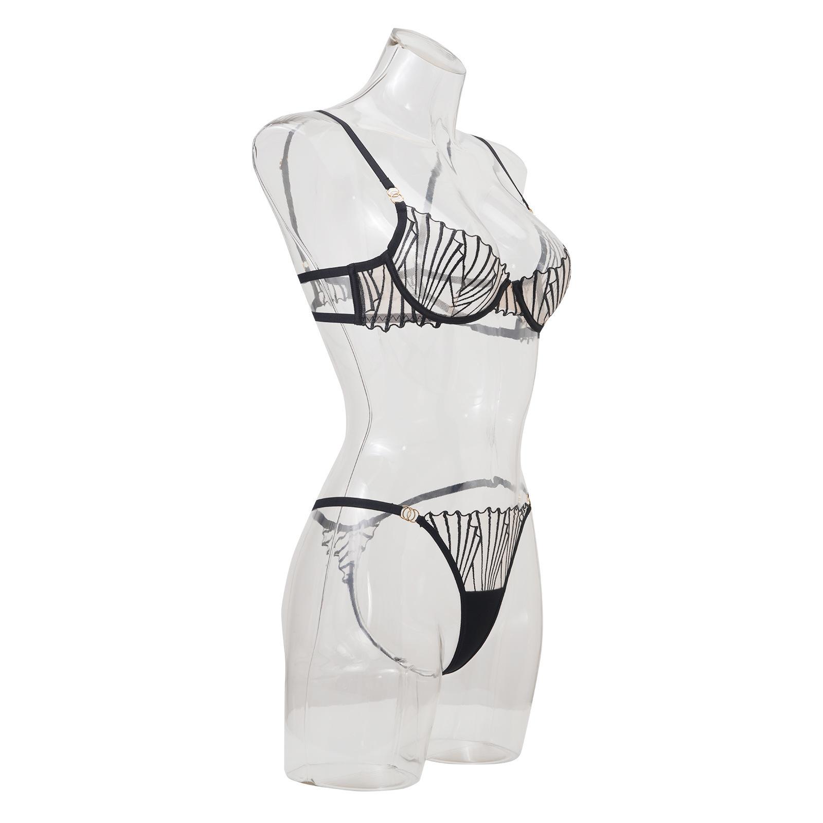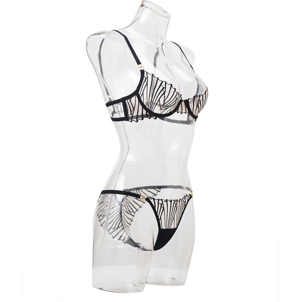 Lencería sexy transfronteriza de verano, lencería bordada de malla con perspectiva ultrafina, conjunto de sujetador antiflacidez pequeño con pecho grande |