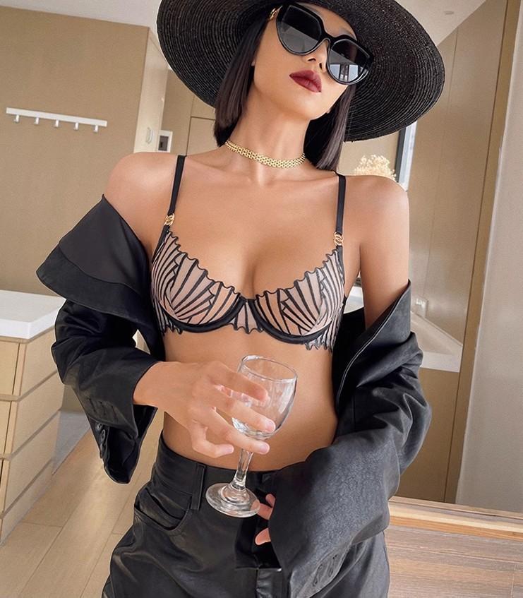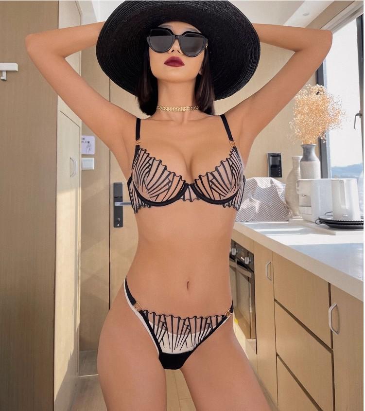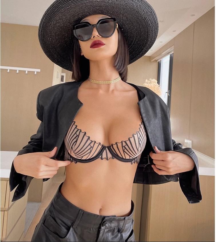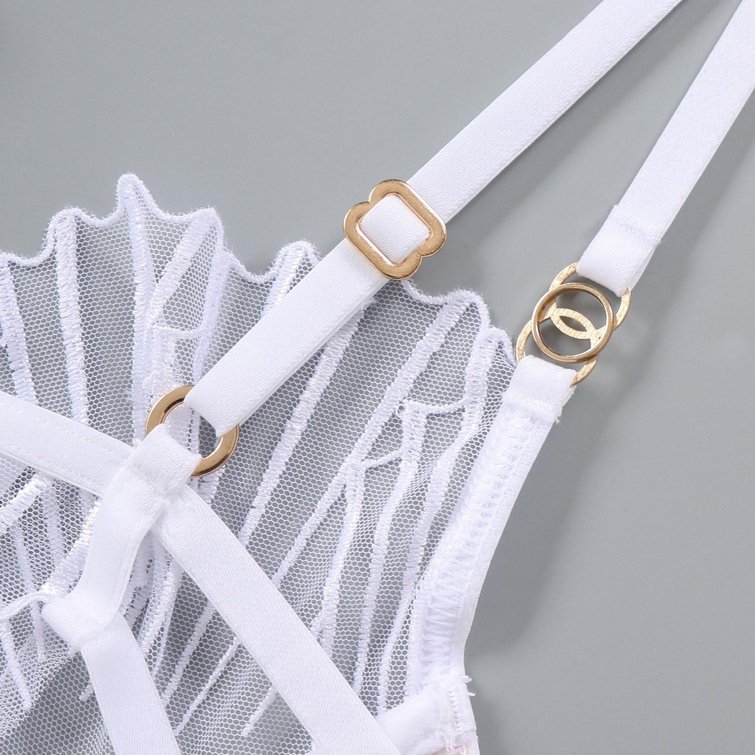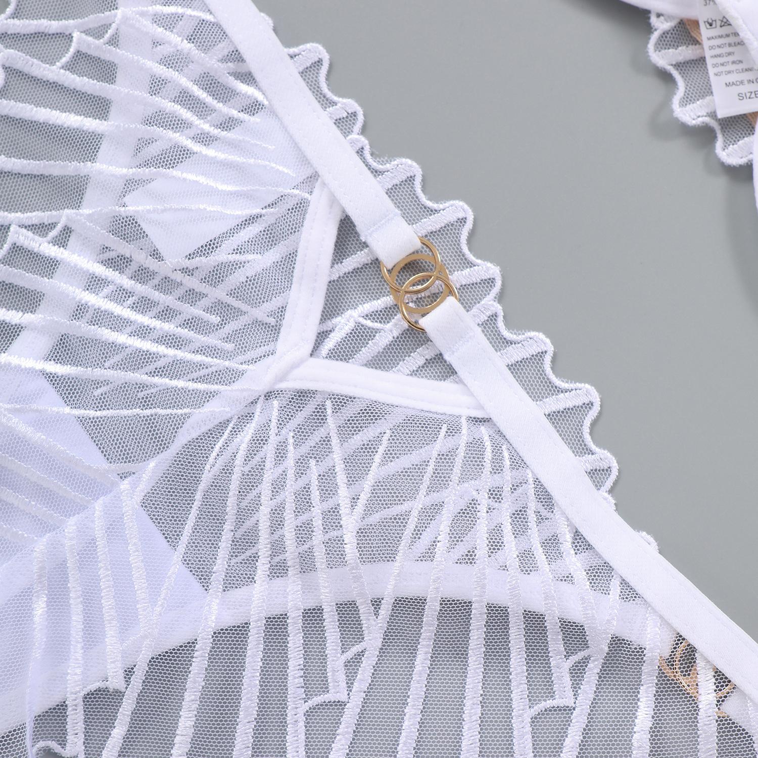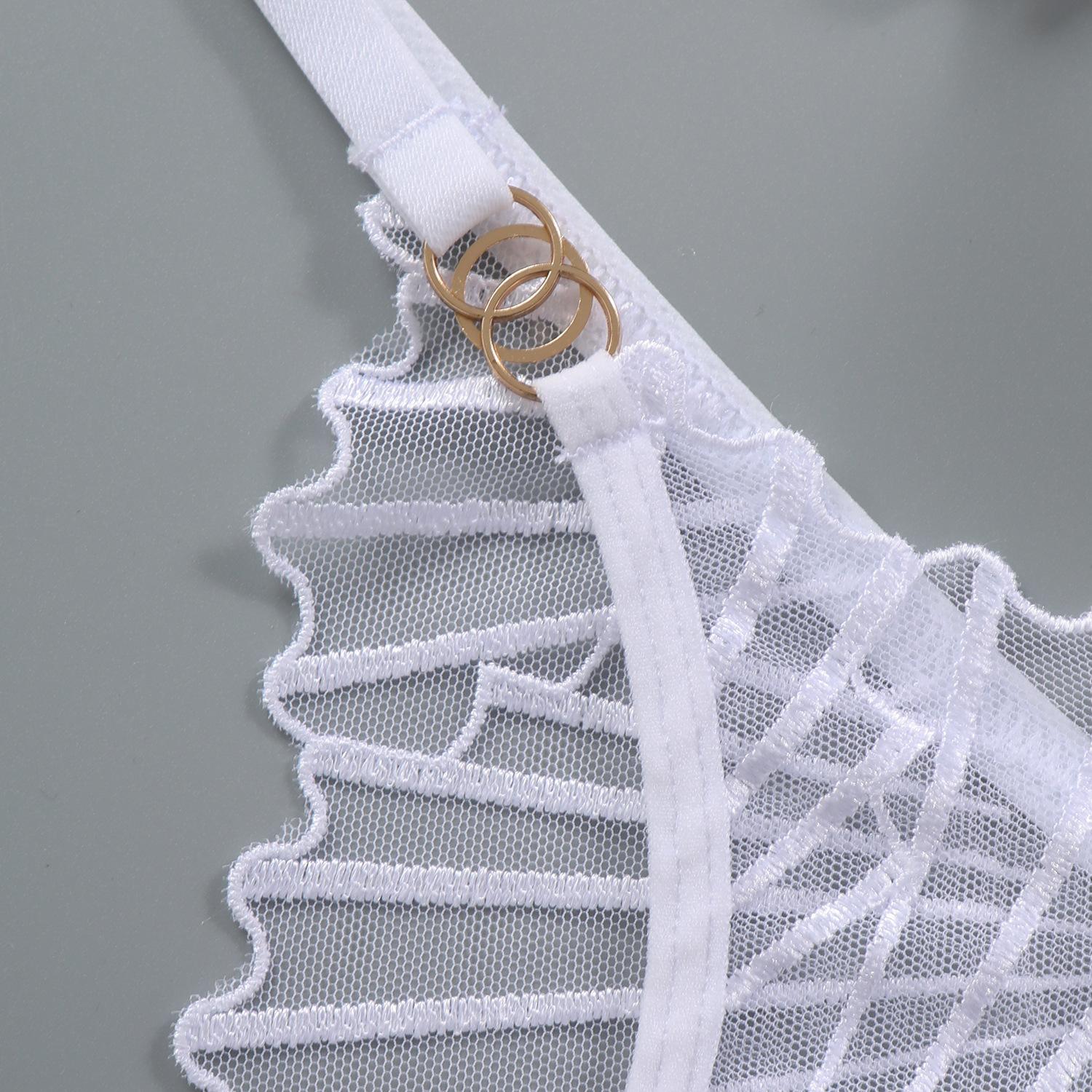 Lencería sexy transfronteriza de verano, lencería bordada de malla con perspectiva ultrafina, conjunto de sujetador antiflacidez pequeño con pecho grande |