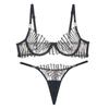 Ropa interior de encaje sexy transfronteriza, perspectiva ultrafina, conjunto de ropa interior de mujer con estampado en forma de corazón, sujetador pequeño de pecho grande de verano |