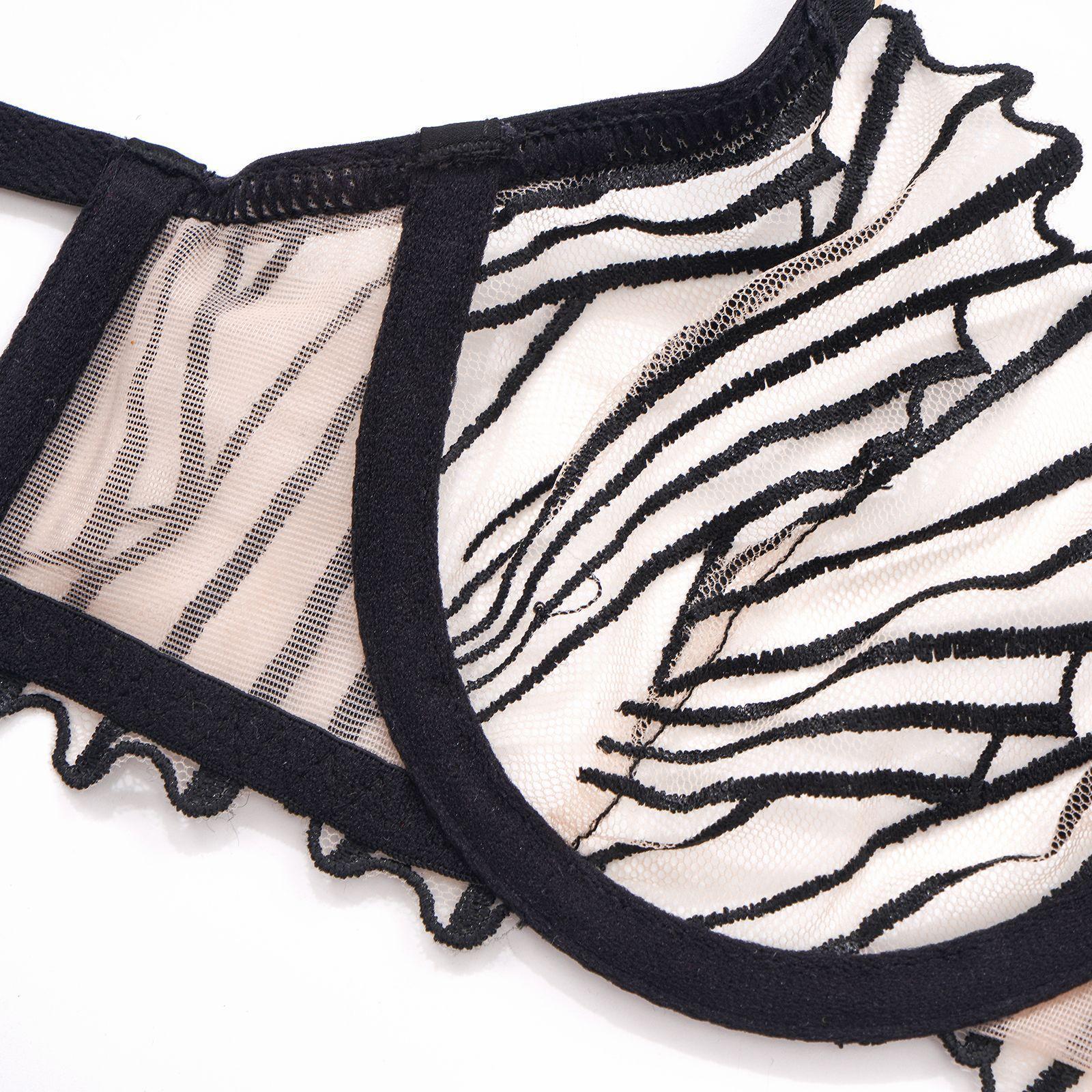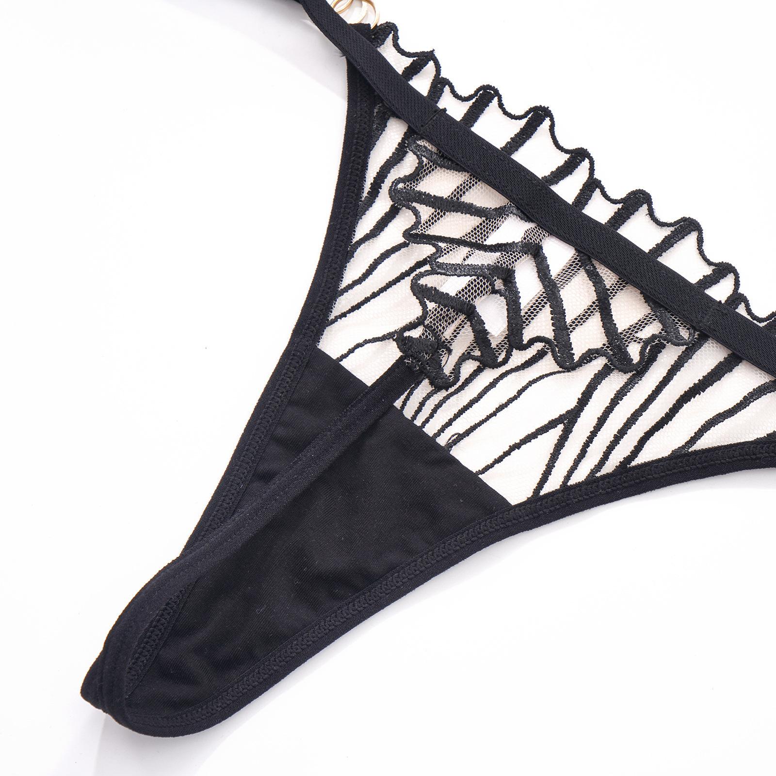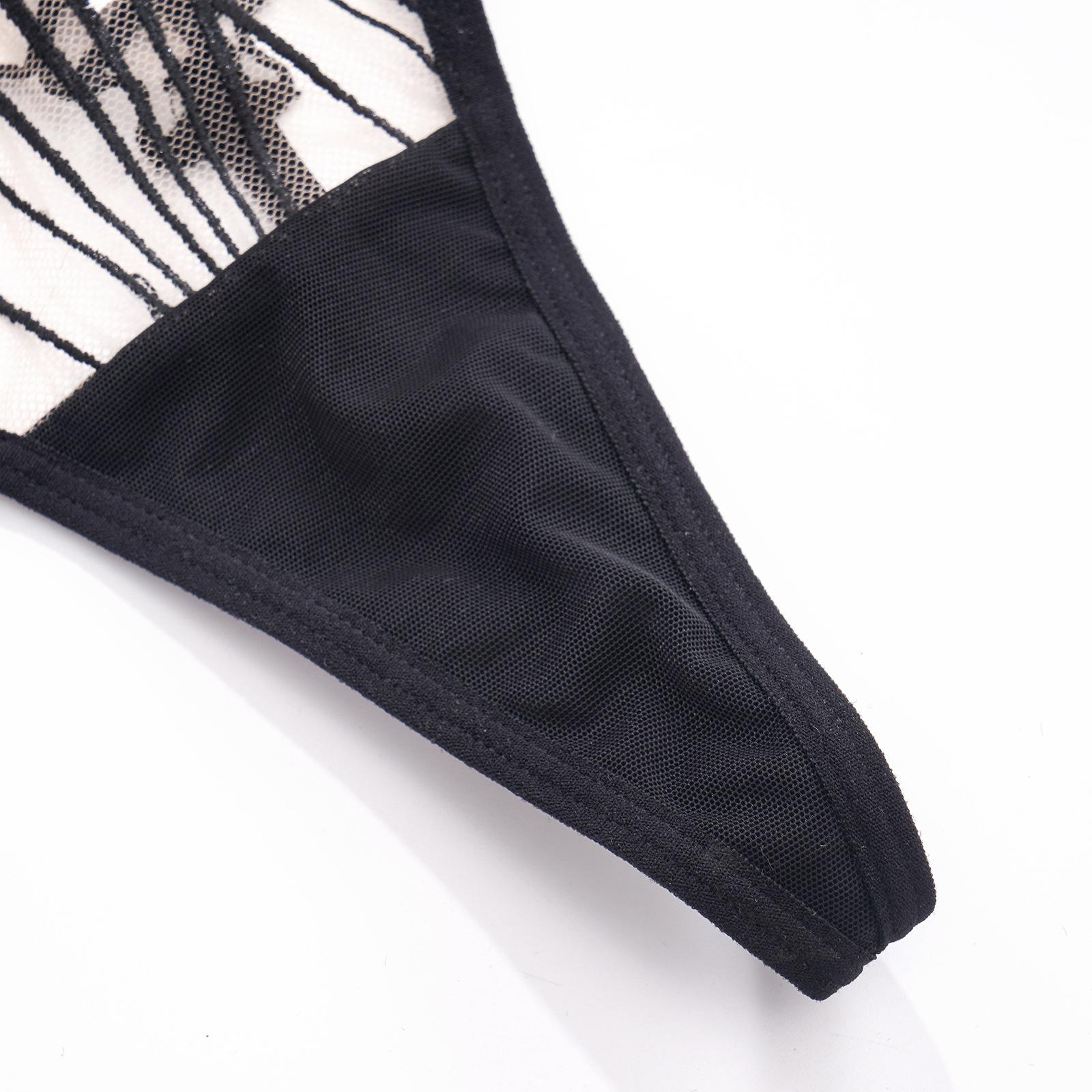 Ropa interior de encaje francés, perspectiva ultrafina, flocado, malla estampada, ropa interior sexy, sujetador de lazo sexy para niña |