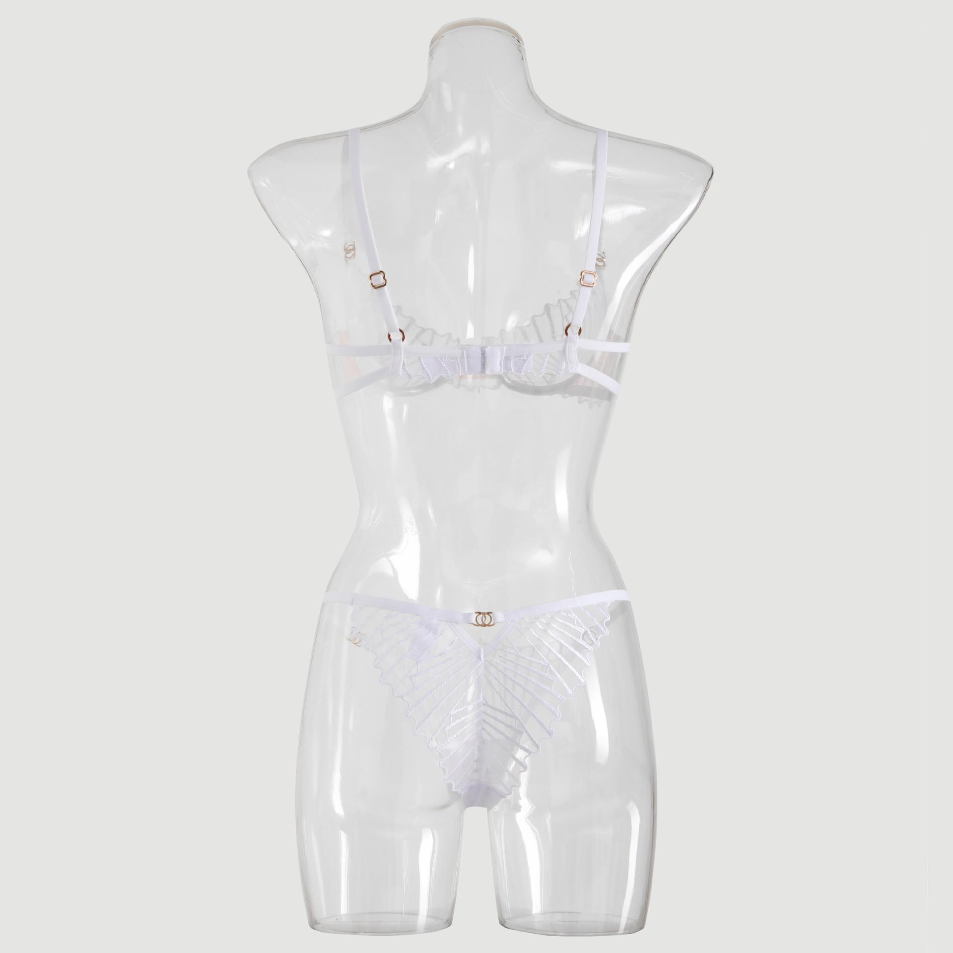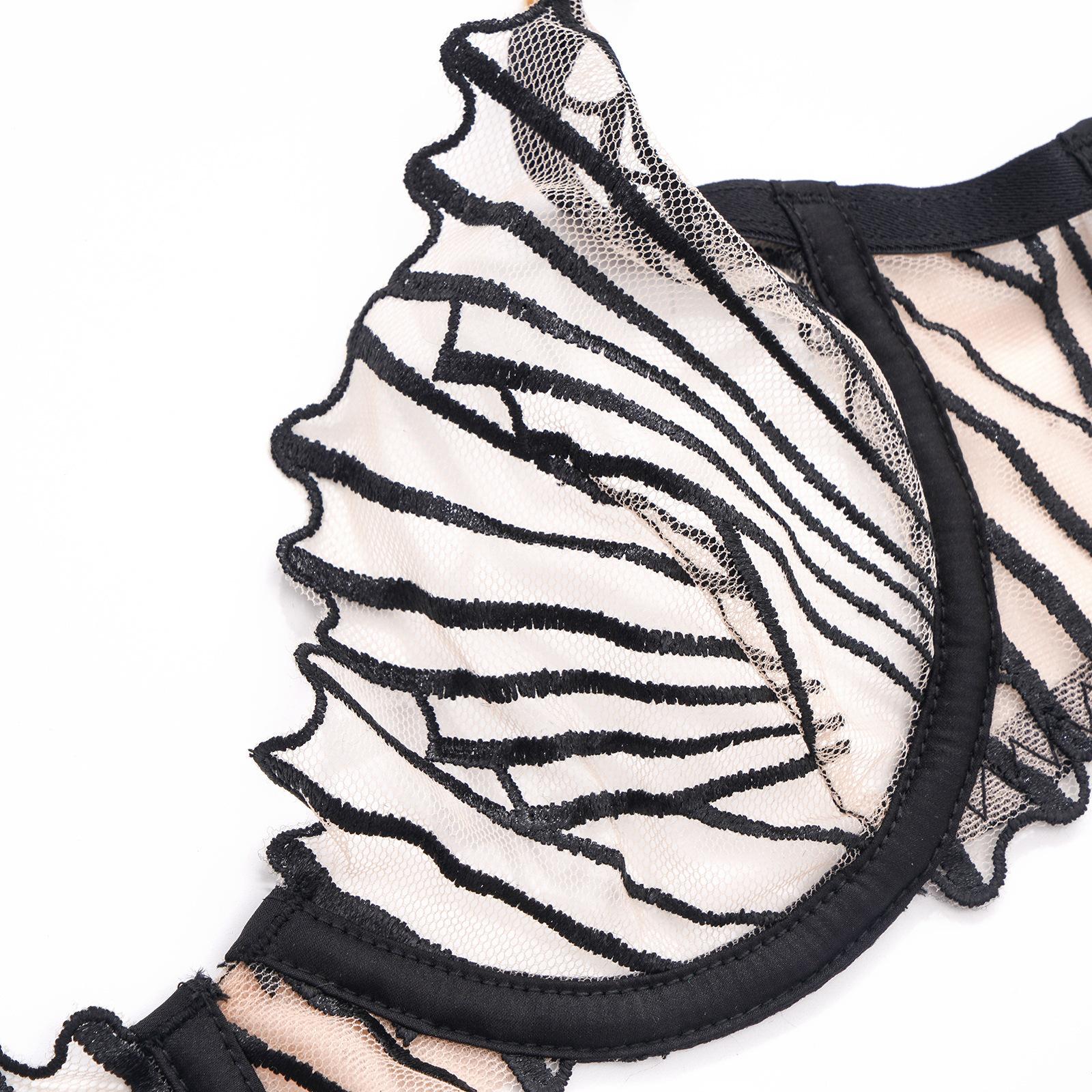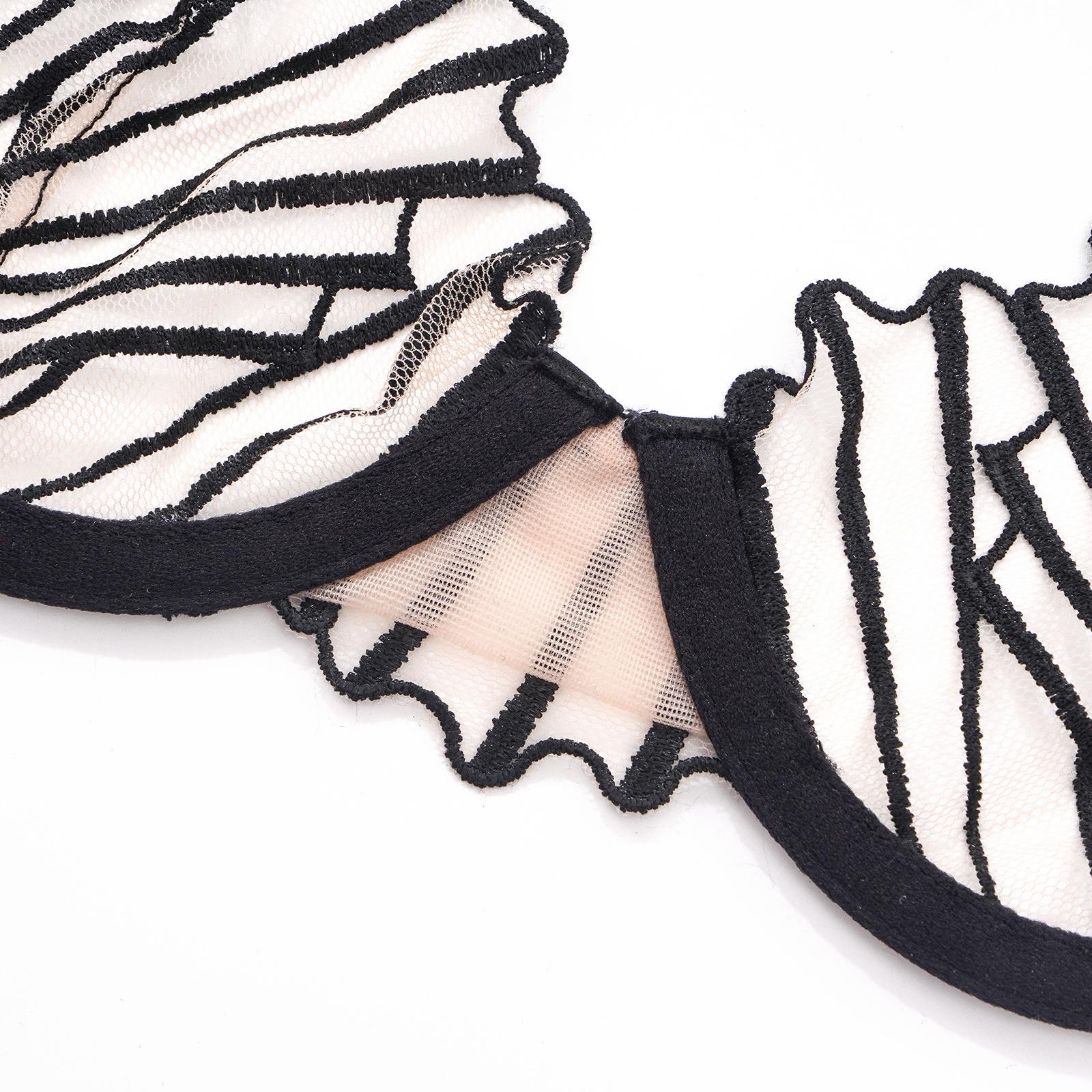 Ropa interior de encaje francés, perspectiva ultrafina, flocado, malla estampada, ropa interior sexy, sujetador de lazo sexy para niña |