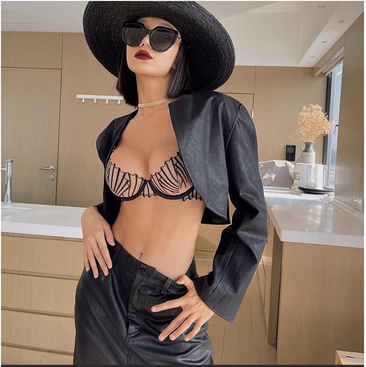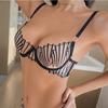 Lencería sexy europea y americana para mujer, lencería sexy de encaje bordado con estampado de leopardo ultrafino para pechos grandes para mostrar un pequeño conjunto de sujetador antiflacidez |