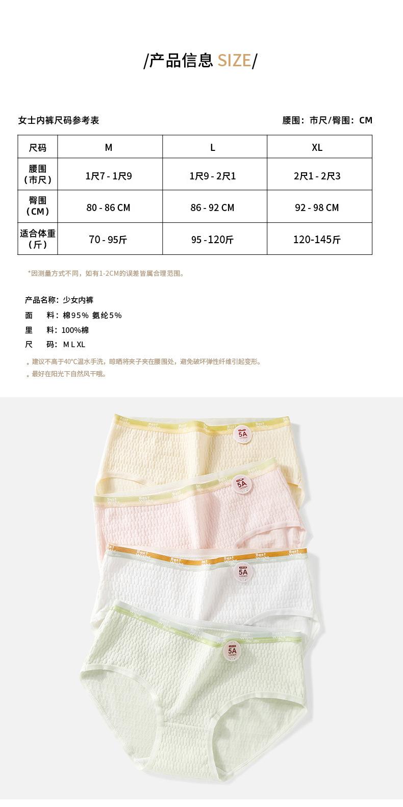 Ropa Interior Invierno Mujer Algodón Puro Antibacterial Algodón Bebé 5A Ropa Interior Algodón Puro Invierno Mujer Antibacterial Respetuosa con la Piel Cómoda Algodón Puro Tiro Medio