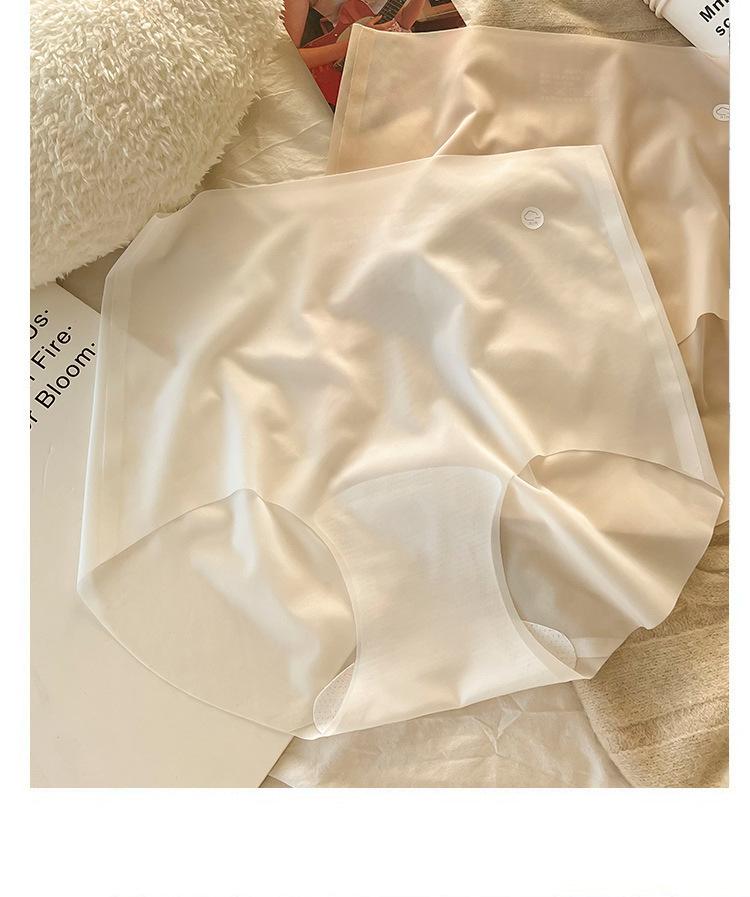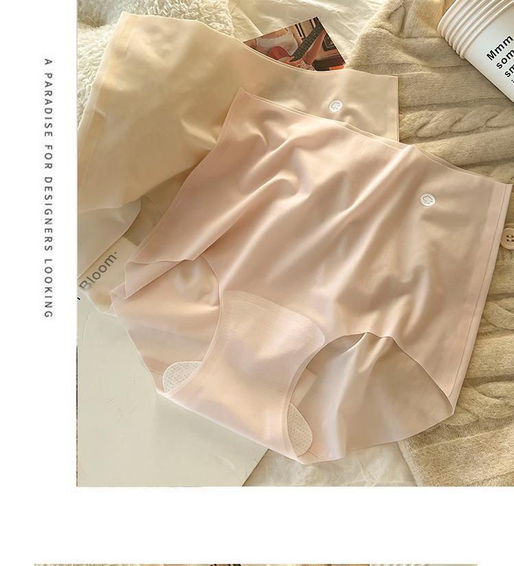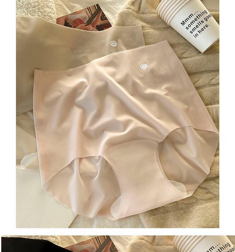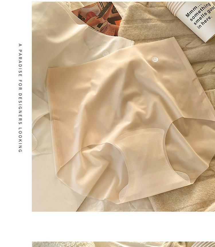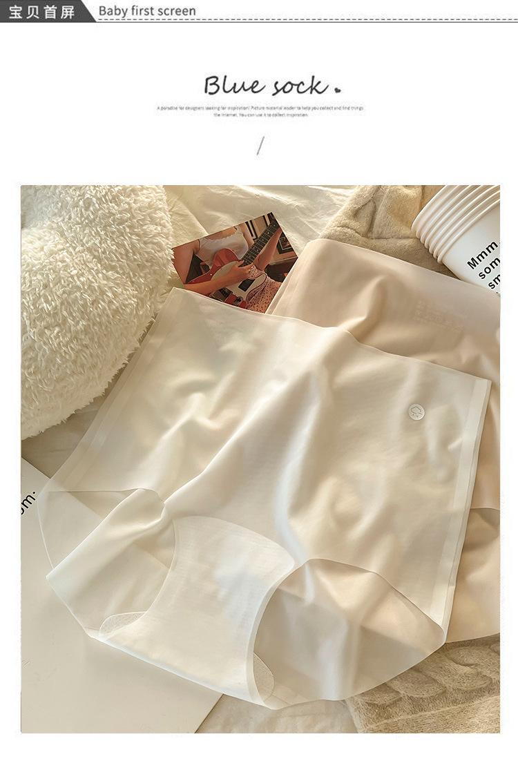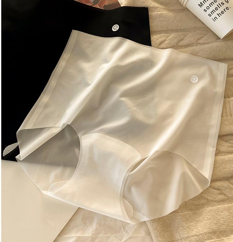Ropa interior de seda helada de cintura alta para mujer, sin marcas, con pliegue abdominal, ultrafina, transpirable, de verano, para chicas jóvenes, con entrepierna de algodón.
