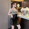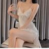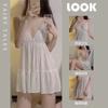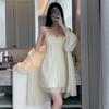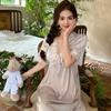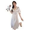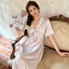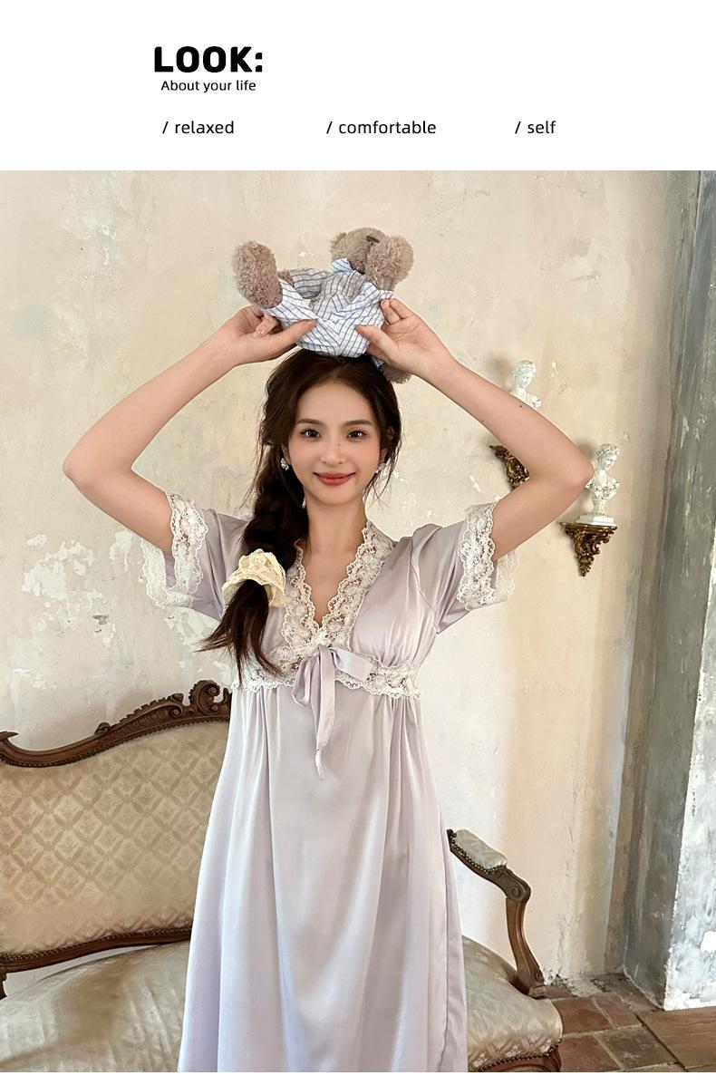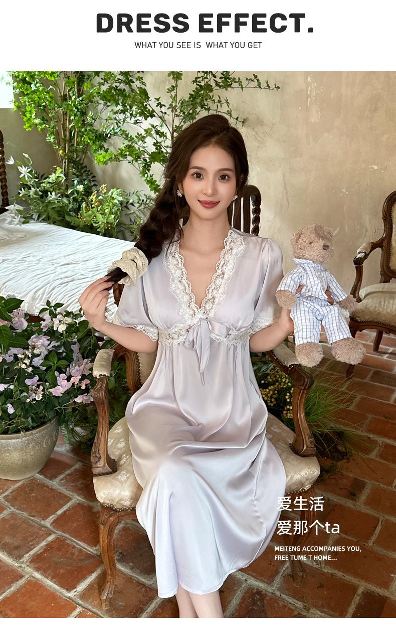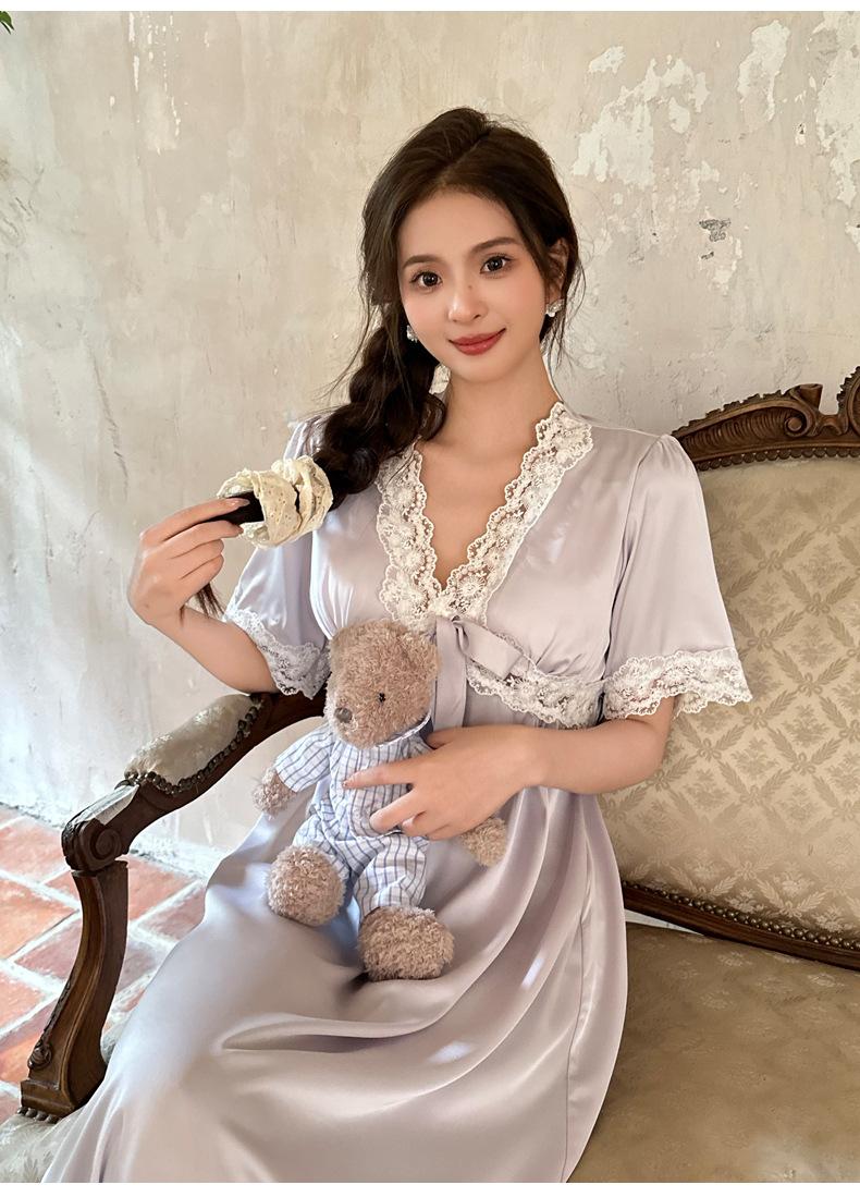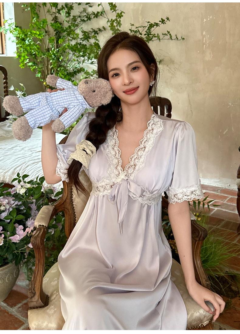 Camisón de verano para mujer, de manga corta, estilo palacio, con encaje puro, color liso, sexy, de seda helada, falda, ropa de casa