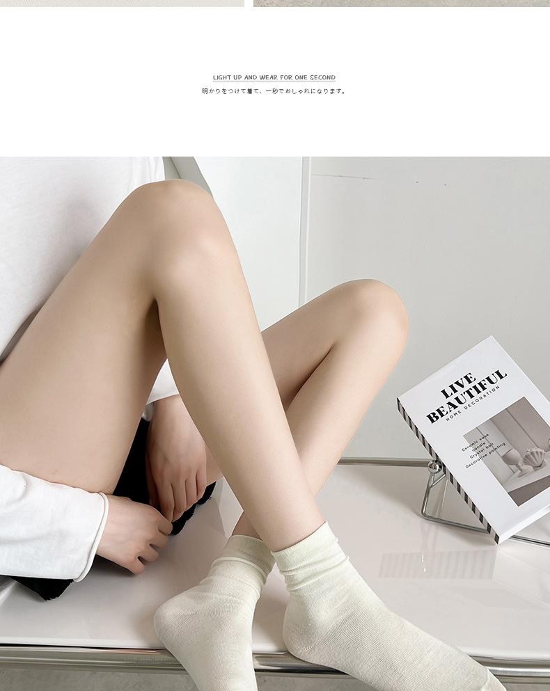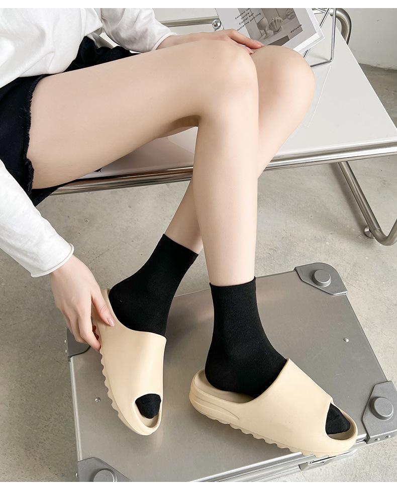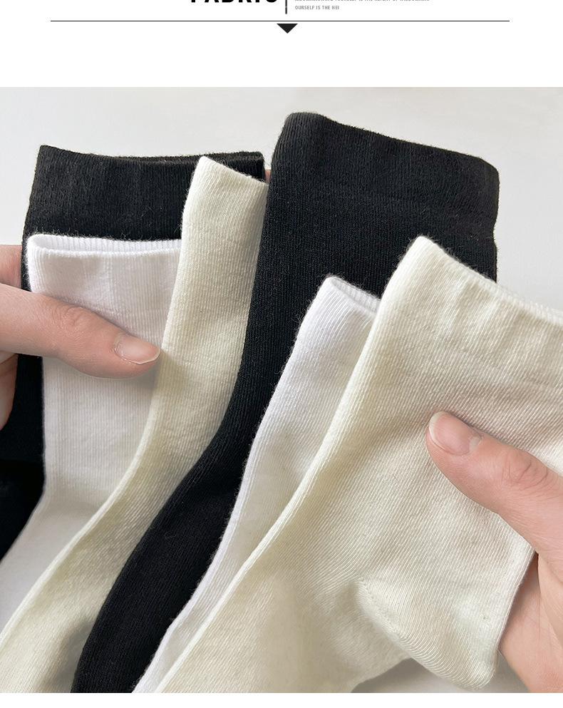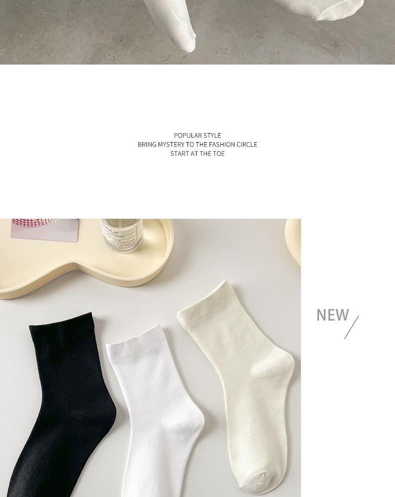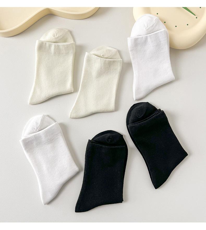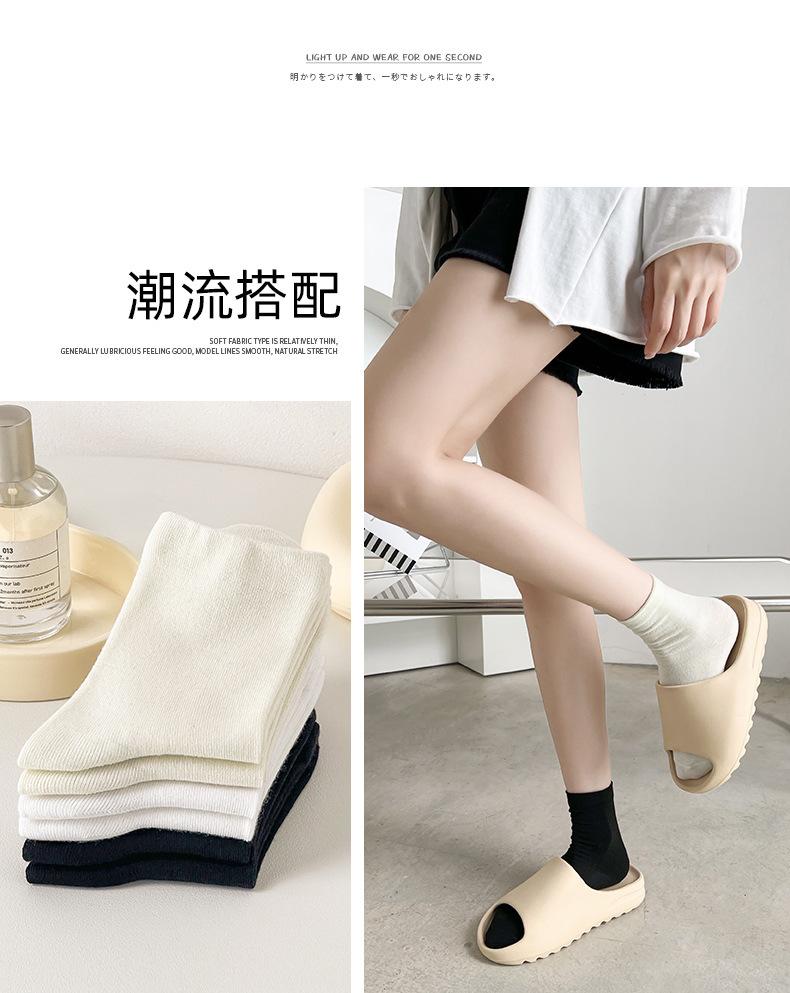 Calcetines blancos de tubo medio para mujer, calcetines finos de luna de primavera y verano, calcetines sueltos de boca apilada para mujer, calcetines negros de moda