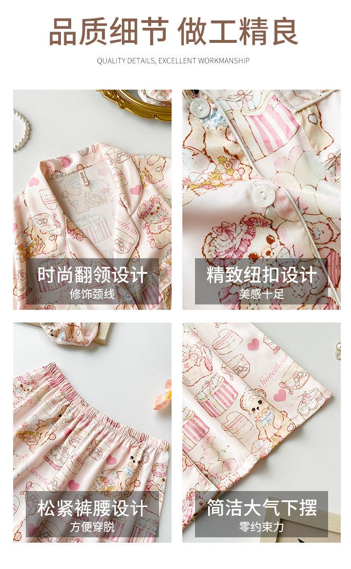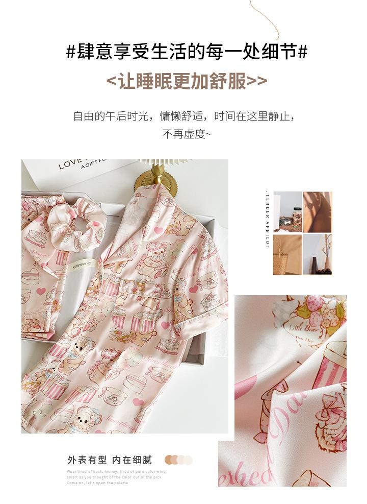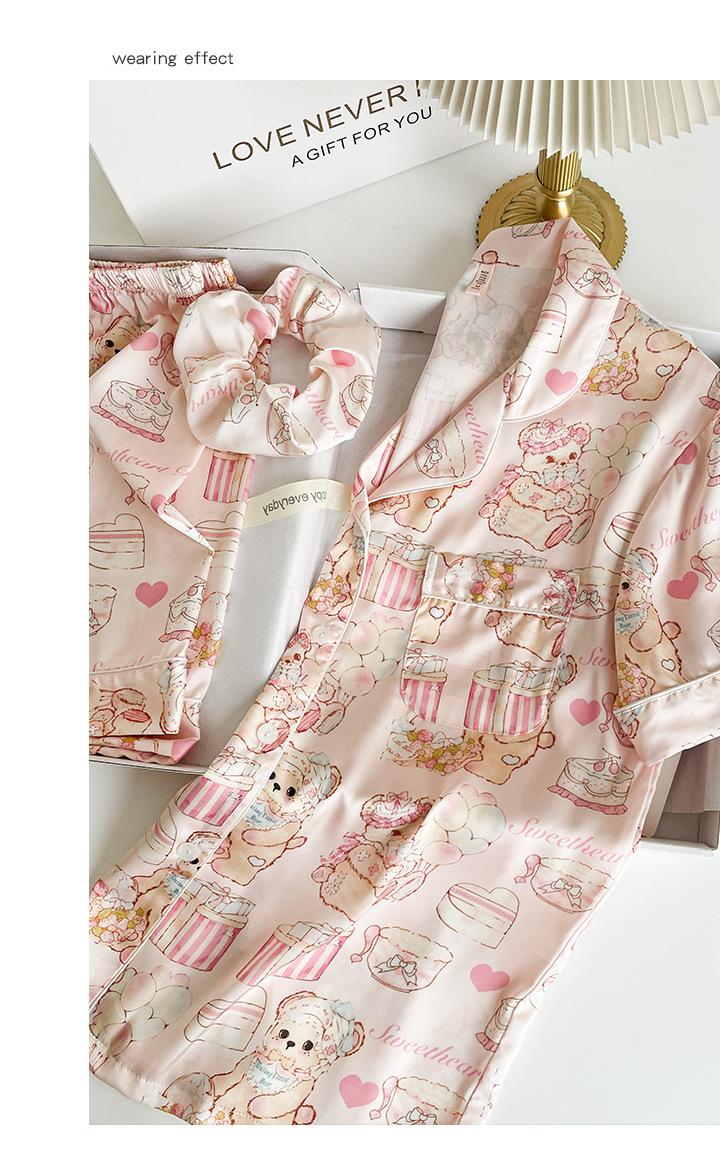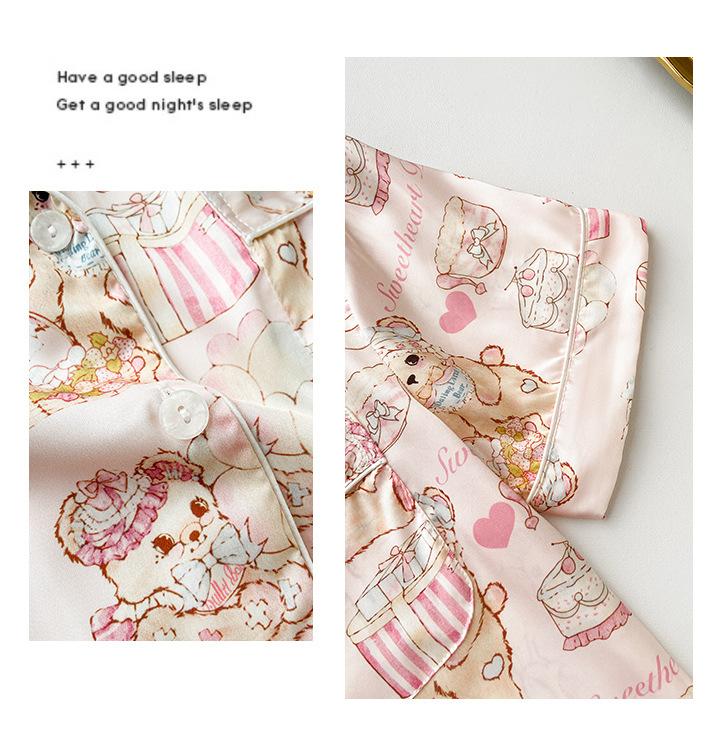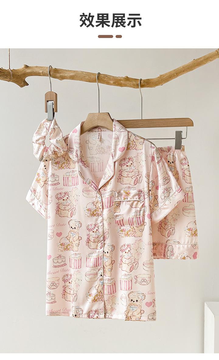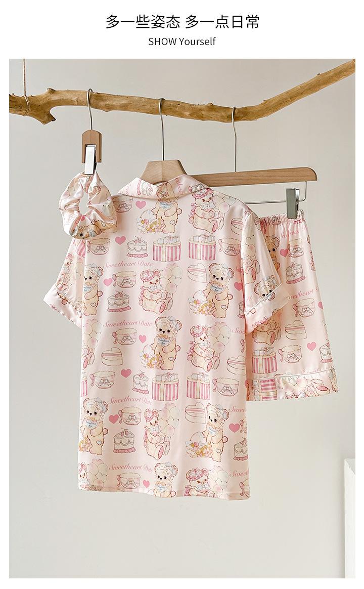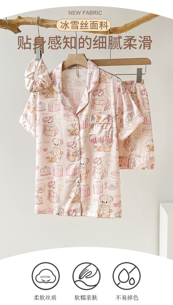 Pijamas nuevos de verano 2024 para mujer, de seda helada, color rosa, con dibujos animados, de manga corta, para el hogar.