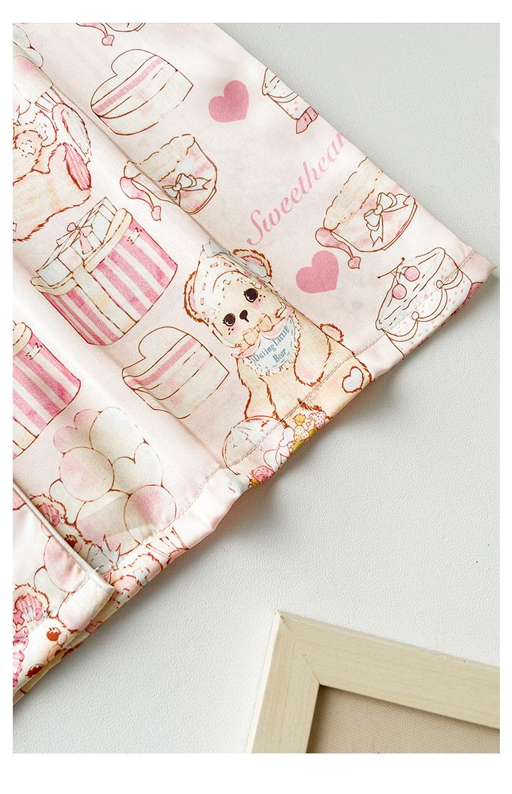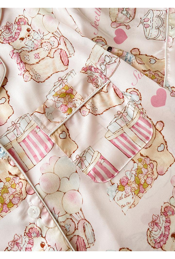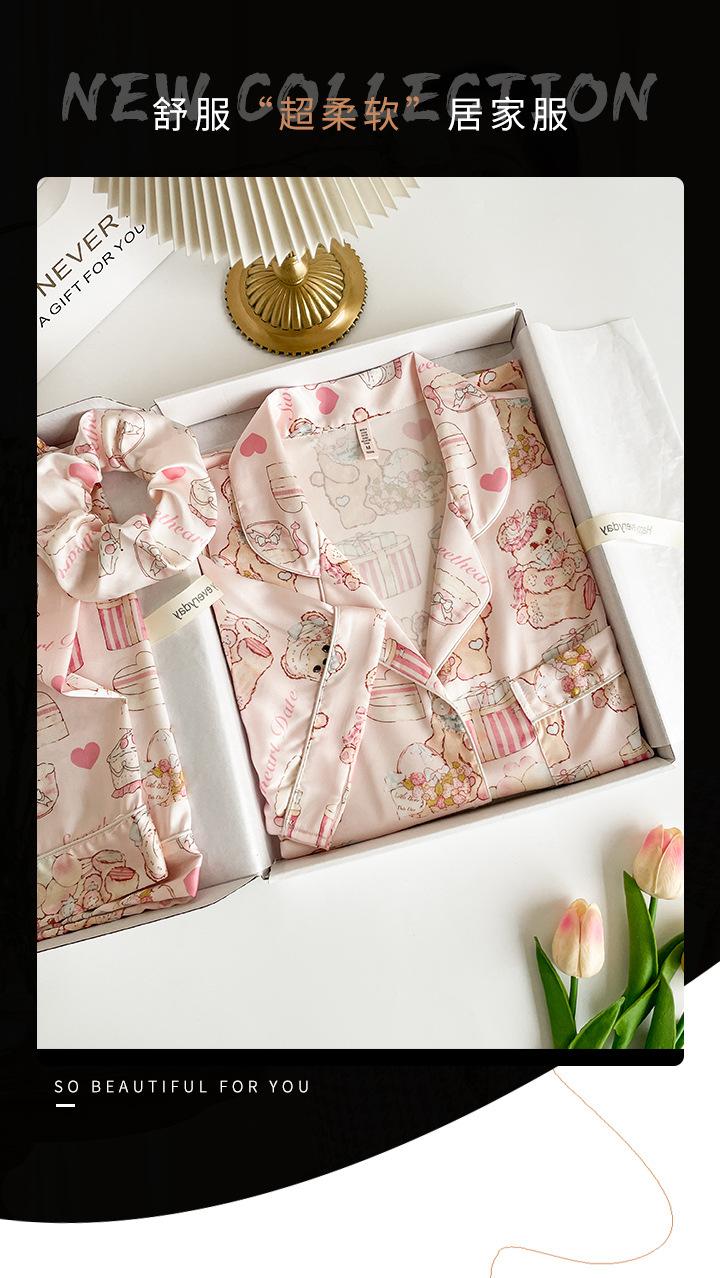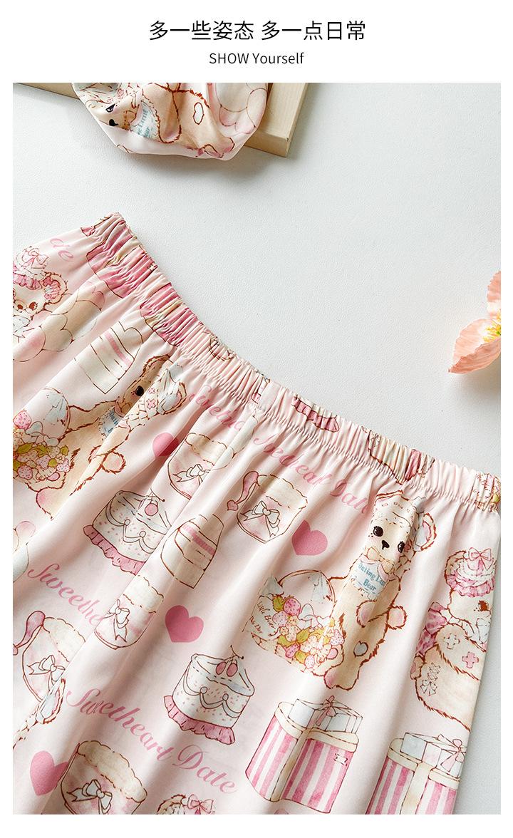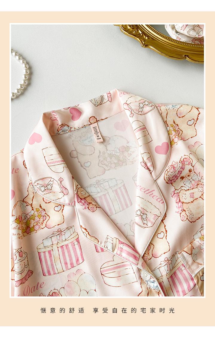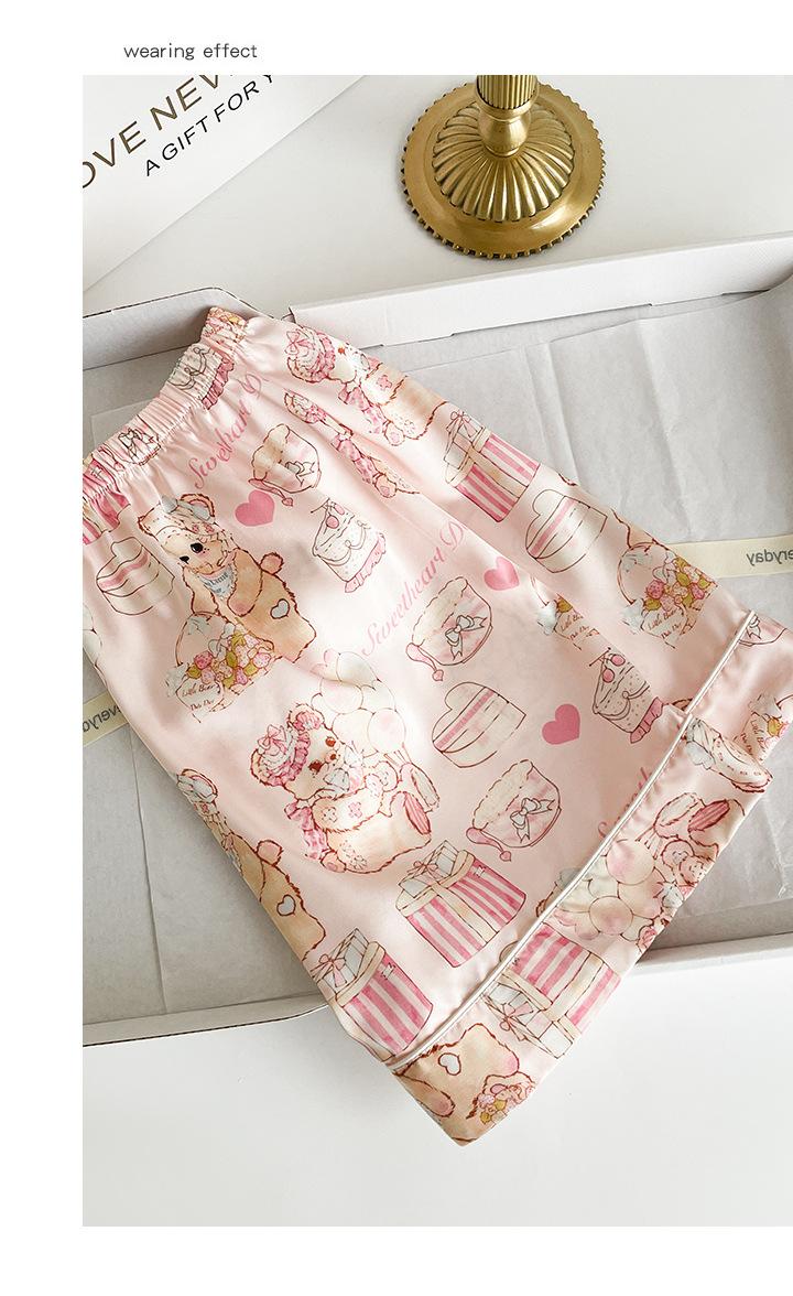 Pijamas nuevos de verano 2024 para mujer, de seda helada, color rosa, con dibujos animados, de manga corta, para el hogar.